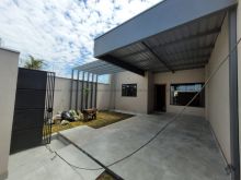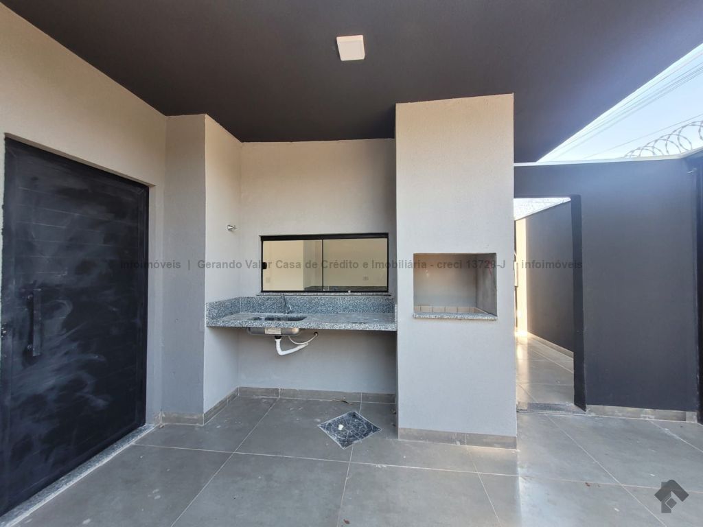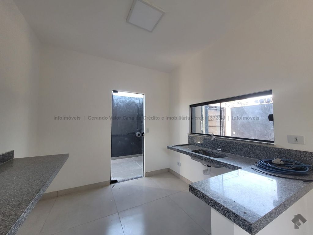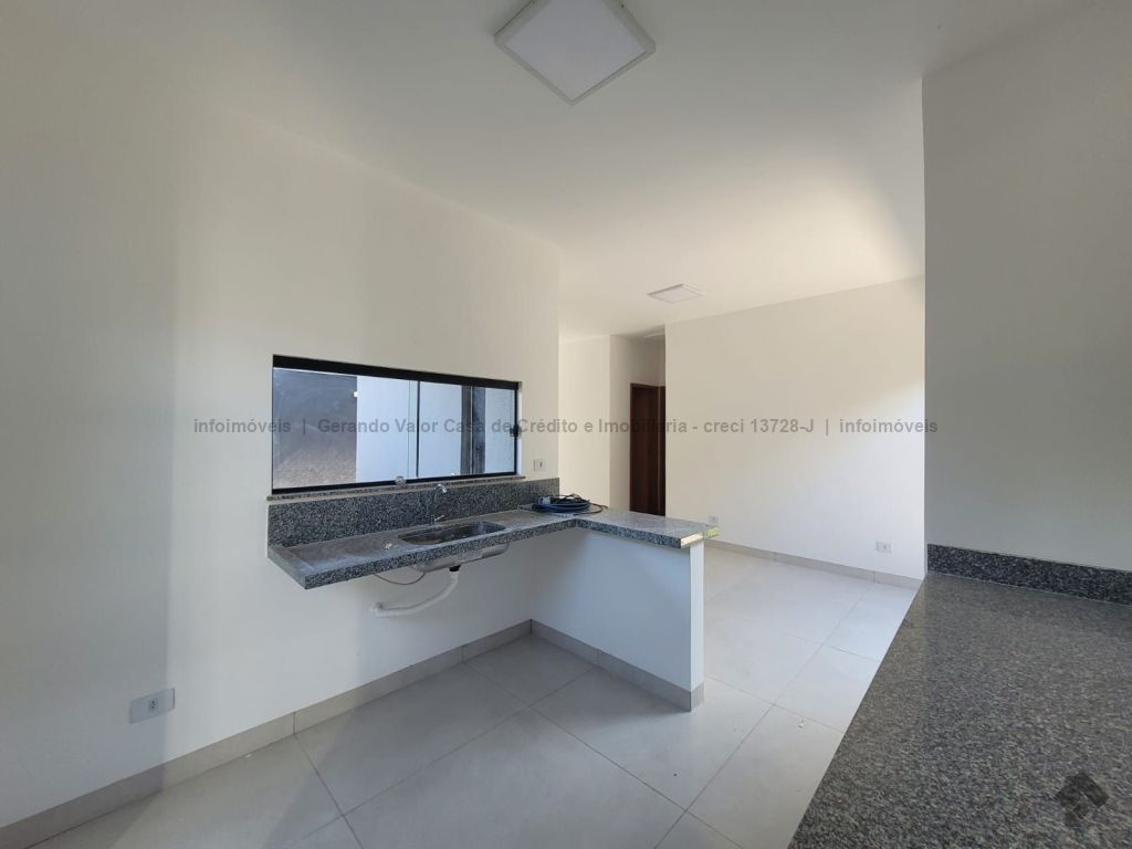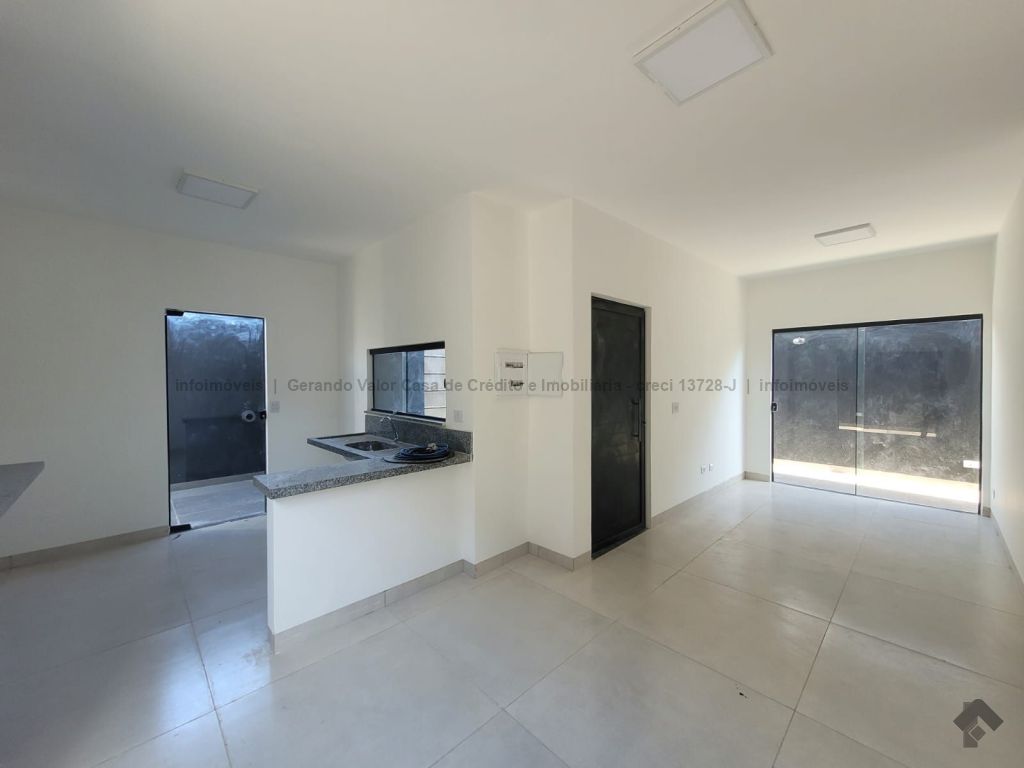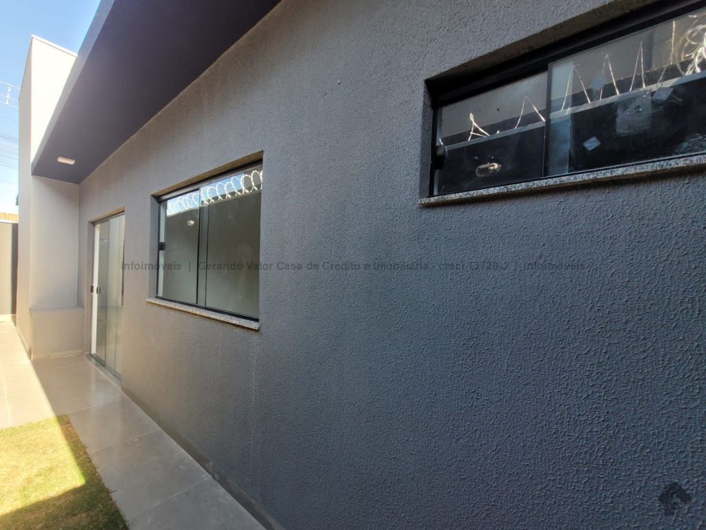 Sala, cozinha, 1 quarto, 1 suíte, 1 banheiro social, lavanderia coberta, portão de elevação e portão social, garagem para 2 carros, corredor lateral. Casa bem distribuída com cômodos amplos.