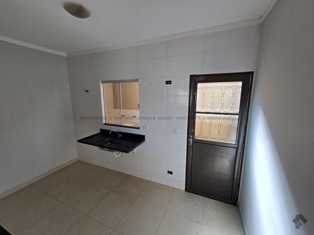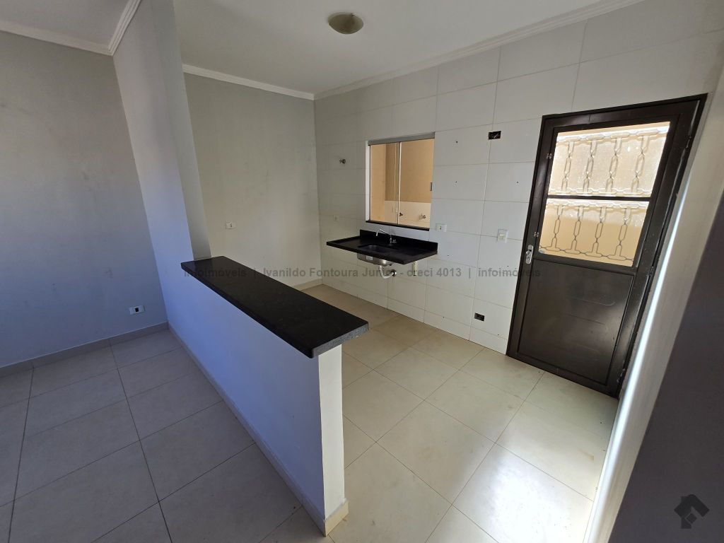 Casa térrea no asfalto, contendo 2 quartos, WC social, cozinha, sala de estar e jantar, área de serviço coberta, garagem para até 2 carros, portão de elevação.