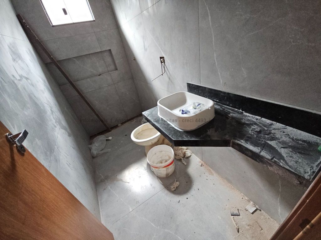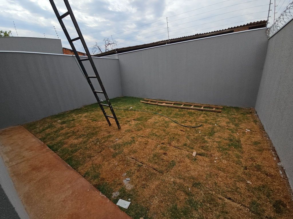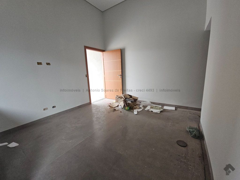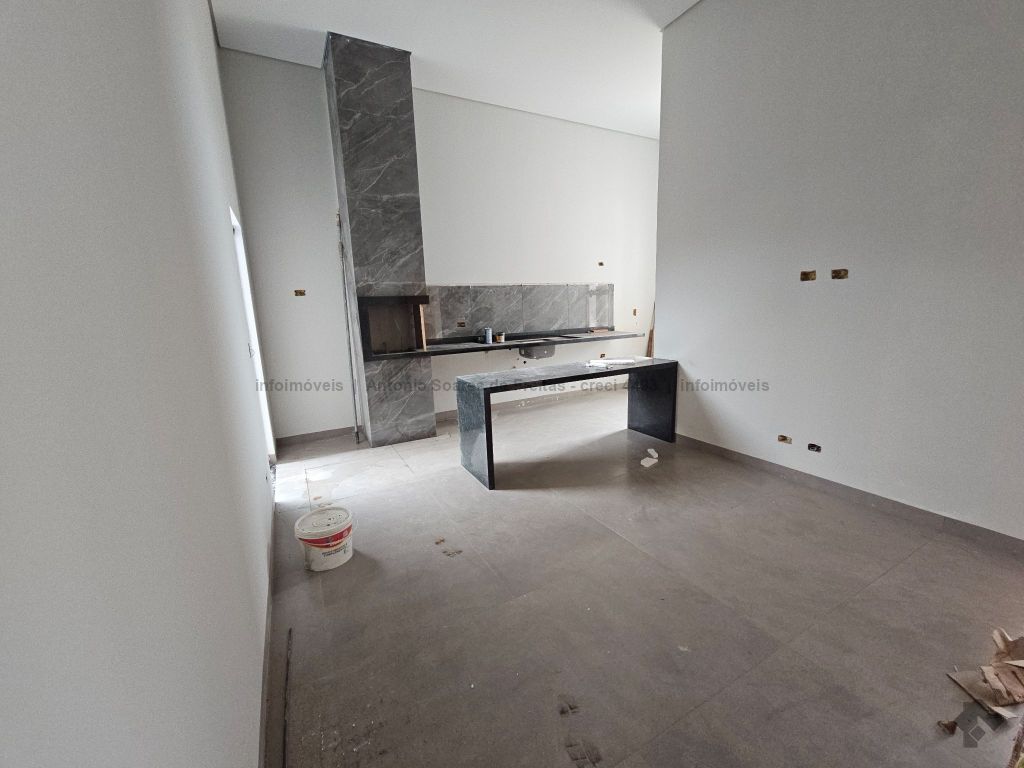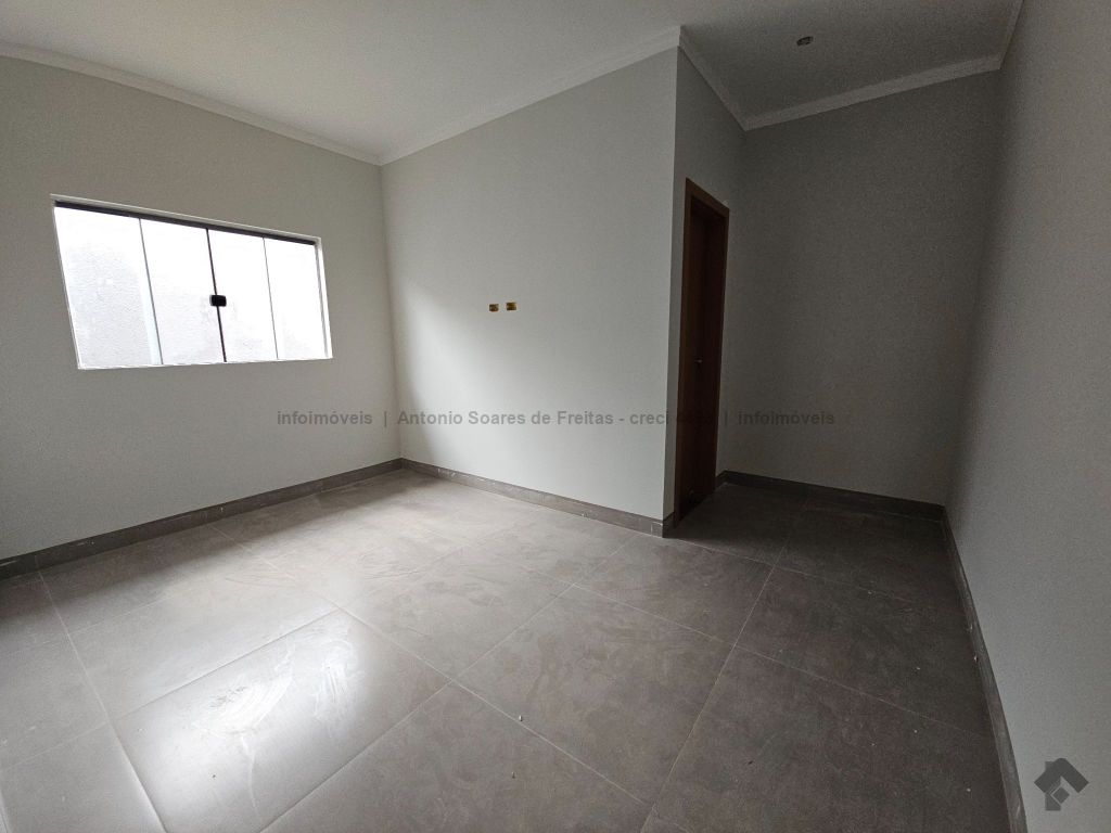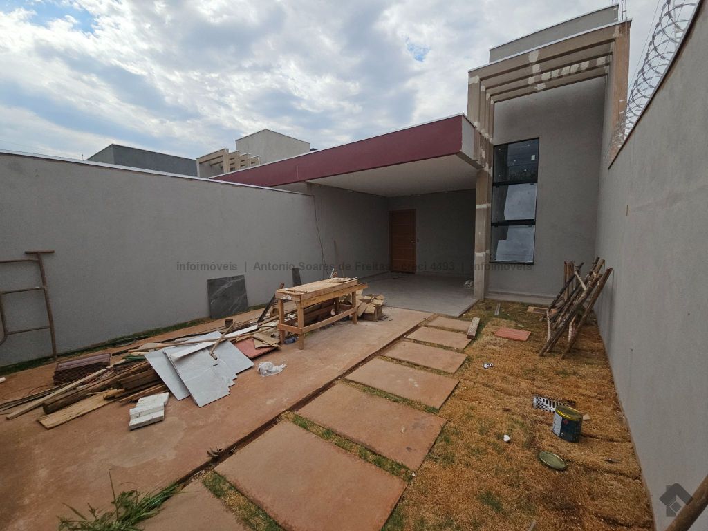 3 quartos, sendo 1 suíte, sala, cozinha acoplada com churrasqueira, área de serviço coberta, banheiro social, garagem coberta, terreno aos fundos.