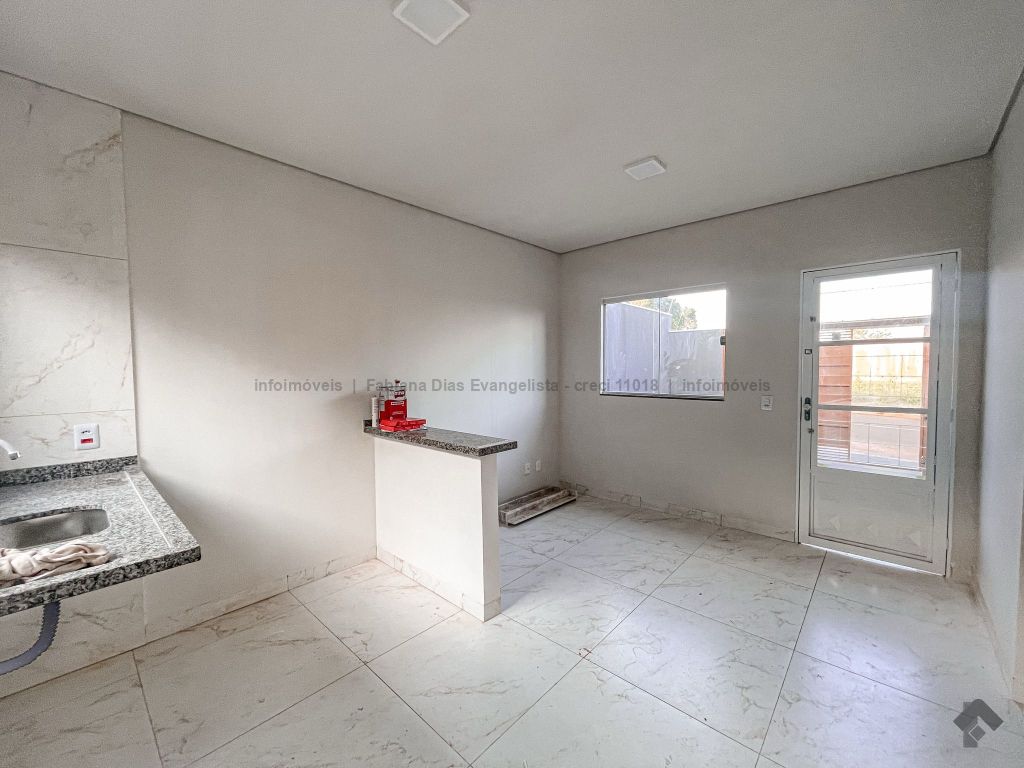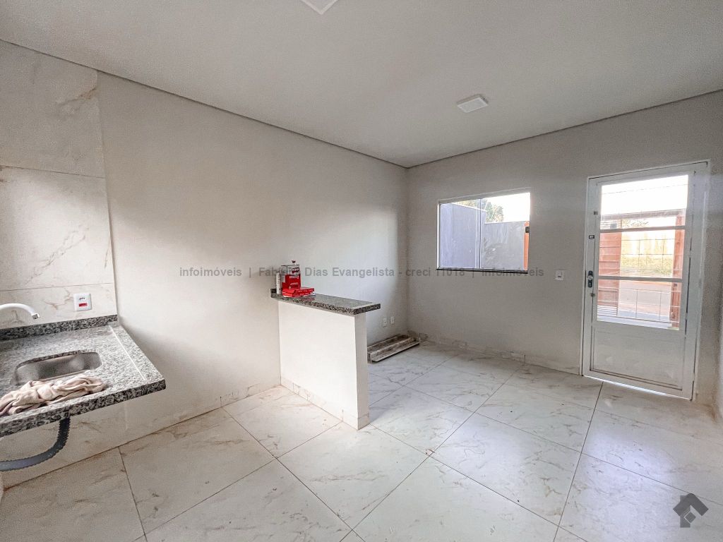 Casa térrea com área construída de 45 m² em terreno de 90 m². Conta com dois quartos, banheiro social, cozinha integrada à sala e vaga para dois carros. Ambientes bem ventilados e iluminados, oferecendo conforto e praticidade.