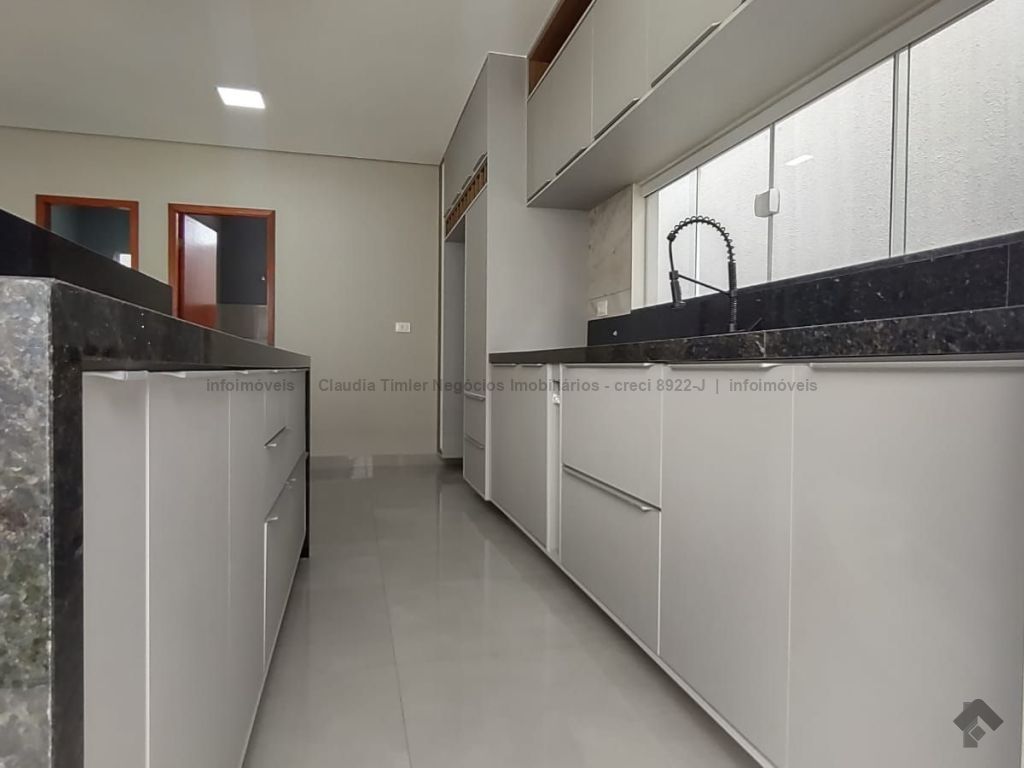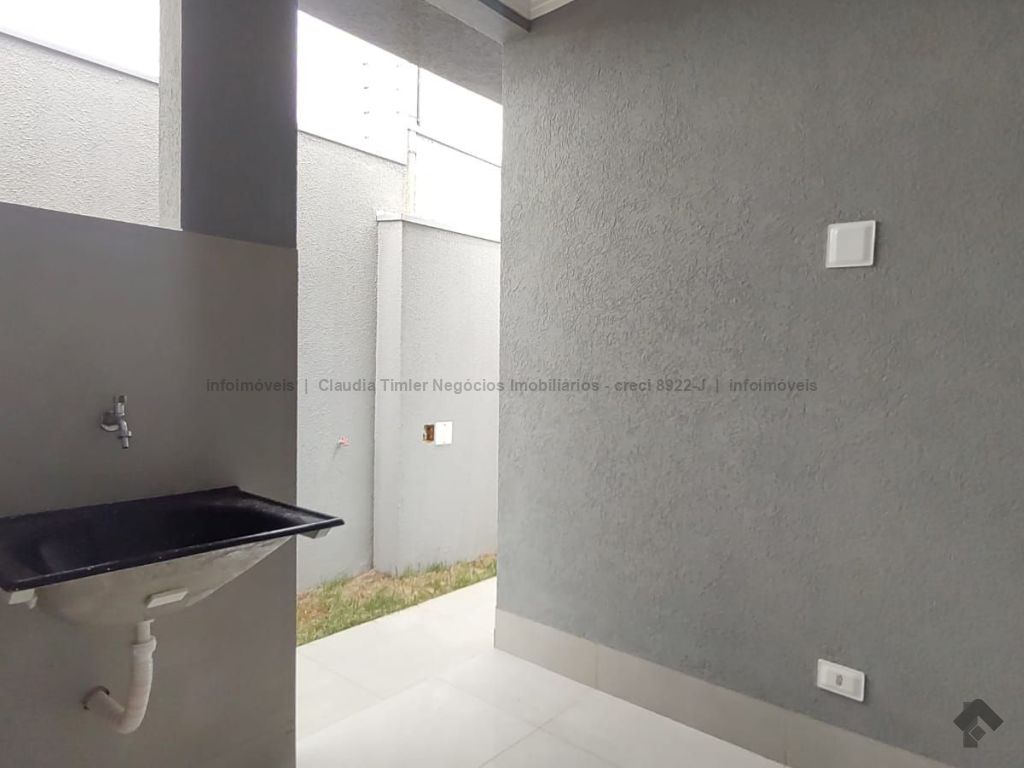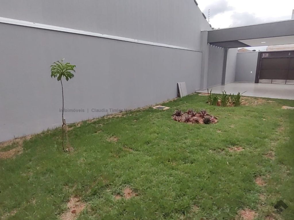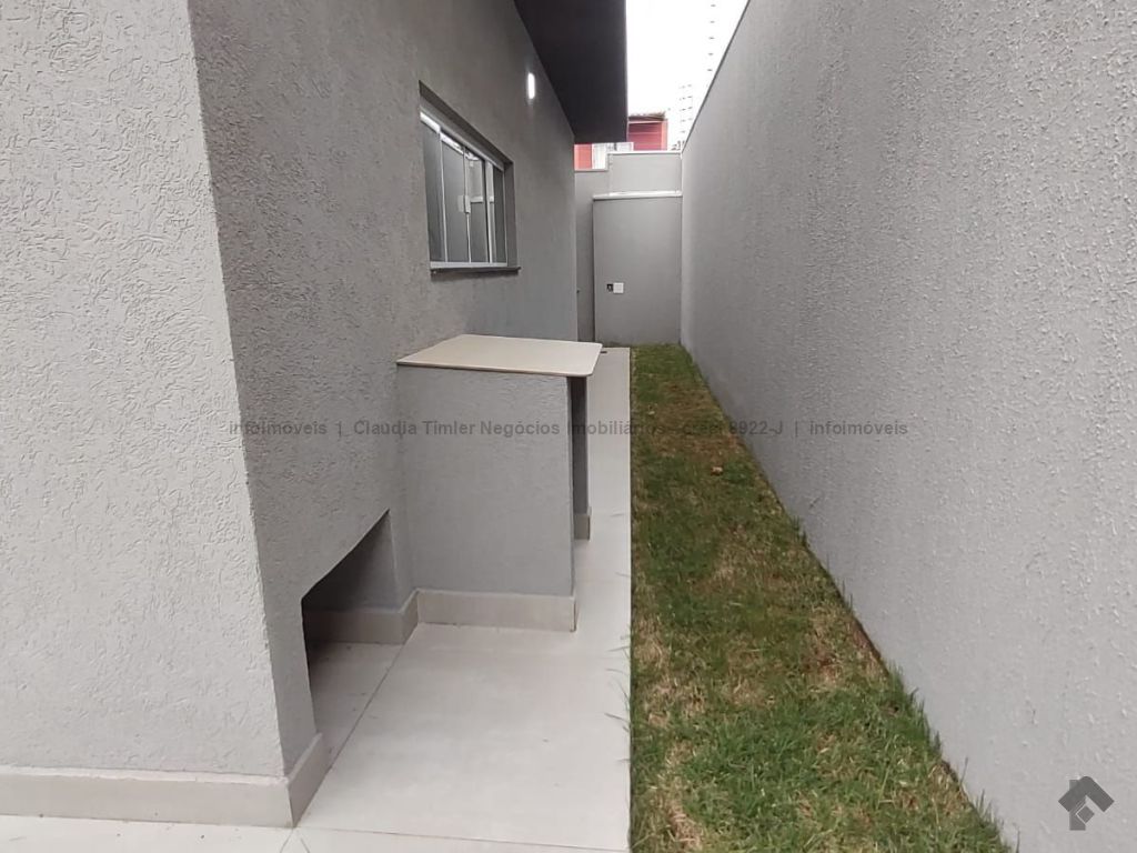 Casa nova de esquina terreno: 262m². Construção: 131m². Garagem para dois carros, 1 suíte, 2 quartos, 1 banheiro social, sala com rebaixamento em gesso, cozinha com armários, área gourmet integrada, lavabo, lavanderia, depósito, preparação para ar condicionado, + 70m² de terreno disponível, cerca elétrica.