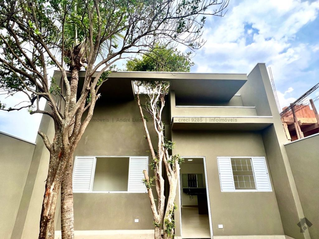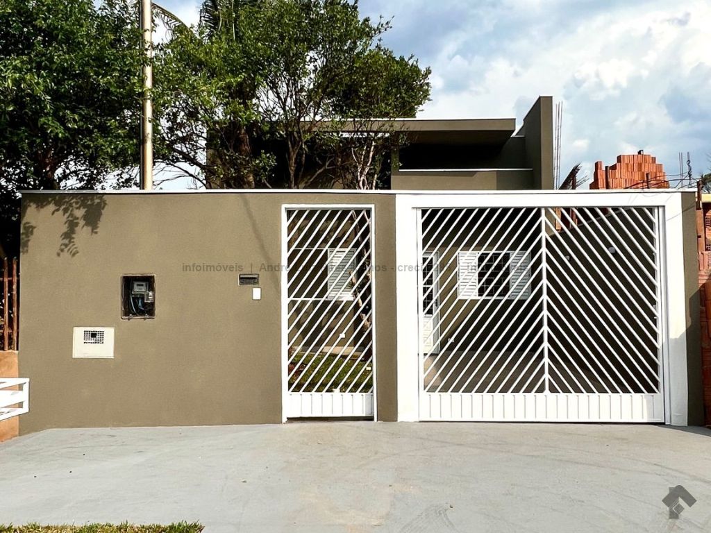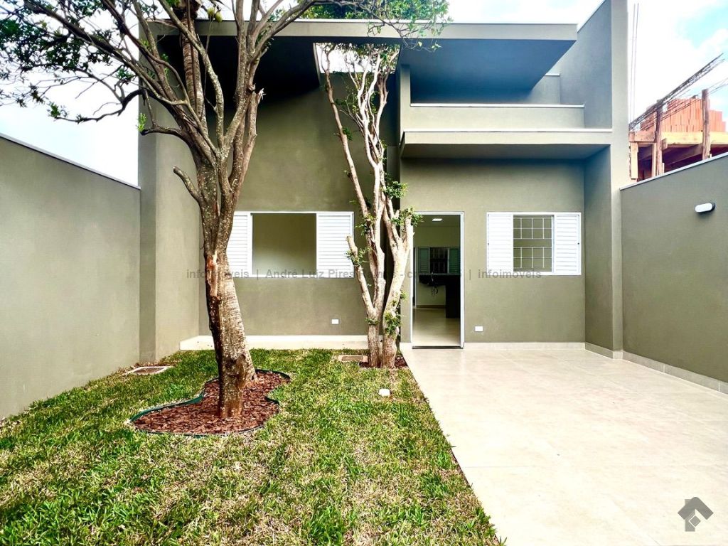Casa térrea com dois quartos, sala para dois ambientes, cozinha, WC social, área de serviço, churrasqueira, 2 vagas de garagem, com um belíssimo acabamento tudo em porcelanato.