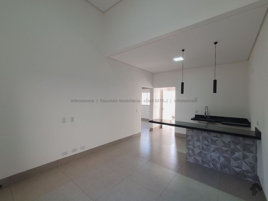 01 suíte mais 02 quartos, banheiro social, jardim de inverno, sala integrada com a cozinha, área de serviço fechada, churrasqueira, quintal e 01 vaga de garagem não coberta.