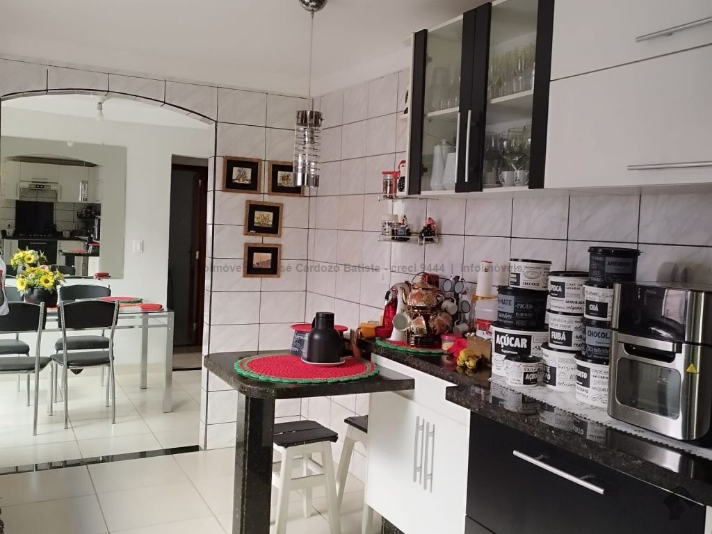 Casa térrea com três quartos, sendo uma suíte, sala para 2 ambientes, cozinha, edícula aos fundos, sendo o espaço gourmet com mais um quarto aos fundos.