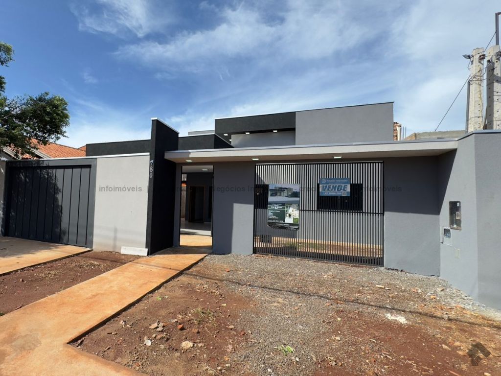 Área total de 360,00 m². Três dormitórios, sendo uma suíte com closet, cozinha integrada, sala de TV, sala de estar, banheiro social, lavanderia descoberta, garagem para dois carros, espaço para ampliação.