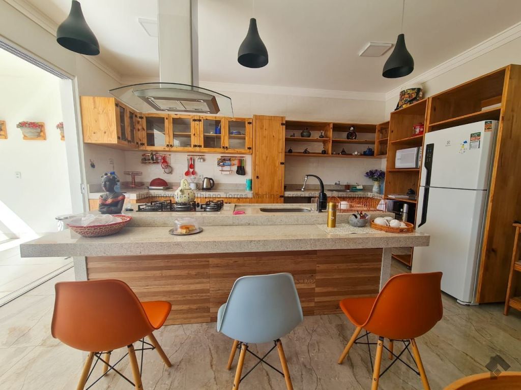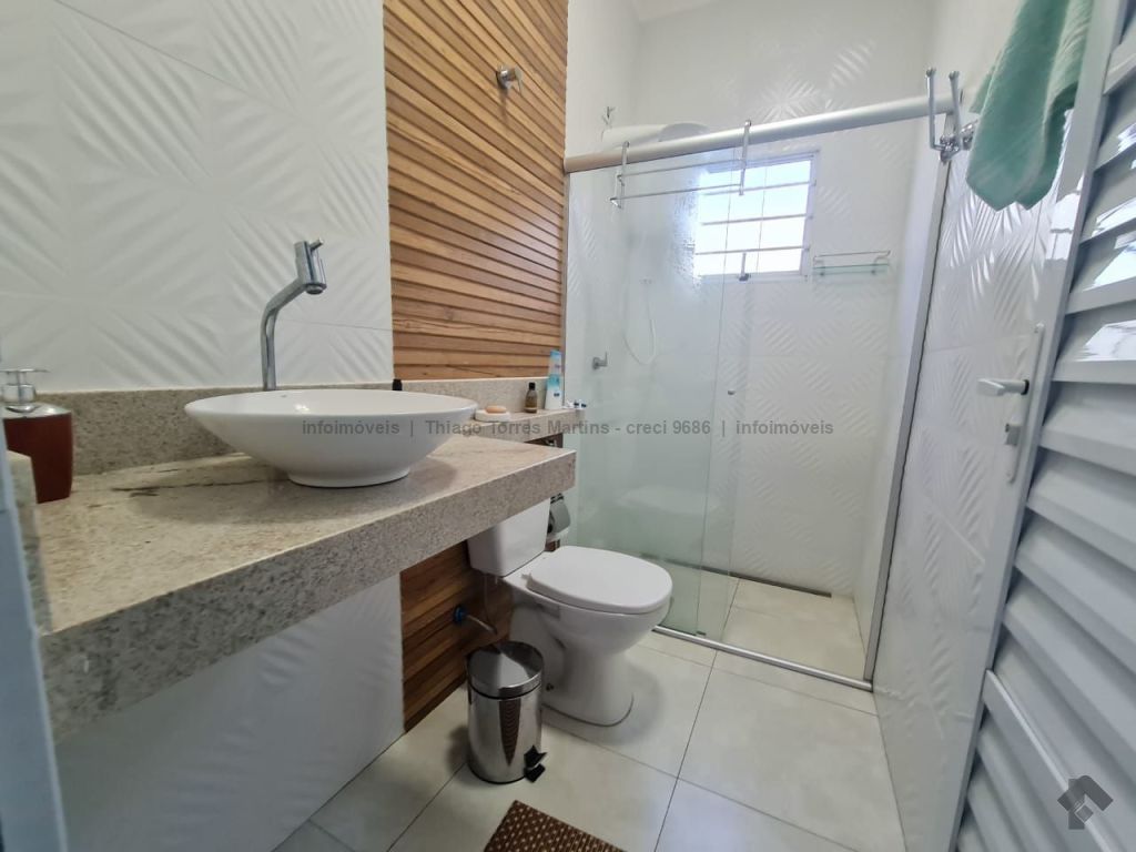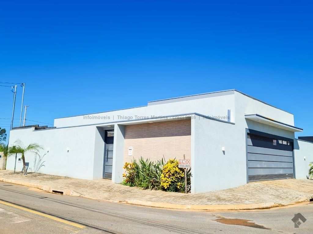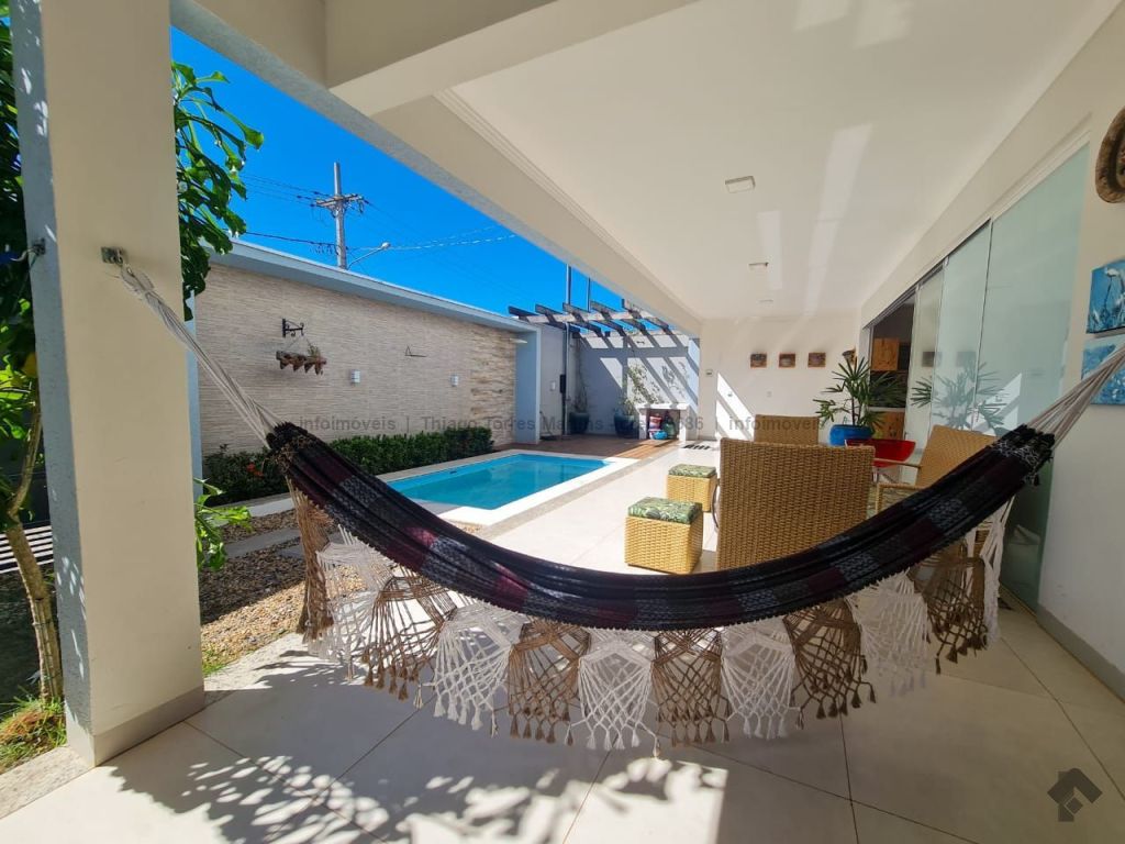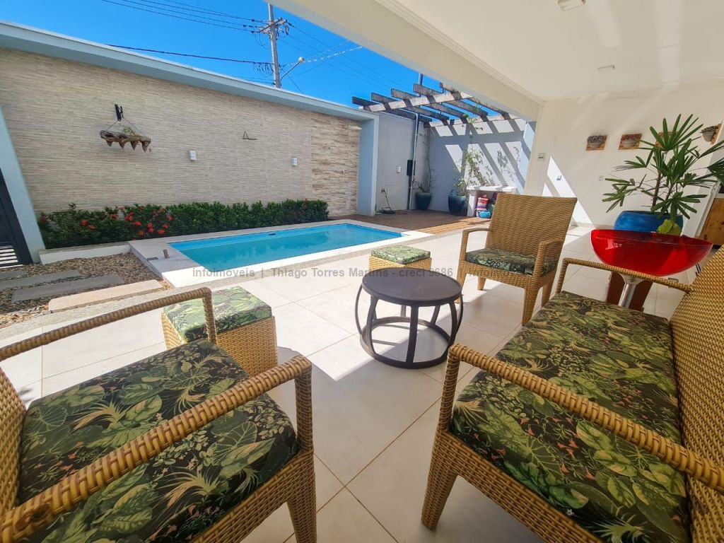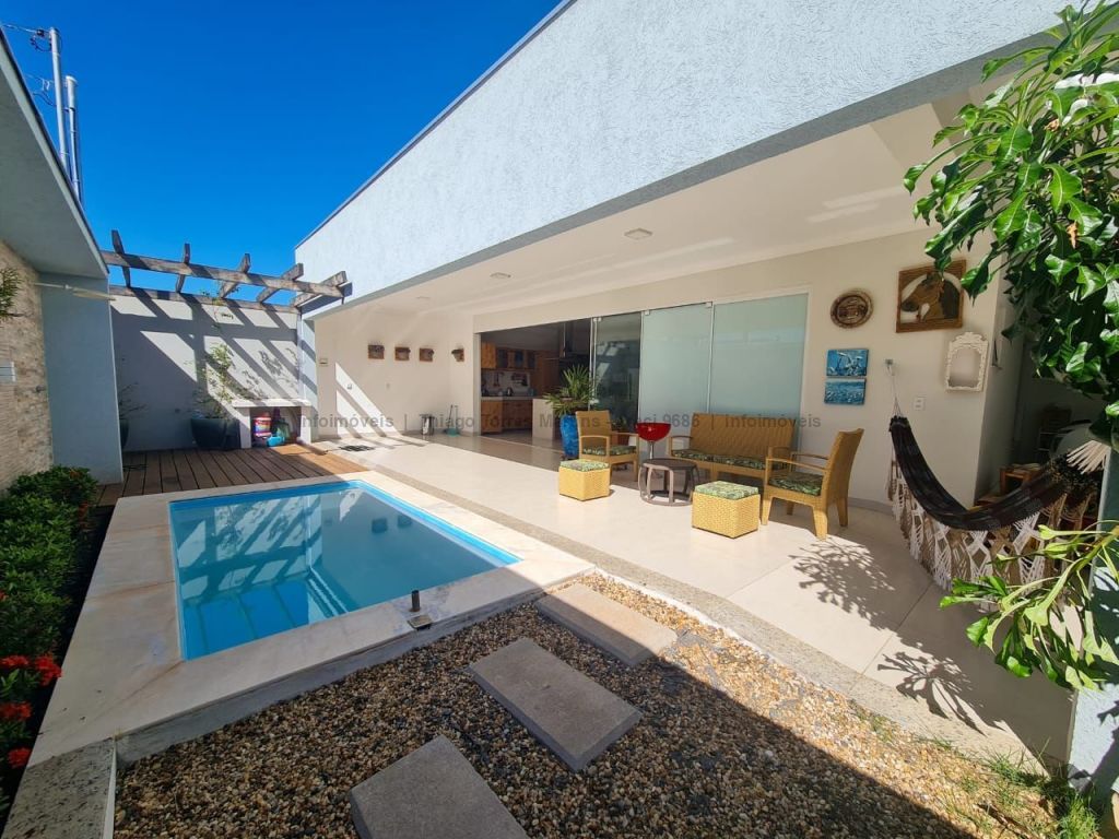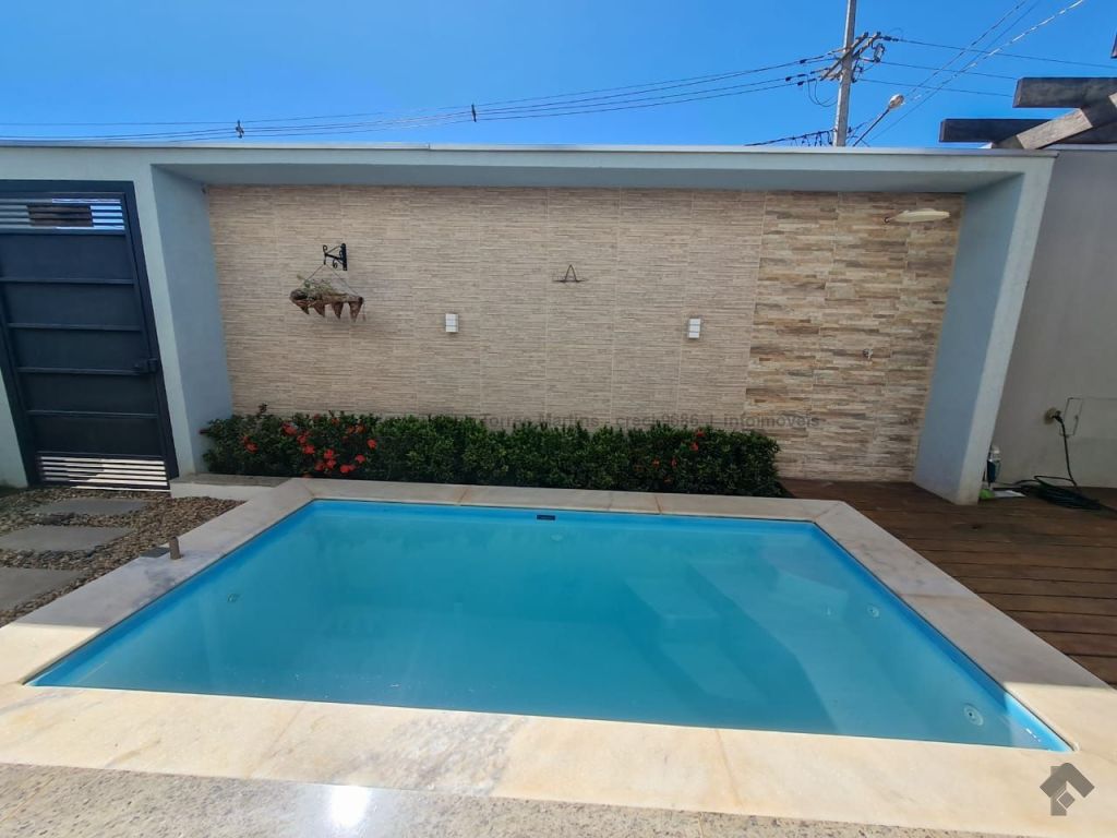 Linda casa térrea moderna e funcional, com uma suíte e dois quartos, sala integrada com cozinha e ilha, conceito aberto, um banheiro social, duas vagas de garagem, piscina aquecida e varanda.