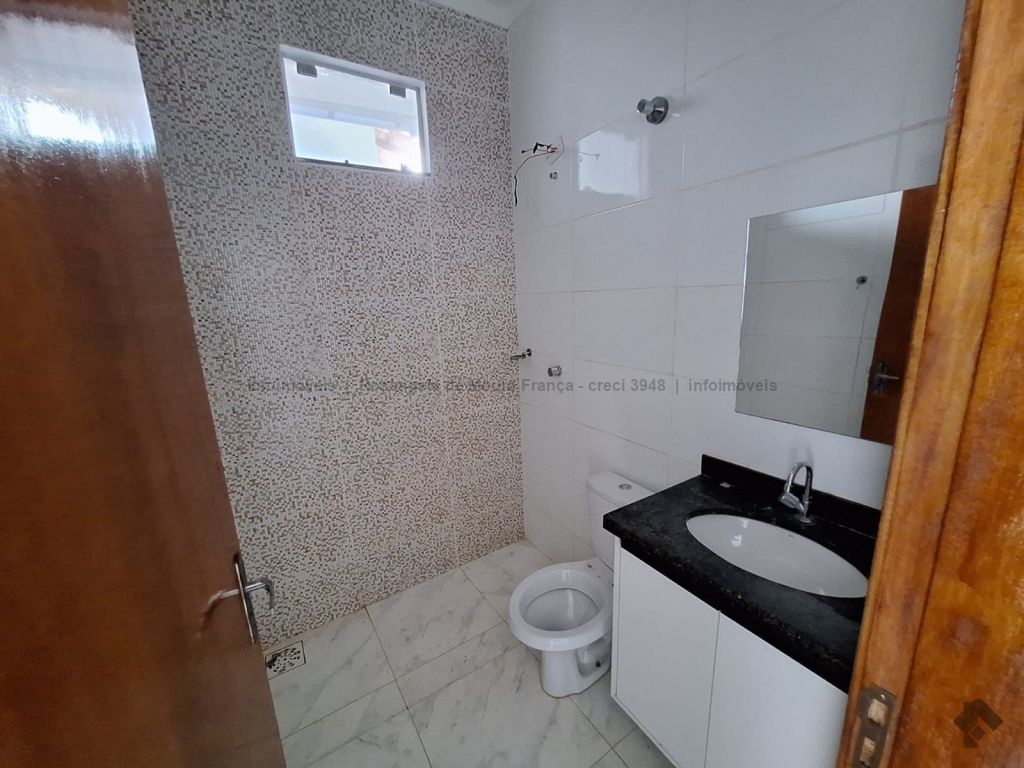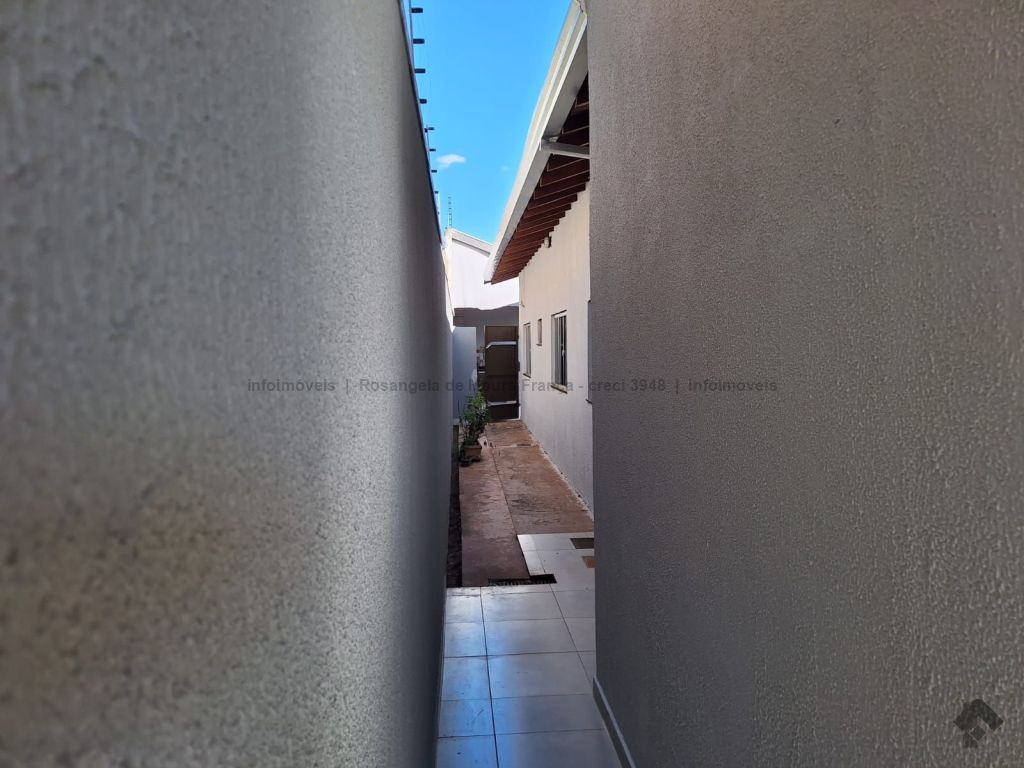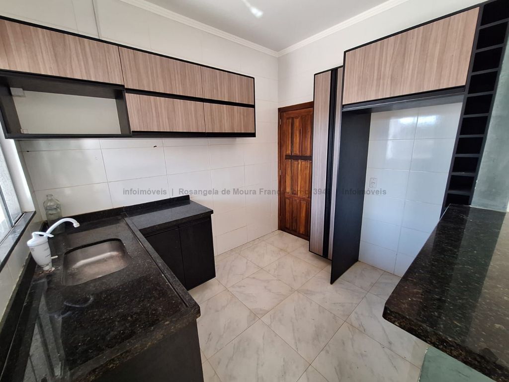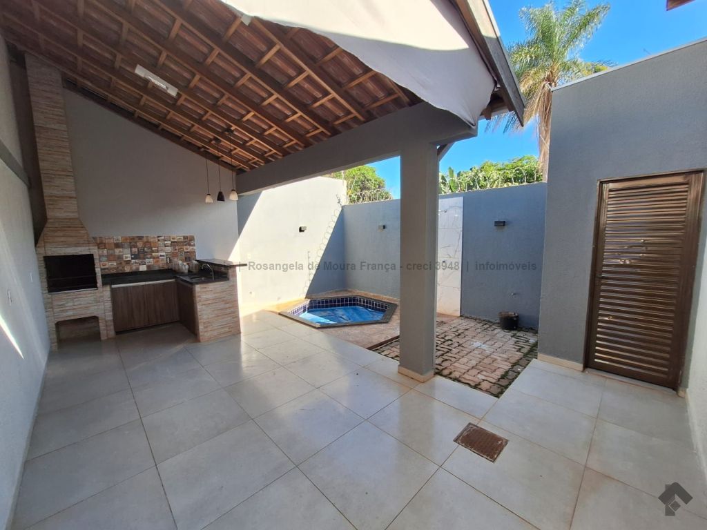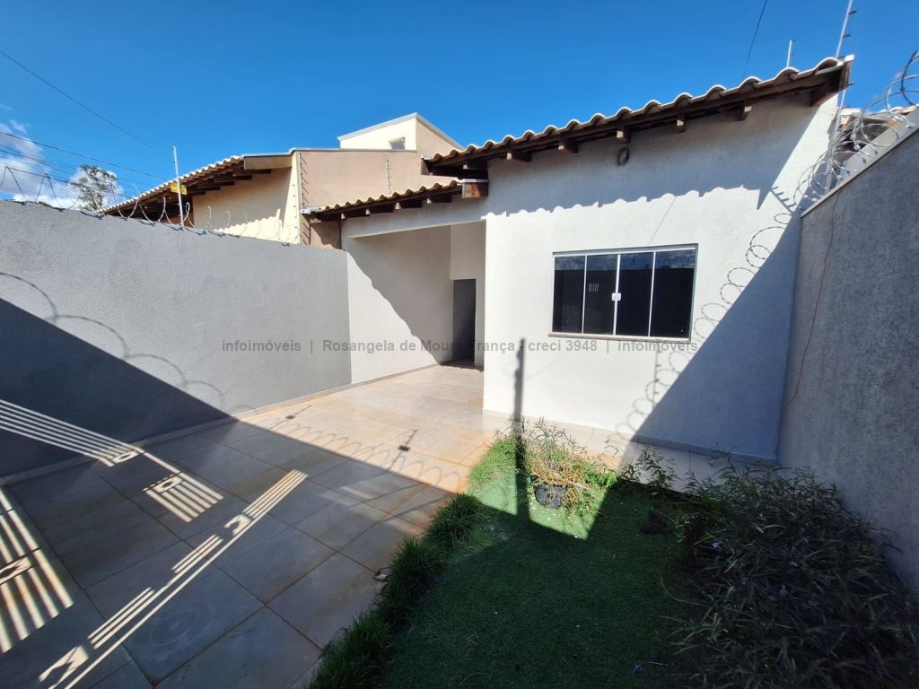 Casa térrea com frente gramada, 2 garagens, suíte, 2 quartos, sala, cozinha planejada, área gourmet com armários, 3 wcs com armários, piscina e área de serviço.