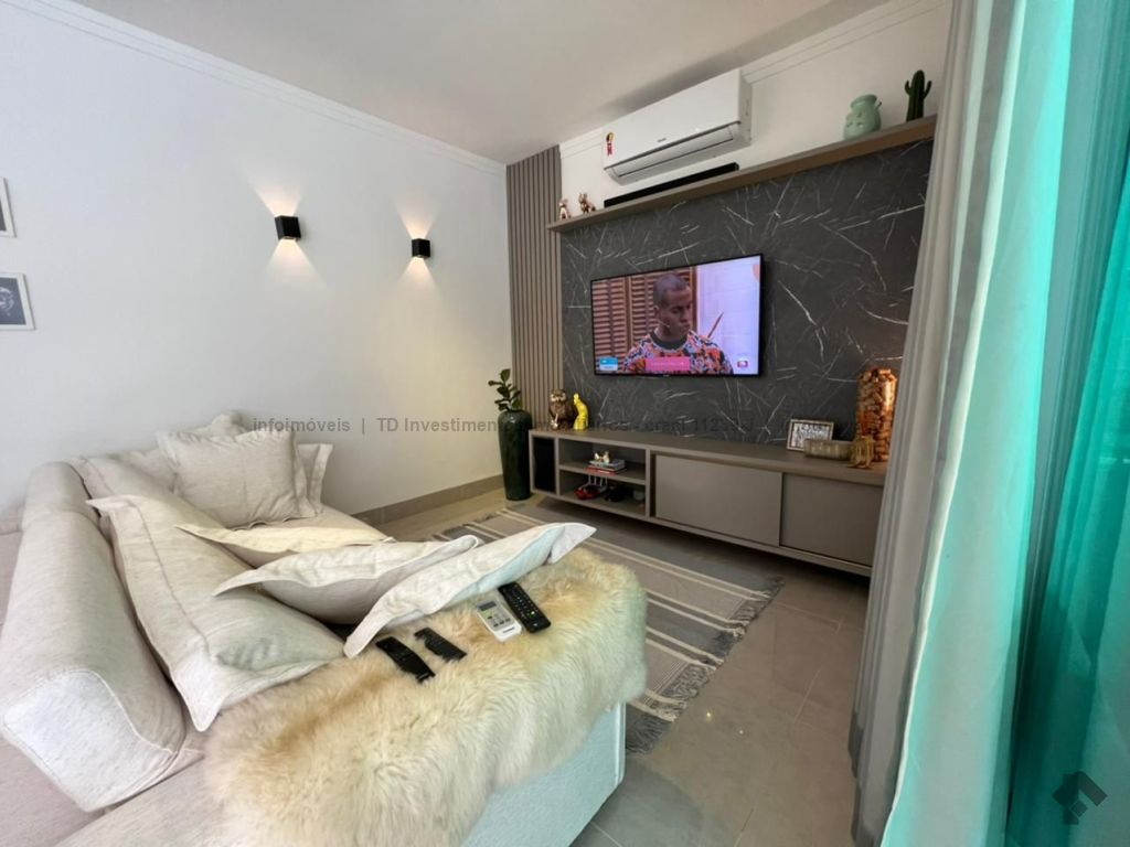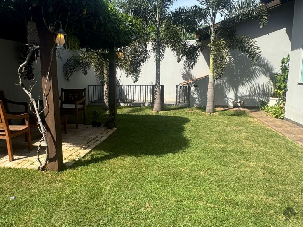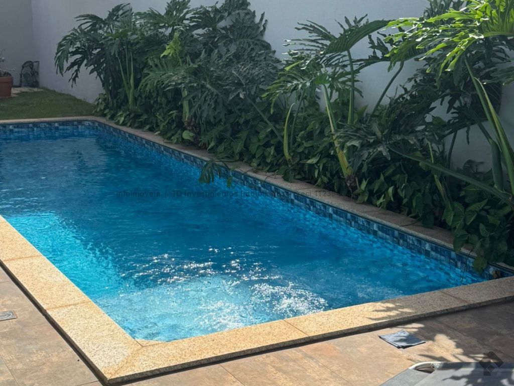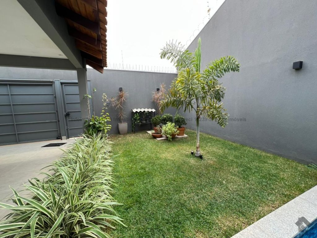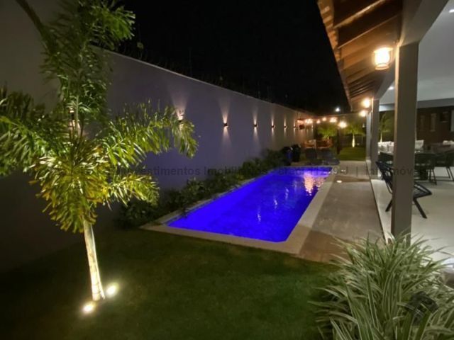 Casa super aconchegante, toda térrea, cercada pela varanda com jardim, fechada com portas blindex, piscina aquecida, possui uma suíte e dois quartos, um banheiro social, um lavabo, uma lavanderia, toda integrada às salas de TV, sala de jantar, uma cozinha americana e canil, garagem para dois carros cabendo até três carros.