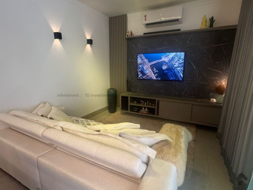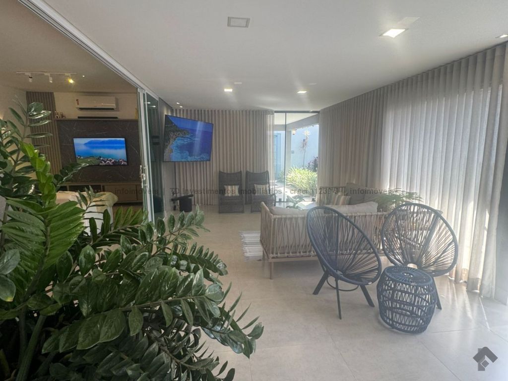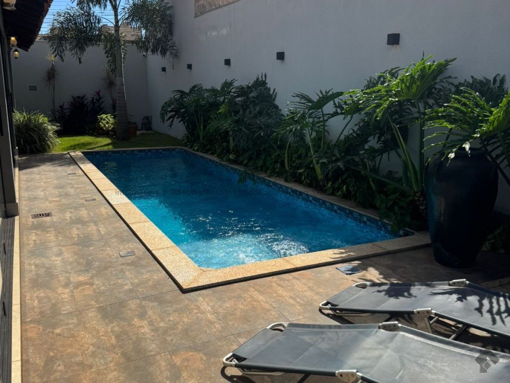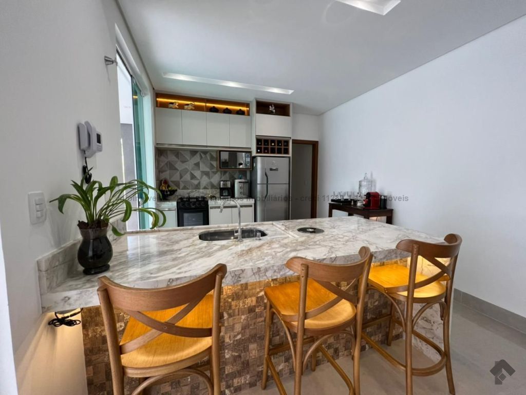 Casa super aconchegante, toda térrea, cercada pela varanda com jardim, fechada com portas blindex, piscina aquecida, possui uma suíte e dois quartos, um banheiro social, um lavabo, uma lavanderia, toda integrada às salas de TV, sala de jantar, uma cozinha americana e canil, garagem para dois carros cabendo até três carros.