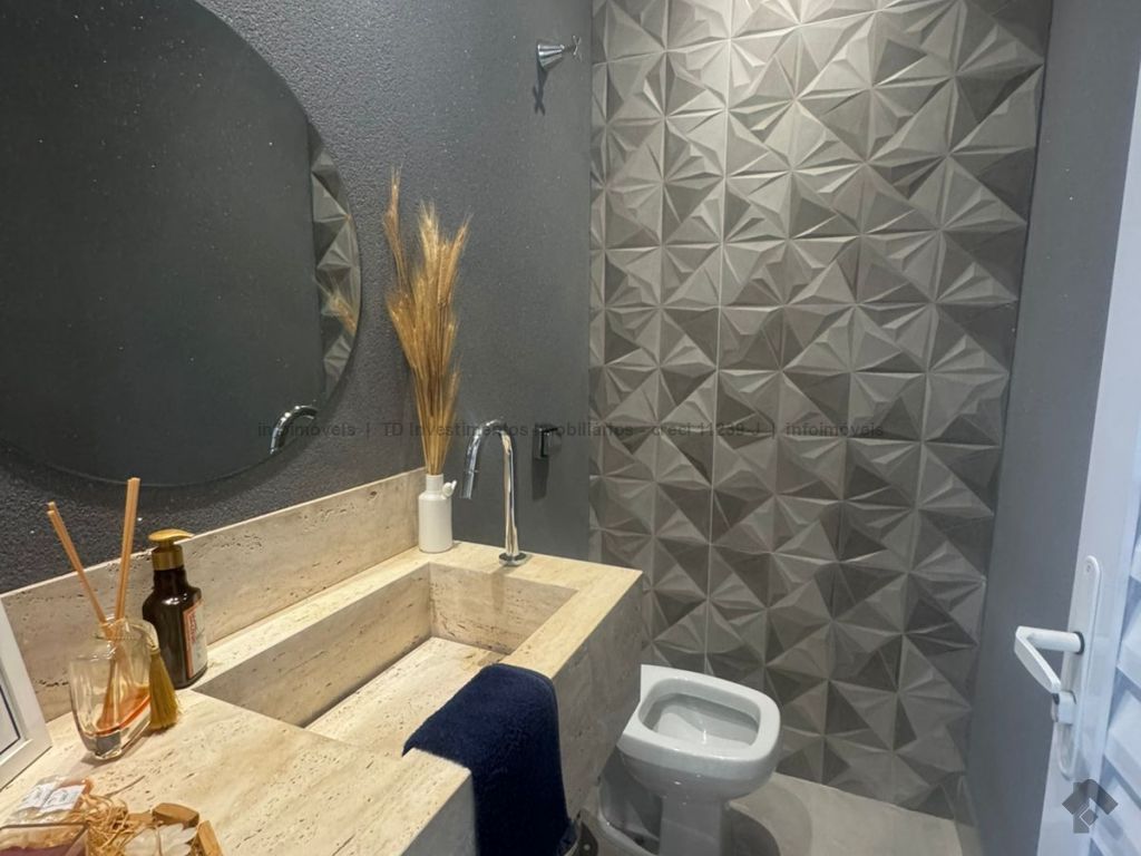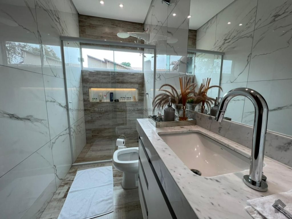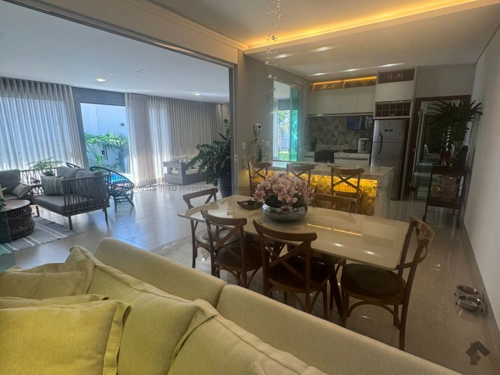 Casa para receber amigos e familiares, super integrada e espaçosa, com ilha na cozinha em pedra Michelangelo Nuvolato, banheiros com nichos iluminados, piscina aquecida e jardim maravilhoso.