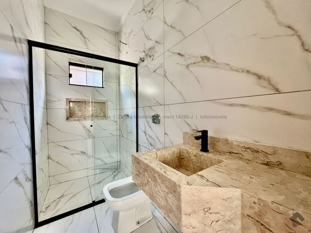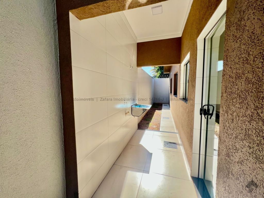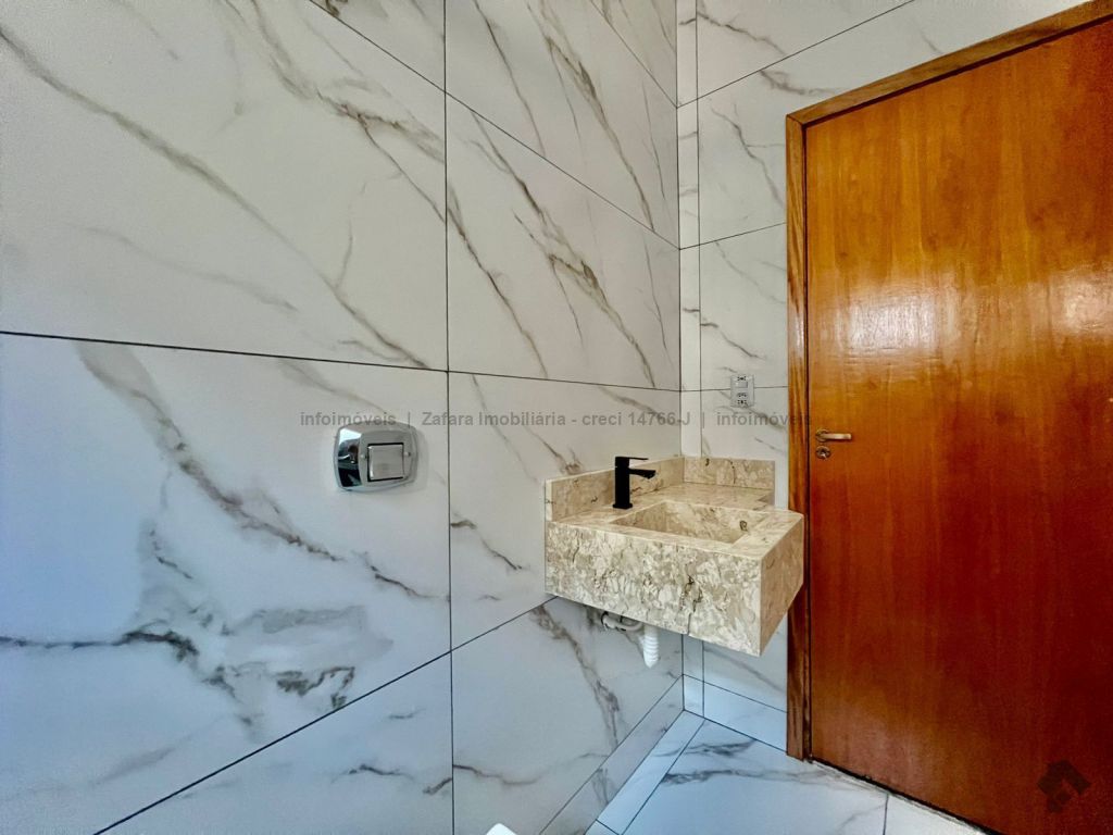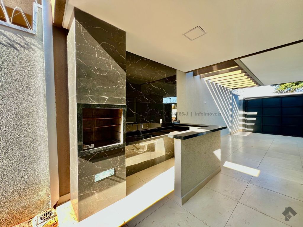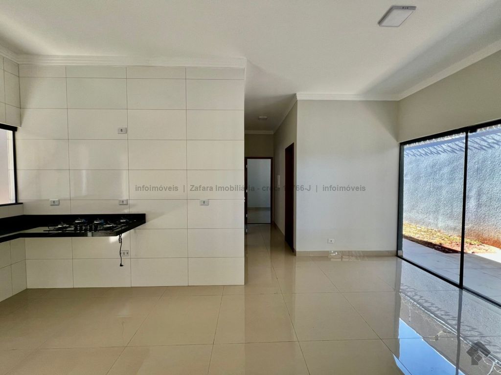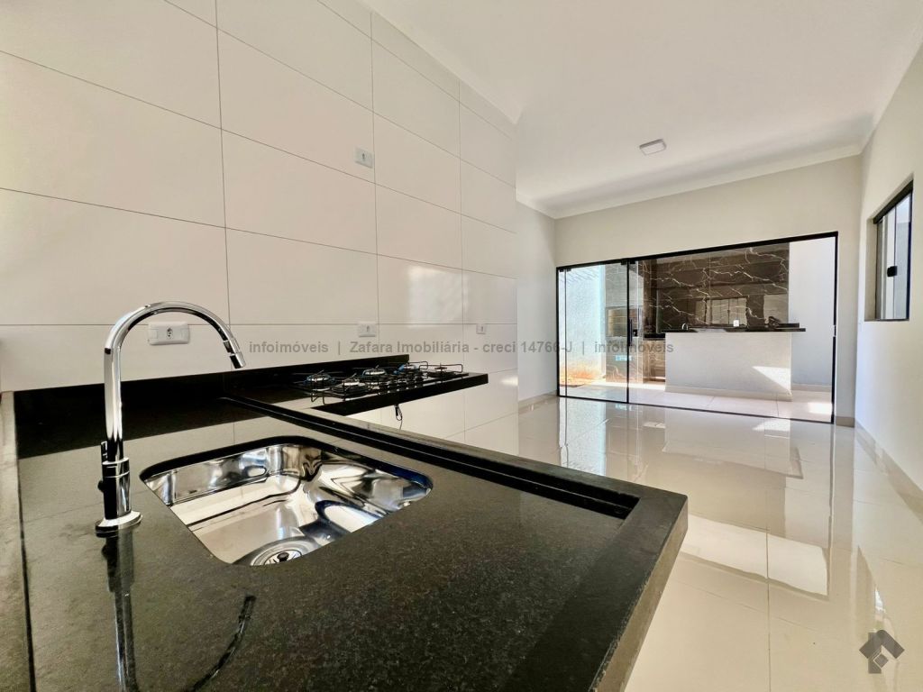 3 quartos, sendo 1 suíte, sala ampla com pé-direito duplo, cozinha independente com cooktop, área gourmet com churrasqueira revestida, terreno 185 m², 107 m² construídos, garagem para 2 carros.
