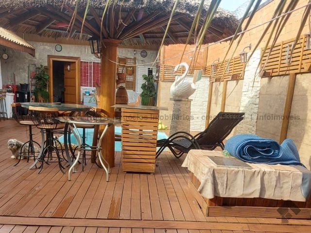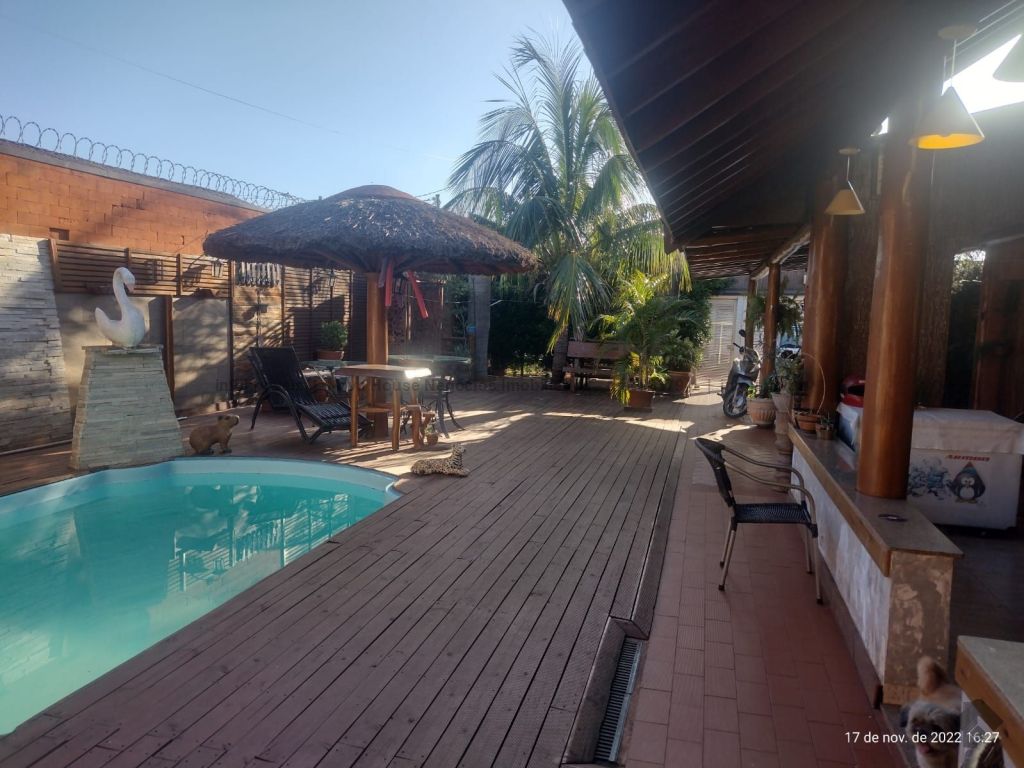 Imóvel semi mobiliada com lindo espaço gourmet, churrasqueira, deck de madeira, cozinha toda equipada com cooktop, exaustor de parede, geladeira, fogão industrial, caixa térmica, armário embutido, móveis externos da área gourmet, namoradeira, mesas, cadeiras e bancos de madeira maciça, dormitório com armário, sala de estar com rack de TV e armário embutido, espaço aconchegante, piscina em fibra com agua aquecida, iluminação com LED, hidromassagem e cascata, imóvel tem poço artesiano, piso cerâmico rústico na garagem e área gourmet, banheiros masculino e feminino na área externa, cercada com concertina.