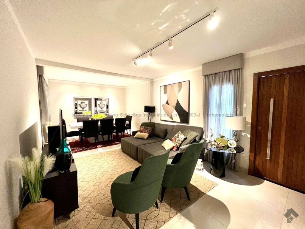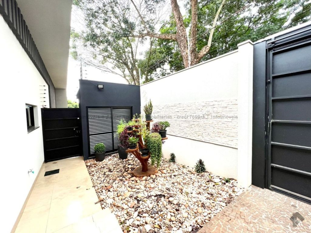 Excelente casa alto padrão com sala de TV, sala de jantar, cozinha com móveis planejados, 2 quartos, 1 suíte, banheiro social, área de serviço, quintal amplo, portão de elevação e garagem coberta para 2 carros.