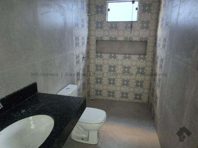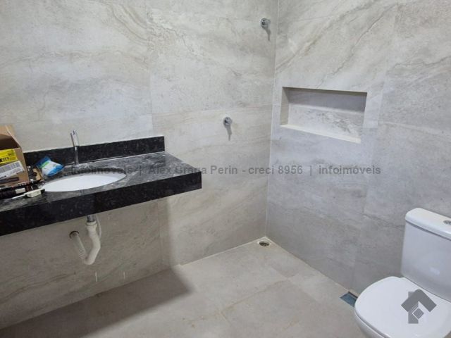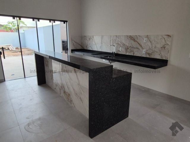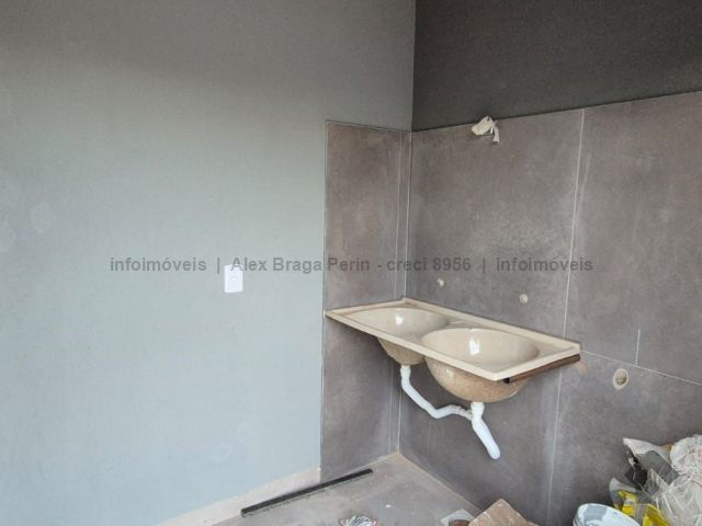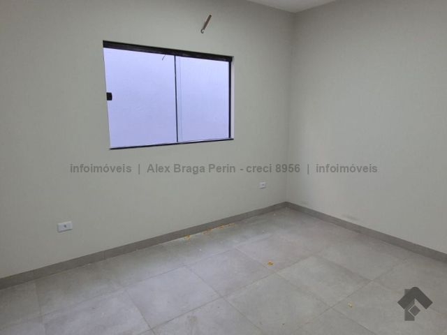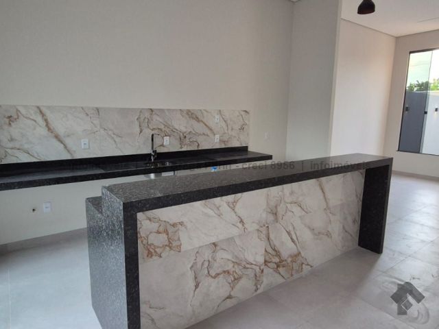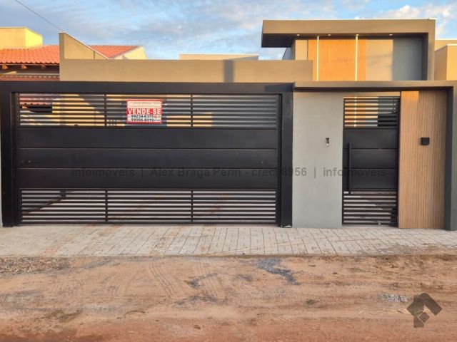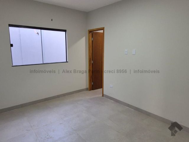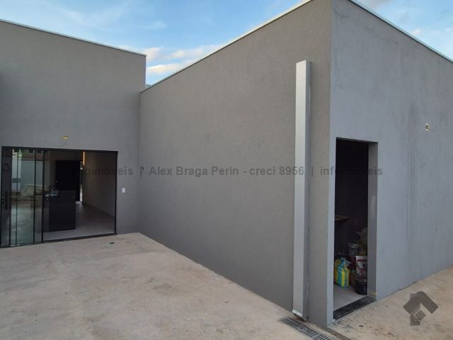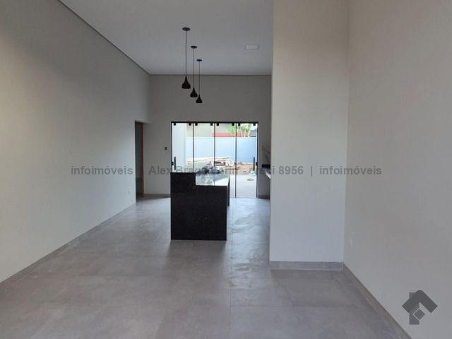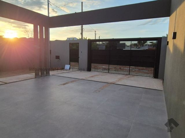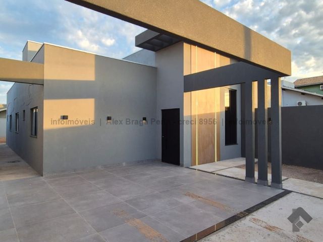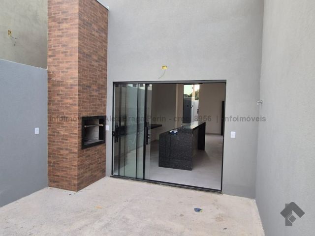 Casa nova em laje em Bonito MS. Terreno medindo 10,00 x 30,00 com área de 300,00 m². Área construída de 93,00 m², contendo 01 suíte, 02 quartos, 01 sala, 01 cozinha, 01 banheiro social, área de serviço e churrasqueira. Acabamentos com esquadrilhas em alumínio, em parcelamento, sala com pé direito alto, bancada em mármore e luminárias.
