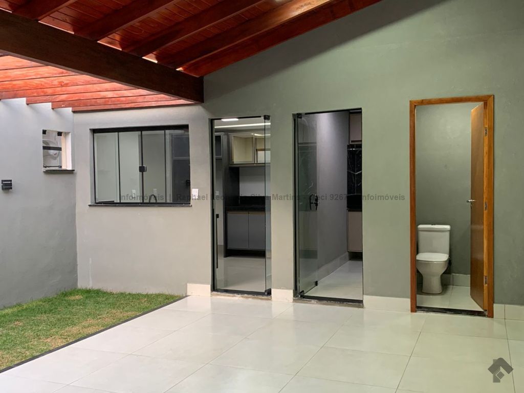 Planta da casa moderna e integrada projetada com armários. Possui portão de elevação com até 3 garagens cobertas, hall de entrada, lavabo, sala de TV/estar, sala de jantar, cozinha, área gourmet, banheiro social externo, lavanderia, jardim com pergolado de madeira, 2 quartos, banheiro social interno e suíte.