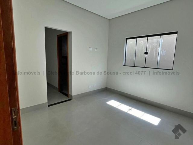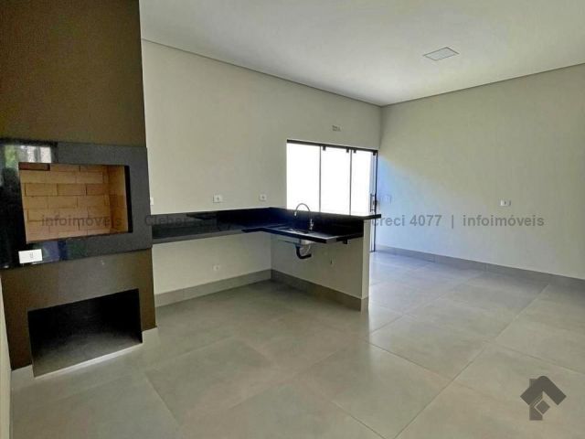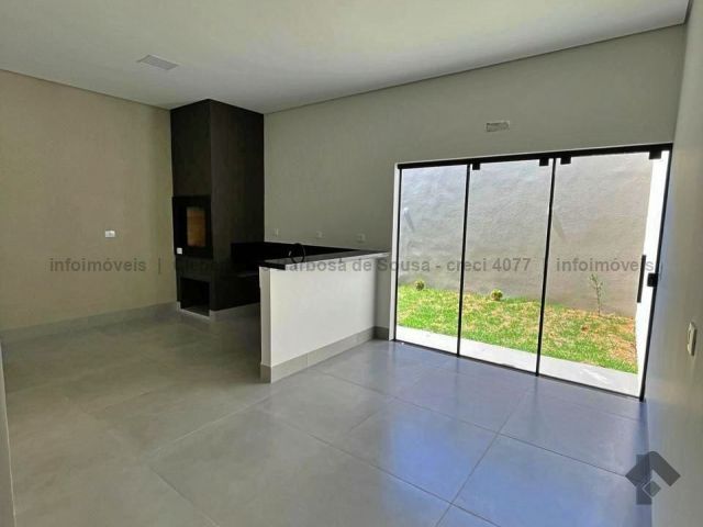 Área construída: 100 m², área total: 180 m². 3 dormitórios, sendo uma suíte. Sala ampla. Banheiro social. Cozinha gourmet com churrasqueira. Área de serviço coberta. Corredor lateral. Espaço aos fundos. Garagem para 2 carros. Rebaixo em gesso. Iluminação toda em LED. Bancadas e pias em mármore. Pré-instalação de ar condicionado. Granelli na pintura externa. Jardinagem.