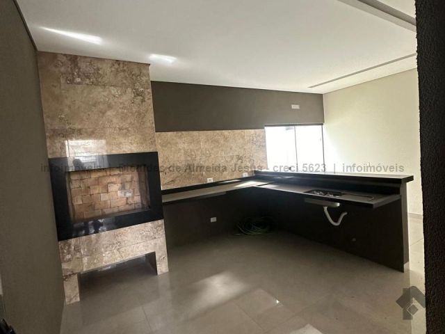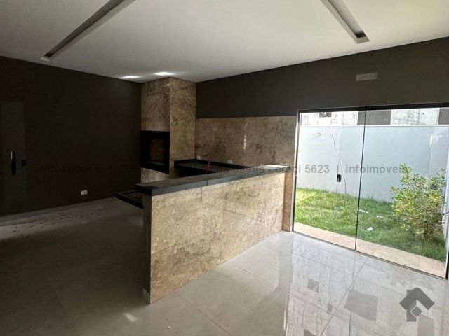 Toda de laje com detalhe em gesso, sala e cozinha gourmet com rebaixo de gesso, pia da cozinha, balcão, pia dos banheiros e nichos em granito, porta da cozinha e janelas em vidro temperado, parte permeável gramada, Iluminação em Led, pré-instalação de ar condicionado, porcelanato acetinado, granelli na pintura externa, jardinagem.