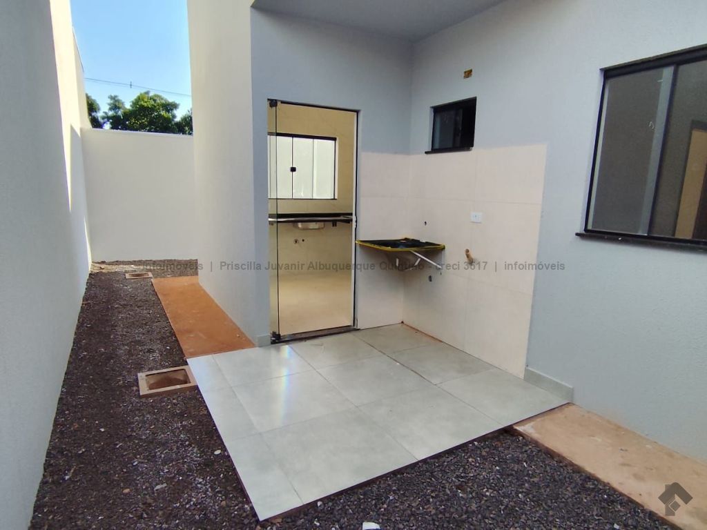 Casa nova de ótimo acabamento, com 2 quartos, 1 banheiro, sala ampla e cozinha americana. Lavanderia coberta, possui quintal na lateral e nos fundos. Aceita financiamento.