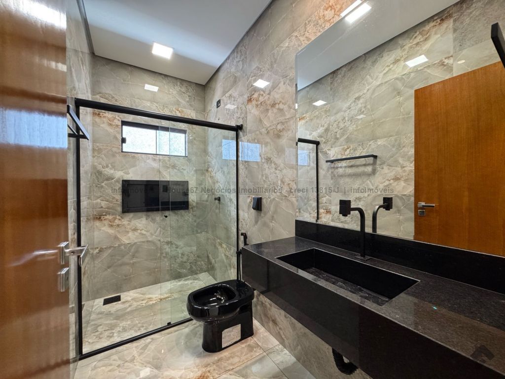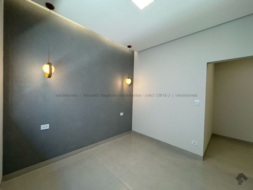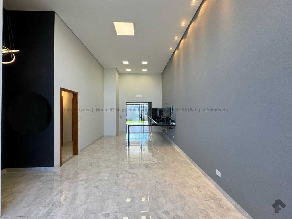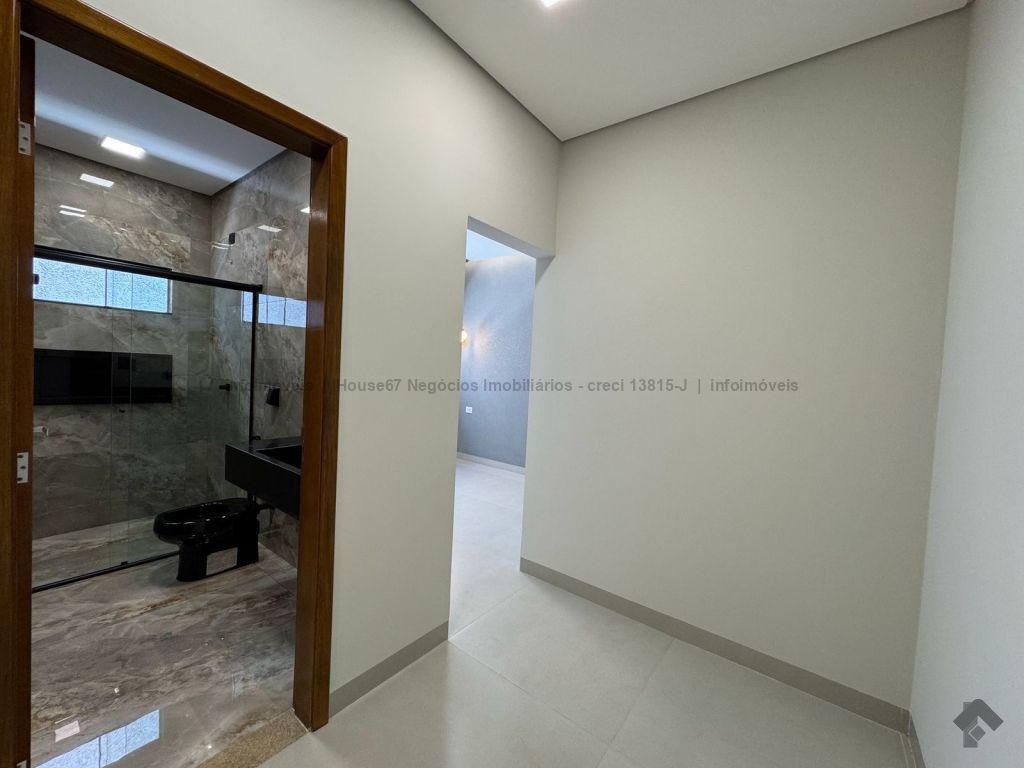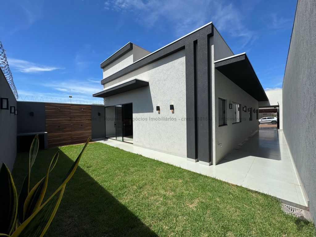 Área total do terreno de 250 m² (10 x 25 m), área construída de 143,89 m², 01 suíte com closet, 02 quartos, 01 WC social, sala de TV, sala de jantar e cozinha integrados e com pé direito altos, área gourmet fechada, lavabo, lavanderia fechada, garagem coberta para 2 carros, 5 pré-instalações para ar-condicionado, paisagismo e iluminação decorativa, portão de elevação com motor e trava, portão social com trava elétrica, interfone, cerca e concertina, sistema de monitoramento com 6 câmeras e DVR, área verde que permite a ampliação de uma piscina, jacuzzi ou a o que preferir.