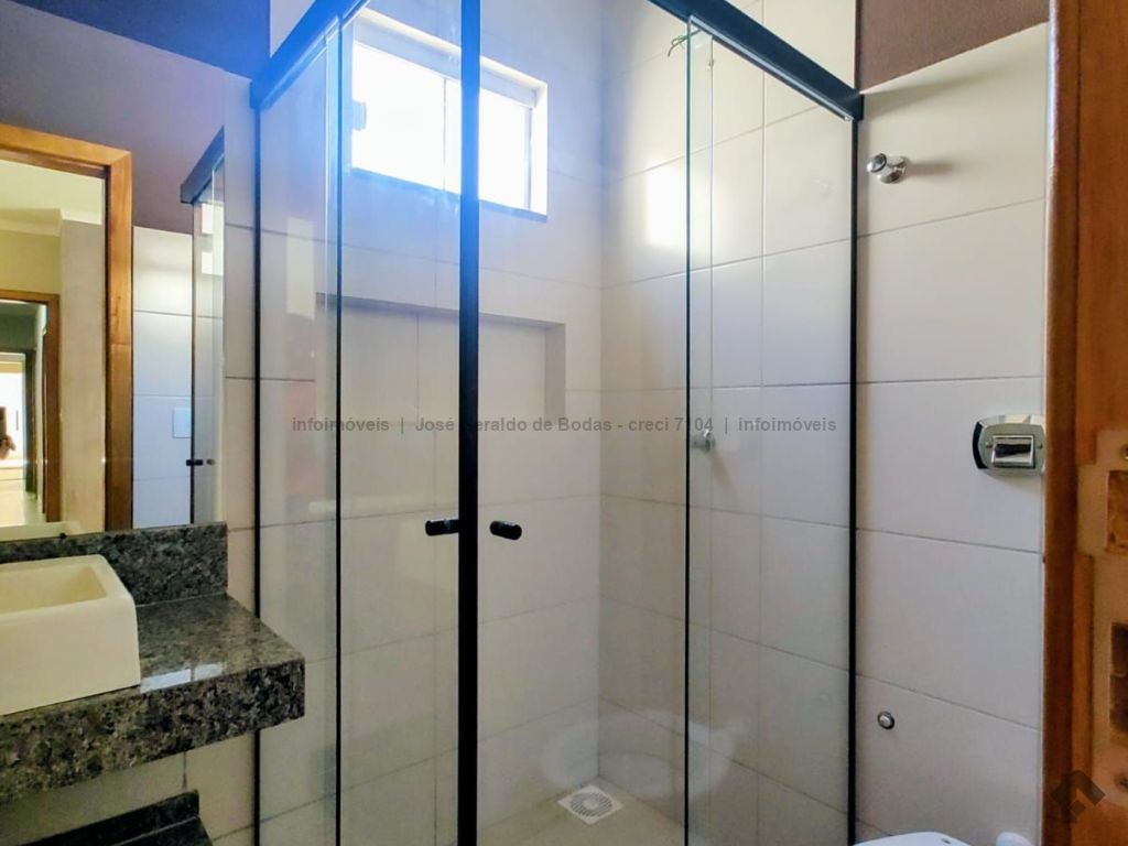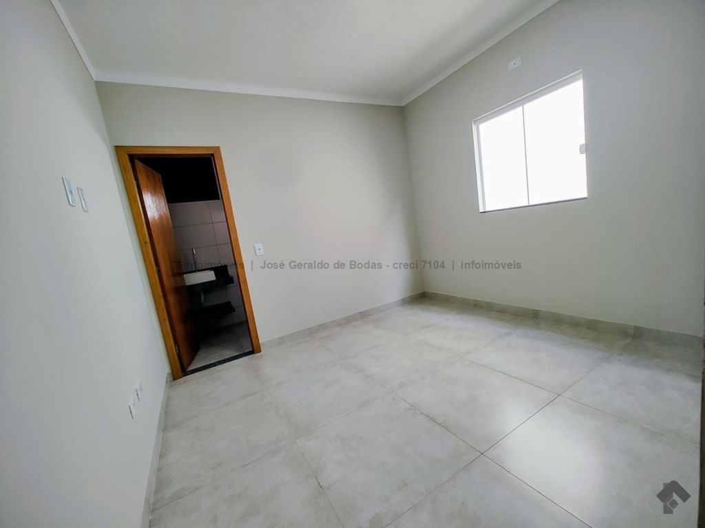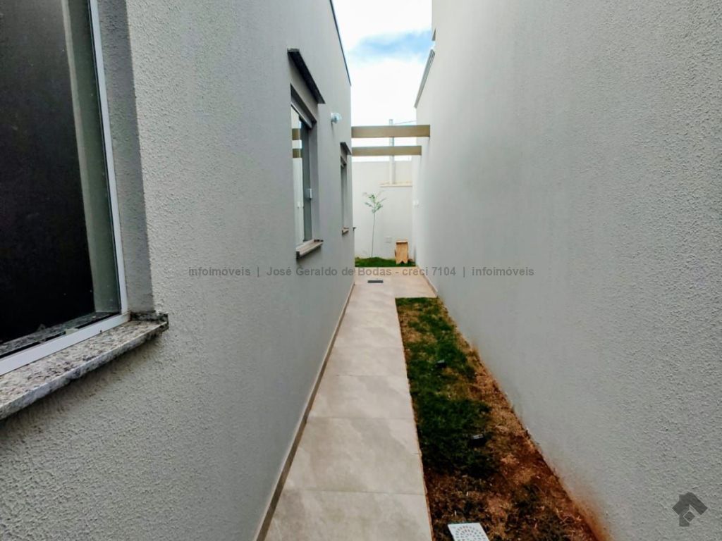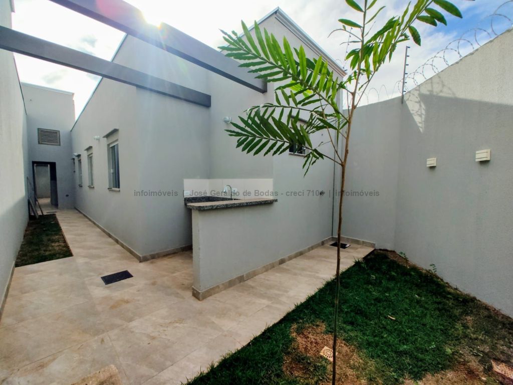 Excelente imóvel com fino acabamento, detalhes em gesso, sala com pé direito alto, três quartos, sendo uma suíte com banheiro com box em vidro temperado, sala, cozinha com planejados, cooktop e depurador, banheiro social com box em vidro temperado, quintal gramado, área gourmet com preparo para cobertura, pia e bancada em granito, área externa toda com piso antiderrapante e jardinagem.