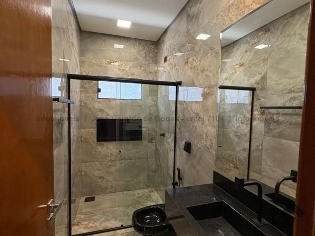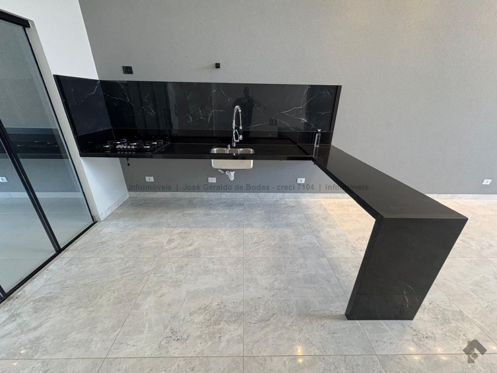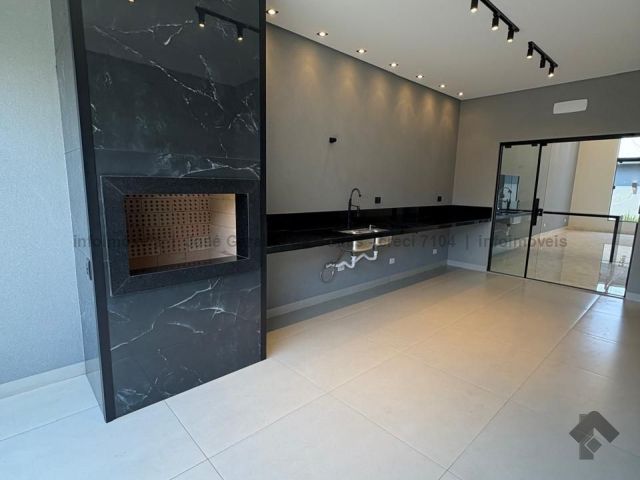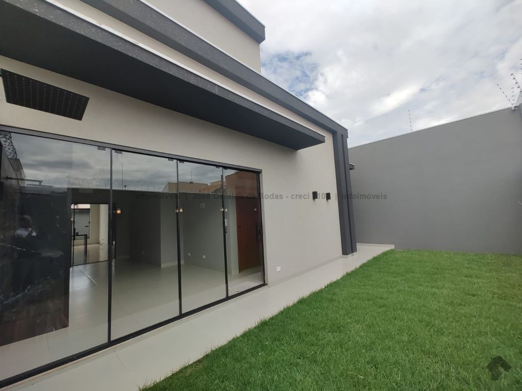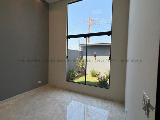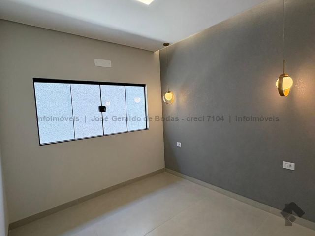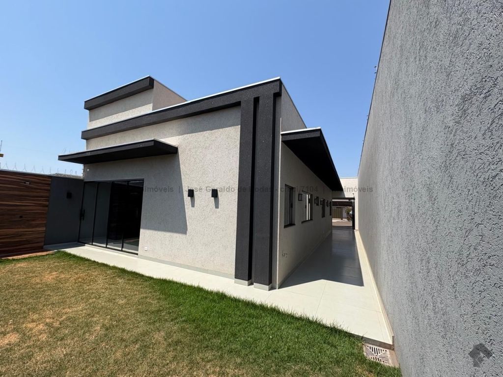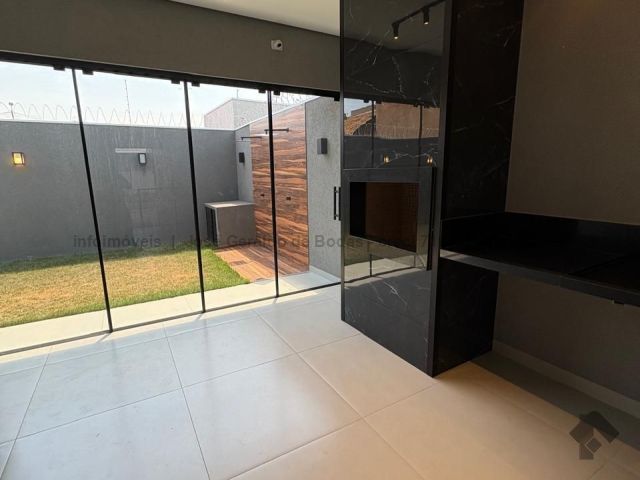 Excelente imóvel, alto padrão, todo em porcelanato, com uma suíte com closet, mais dois quartos, garagem coberta para dois veículos e descoberta para mais um, com portão de elevação com motor e travas elétricas já instaladas, ambientes totalmente integrados, sala de estar, jantar, cozinha e área gourmet, fantástico sistema de iluminação, todo em LED, luminárias, área gourmet fechada em blindex, quintal gramado, área excelente para uma piscina, circulação externa bem ampla, fachada imponente, sistema de segurança já instalado, com câmeras, cerca elétrica e concertina.