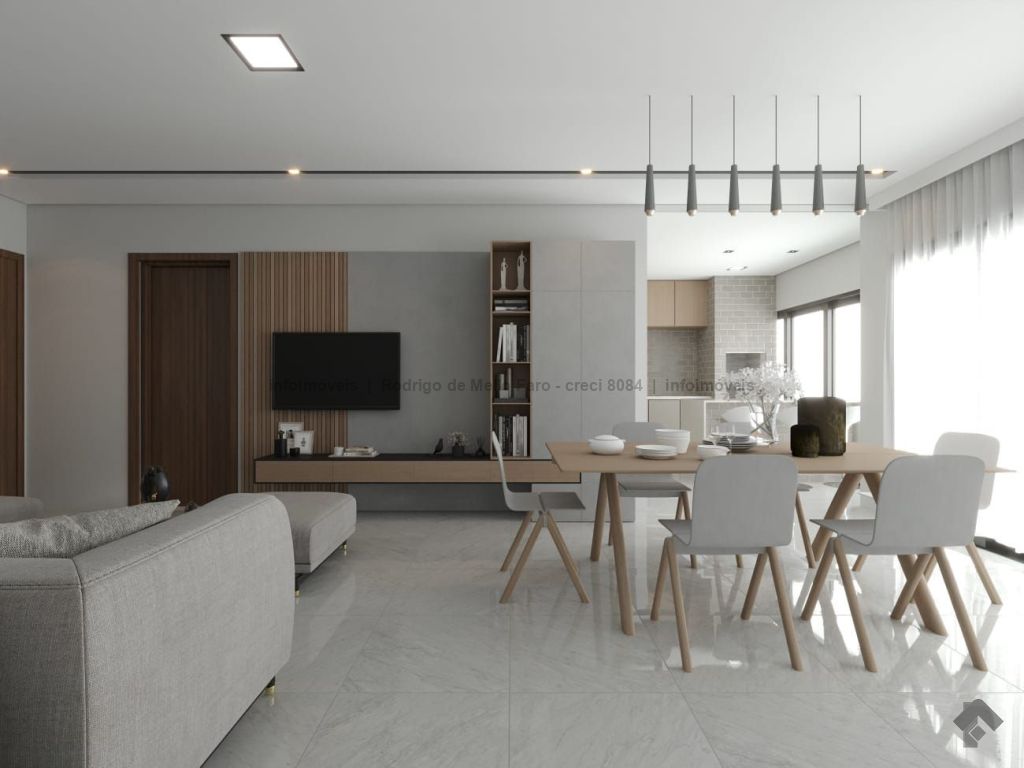 Piscina em vinil, área gourmet, sala de estar ampla, quartos amplos, lavanderia coberta separada, acabamento de alto padrão, forro de gesso acartonado, projeto luminotécnico rico em detalhes.