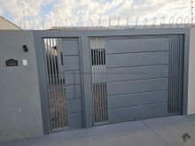 Uma suíte com banheiro com box, sala ampla, cozinha ampla, banheiro social com box, quintal grande, área de serviço coberta, moldura de gesso no teto da sala e em todos os cômodos.