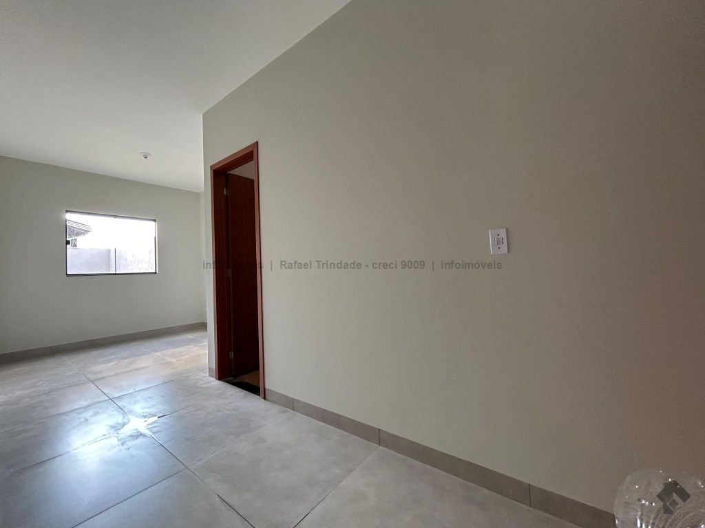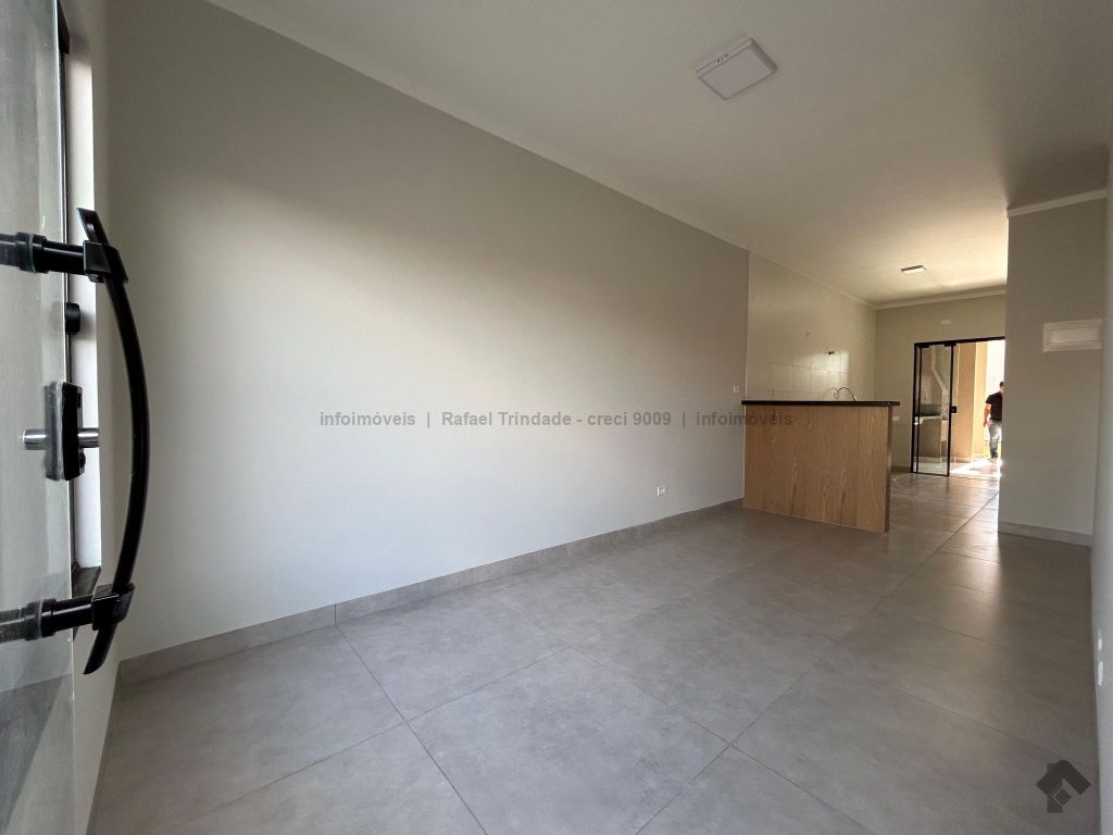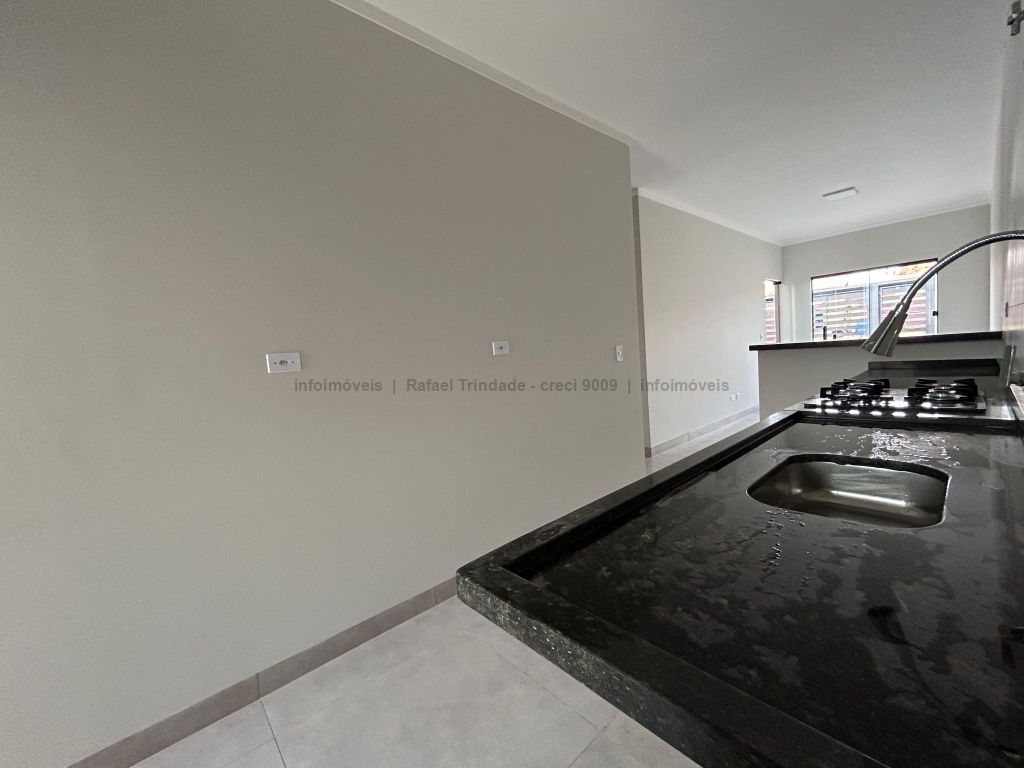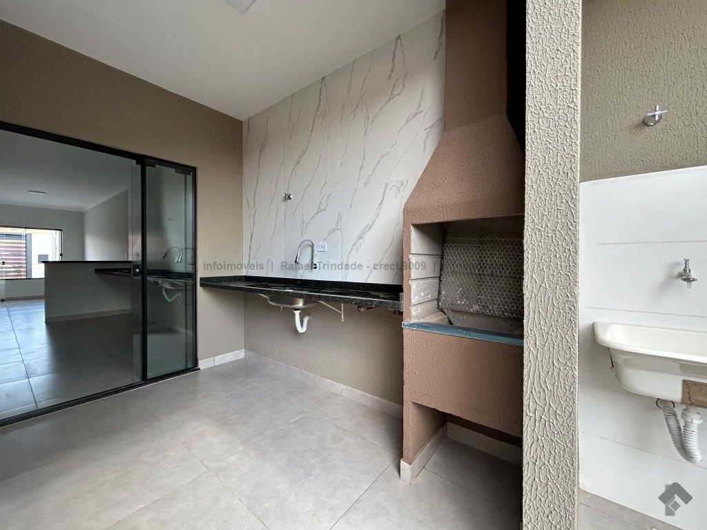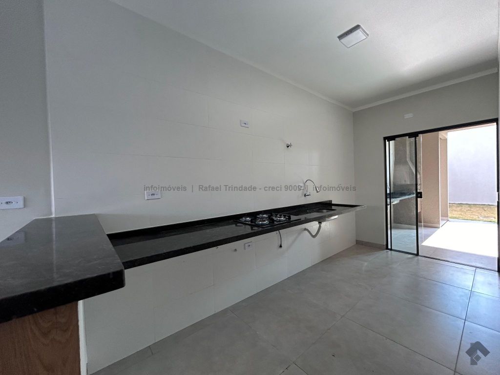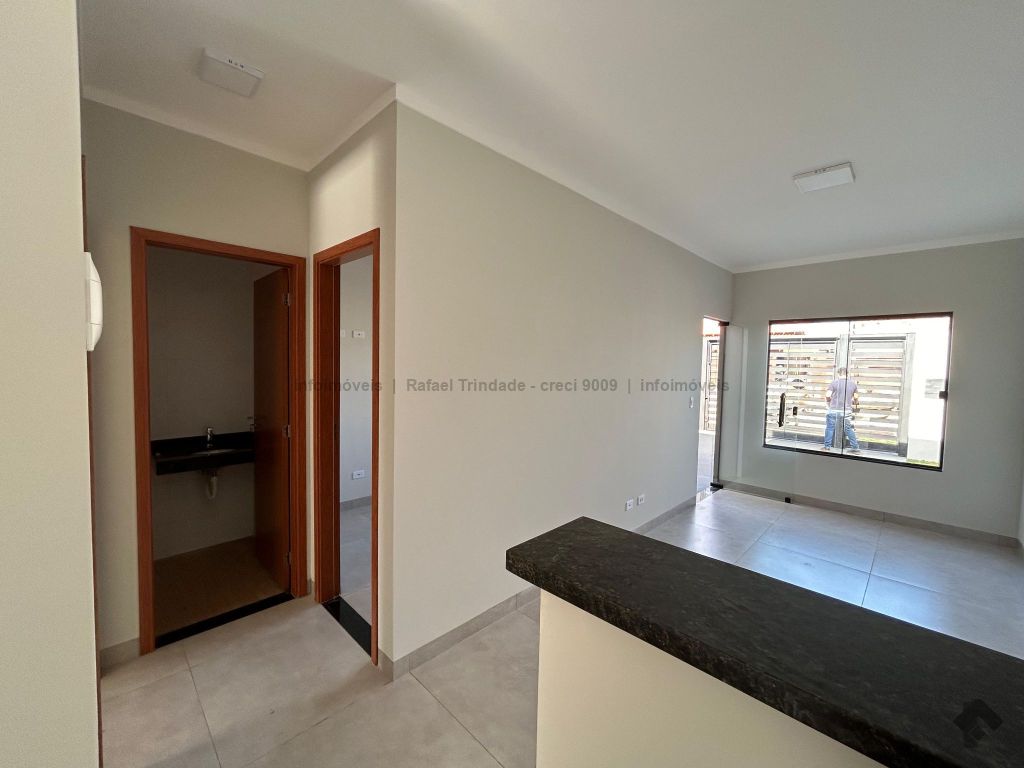 Casa nova, projeto moderno contendo garagem para 2 veículos, sala para até 2 ambientes, banheiro social, 1 dormitório, 1 suíte com closet e banheiro privativo, cozinha com pia e bancada ampla já equipada com fogão cooktop e ponto de gás com tubulação embutida, área gourmet com churrasqueira, lavanderia coberta com laje e amplo quintal.