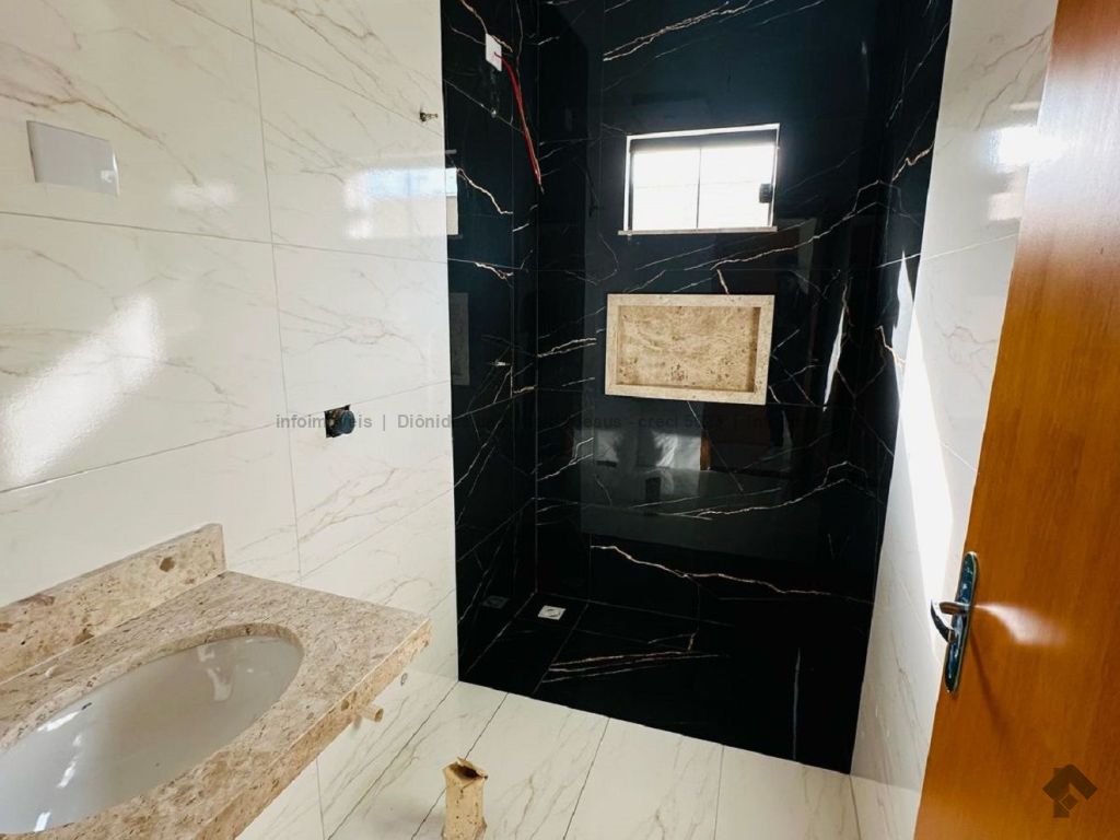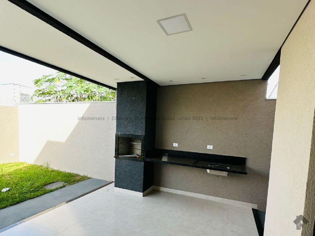 Toda de laje, sanca na sala e cozinha, iluminação em LED, pias da cozinha e balcão em granito, pias da churrasqueira e balcão em granito, pias dos banheiros e nichos em mármore travertino, porta da cozinha e janelas em vidro temperado, corredor lateral e quintal, parte permeável gramada.