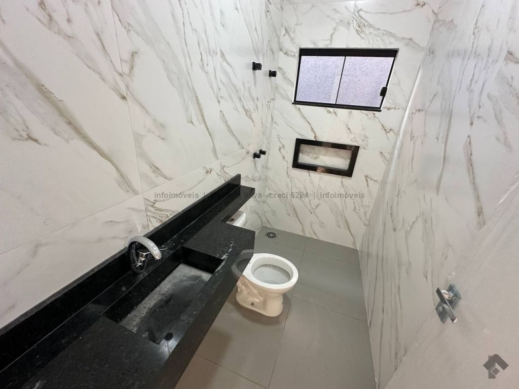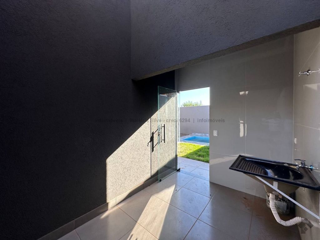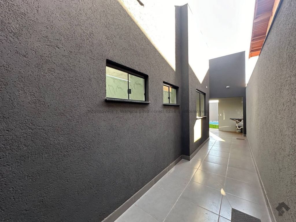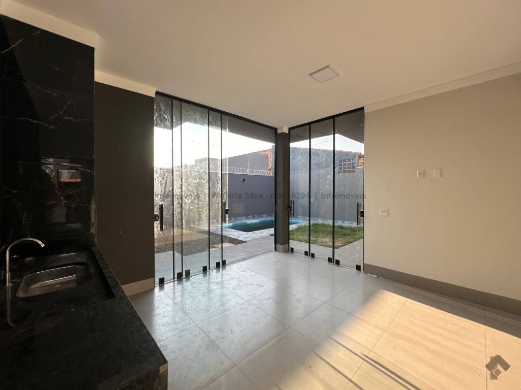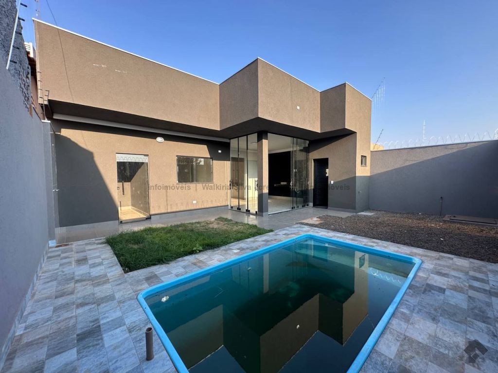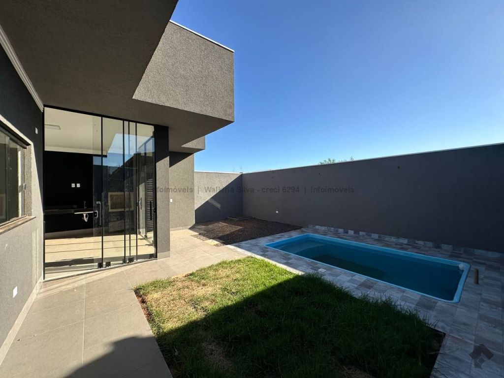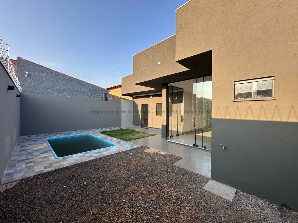 Linda casa toda em laje, fino acabamento, porcelanato, rodapé embutido de 15 cm, sanca com iluminação em LED, sala para 02 ambientes, janelas em vidro temperado, cozinha com bancada em granito, revestida, WC social, 03 quartos sendo 01 suíte, piscina com cascata, 02 vagas de garagem.