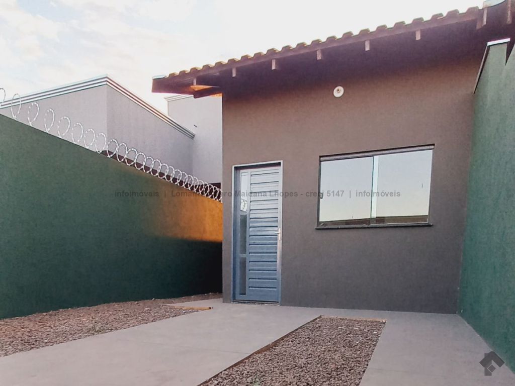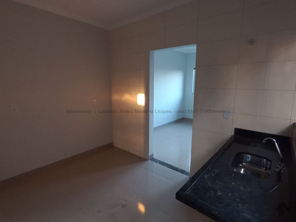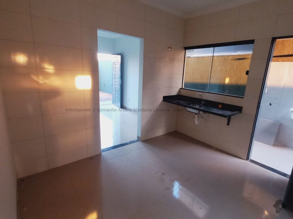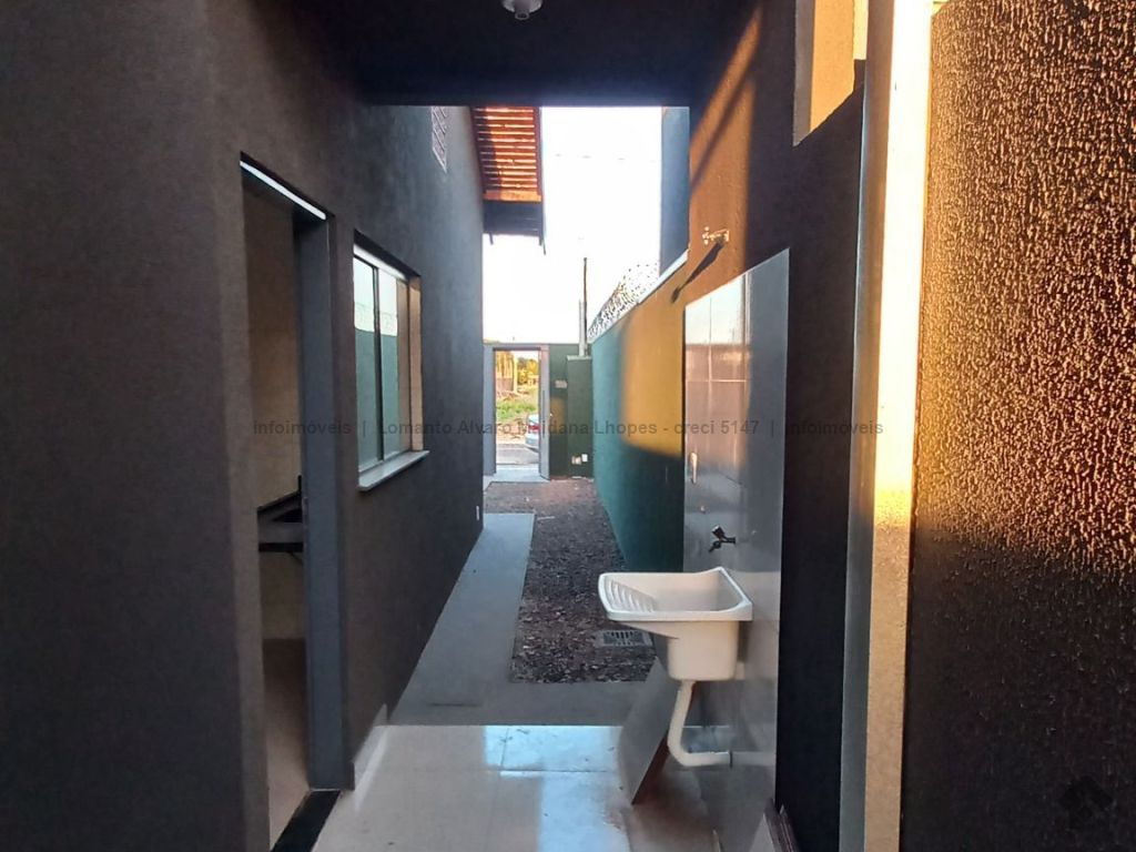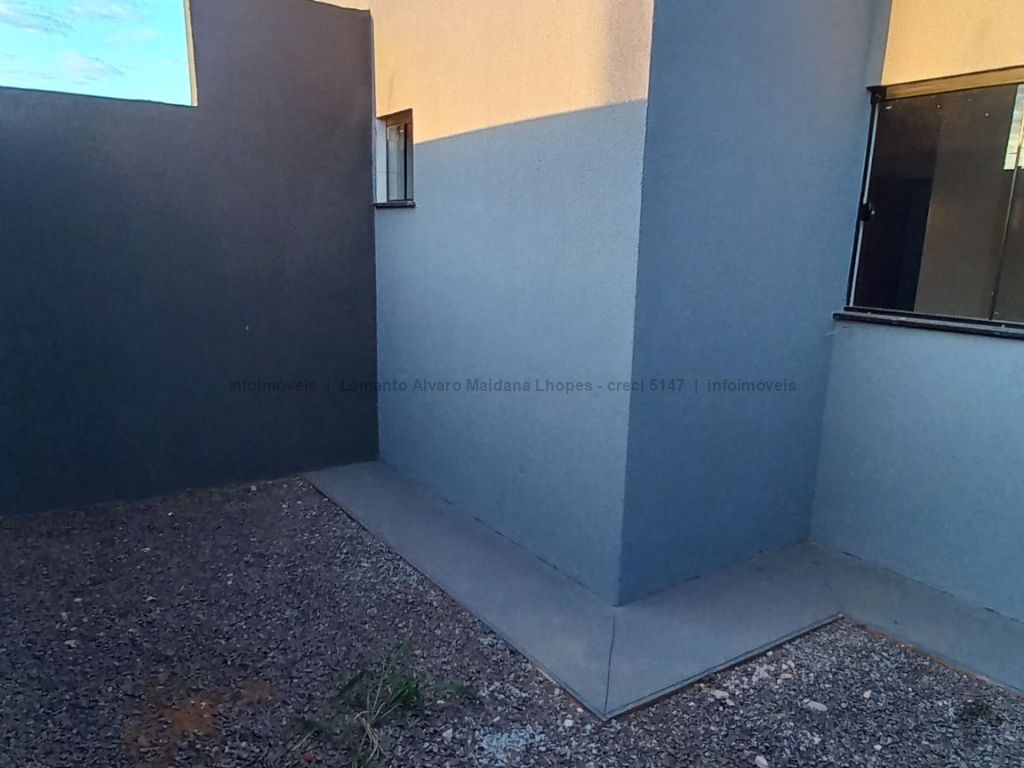 Casa de laje, no asfalto, sendo 1 suíte e 1 quarto, sala, cozinha individual, 1 WC social, área de serviço coberta, garagem para 1 carro, espaço de terreno no fundo.
