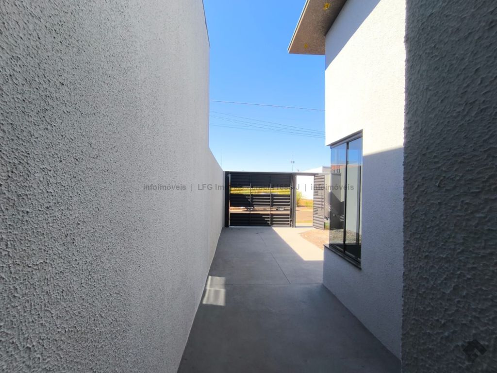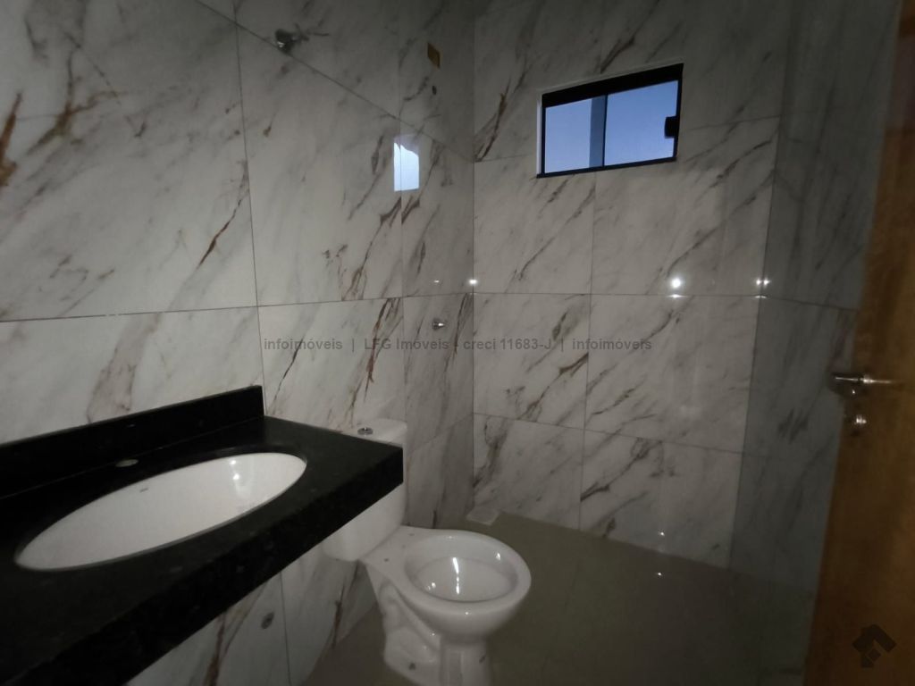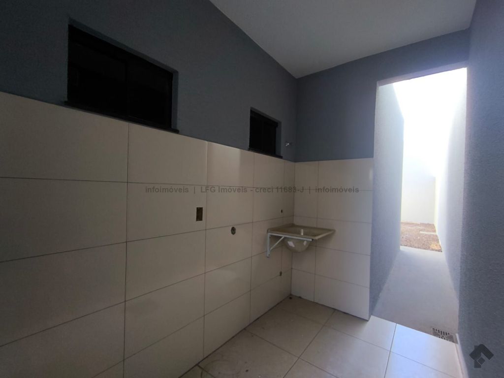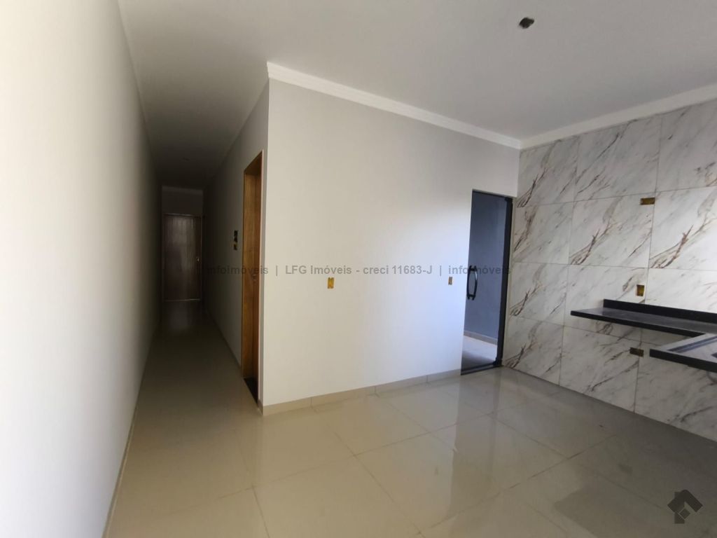 Casa nova, dois quartos sendo um suíte, banheiro social, cozinha, sala, área de serviço e garagem.