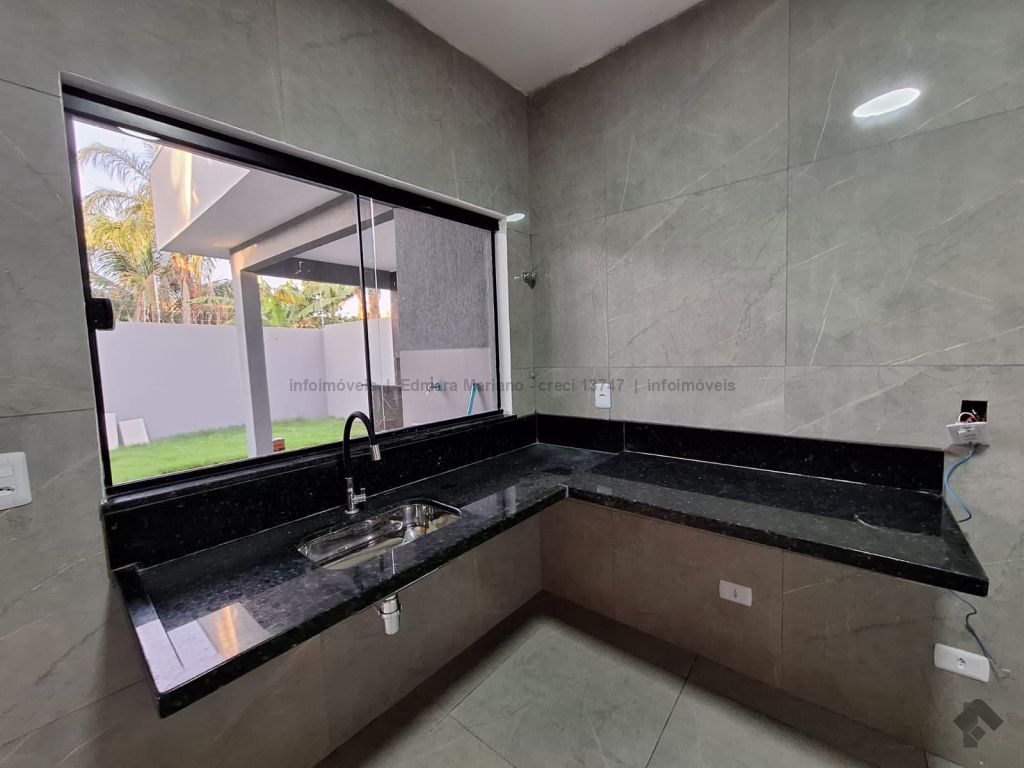 1 suíte, 2 quartos, 1 banheiro social (box nos banheiros), sala de estar, cozinha revestida, área gourmet, pergolado na garagem, lavanderia coberta, interfone, piso em porcelanato polido dentro e acetinado fora, cerca elétrica, motor elétrico no portão, 2 câmeras wi-fi de vigilância, ponto de água e luz para piscina, instalação elétrica para ar condicionado nos quartos feita seguindo projeto estrutural, toda em laje, energia fotovoltaica 600 kWh.