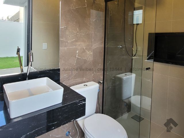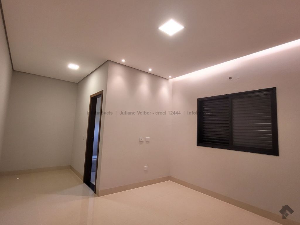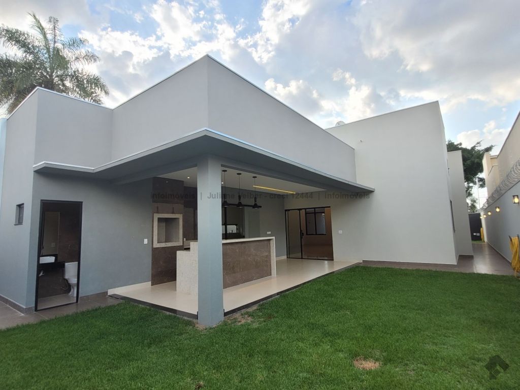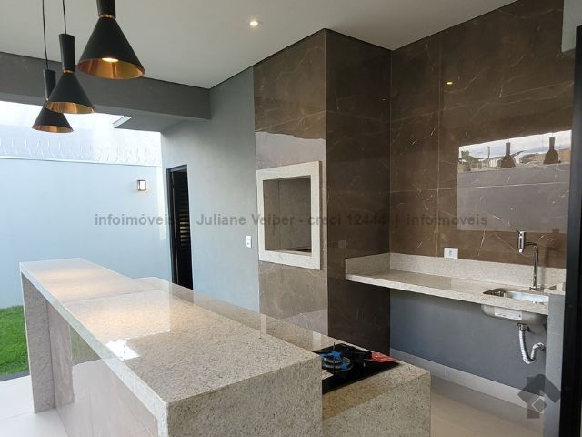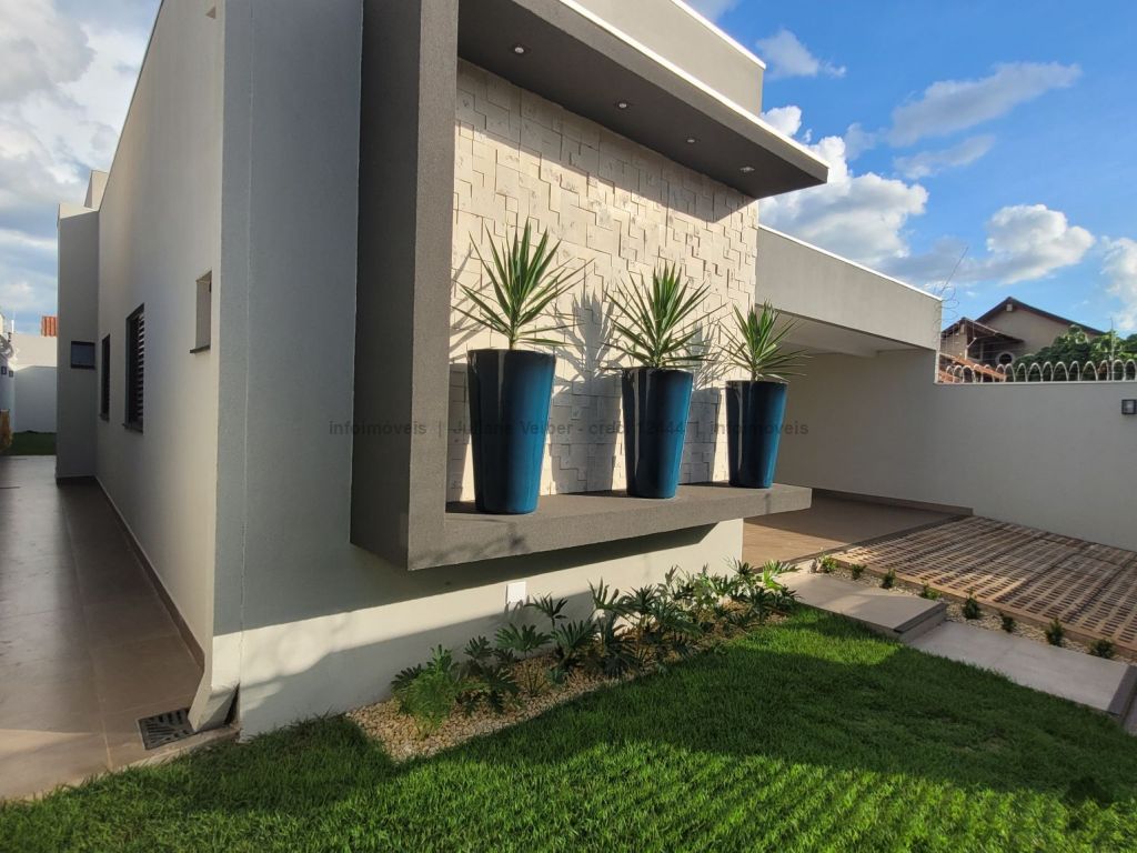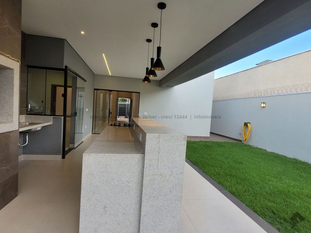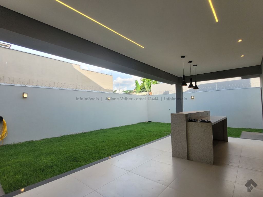 Acabamento em alto padrão, 4 vagas de garagem, sala ampla com pé direito alto, lavabo, suíte com closet, 2 quartos, banheiro social, cozinha, lavanderia, depósito, espaço gourmet integrado, banheiro para área externa, rebaixo em gesso, aquecedor solar acoplado ecológico, preparação para ar-condicionado split, iluminação LED, bancadas em granito, vidro temperado, janelas em alumínio, jardim com paisagismo, telhado com estrutura metálica e telhas galvalume/isotérmica. Cerca elétrica e alarme.