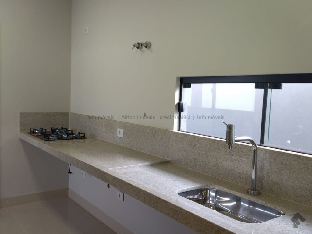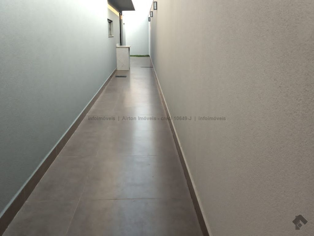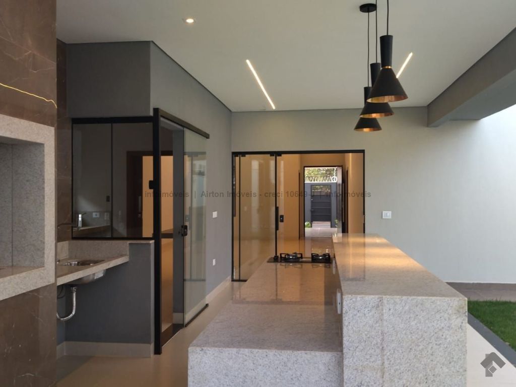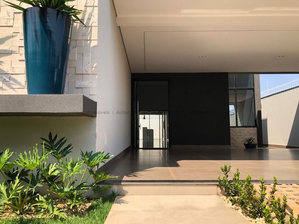 Imóvel com fino acabamento, 3 quartos, sendo 1 suíte com closet, 4 vagas garagem, sala 2 ambientes, pé direito alto, lavabo, wc social, cozinha com cooktop e rica lavanderia, despensa, espaço gourmet integrado, wc para área externa, rebaixo em gesso, aquecedor solar acoplado ecológic, pontos para ar condicionado, projeto luminotécnico em led super bacana, bancadas em granito, janelas em alumínio, telhado estrutura metálica telhas galvolume/isotérmica, portão motorizado, alarme e cerca elétrica. Jardim com paisagismo na frente e amplo quintal nos fundos que permite instalação de piscina.