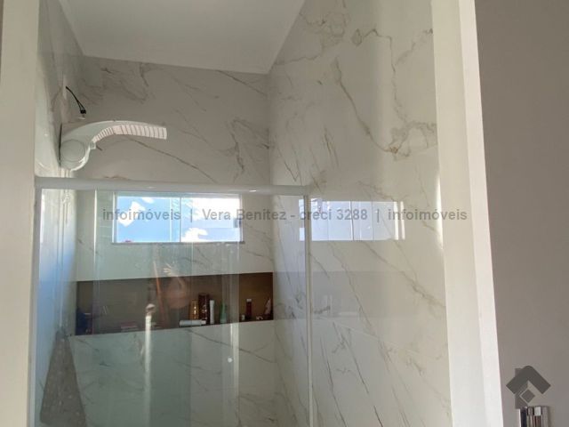 Lindo imóvel com 2 quartos, sendo 1 com armário embutido e ar condicionado, 1 suíte com ar condicionado, 2 closets, 1 demi suíte, sala ampla com pé direito alto, jardim de inverno, lavabo, cozinha integrada com ilha (pedra São Gabriel), armários embutidos, cooktop, balcão de apoio e churrasqueira. Varanda integrada com a área de lazer, piscina aquecida com iluminação, cascata, hidromassagem e prainha. Casa com energia fotovoltaica. Sistema de segurança completo com 4 câmeras, concertina, cerca elétrica, alarme, interfone com câmera e portão eletrônico 4 segundos com trava. Rica em iluminação e espaço verde para paisagismo. Varanda ampla na frente, lavanderia e depósito.