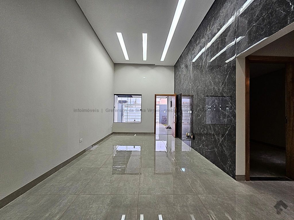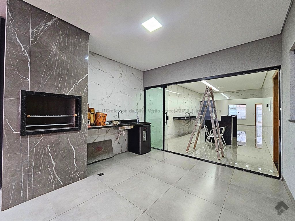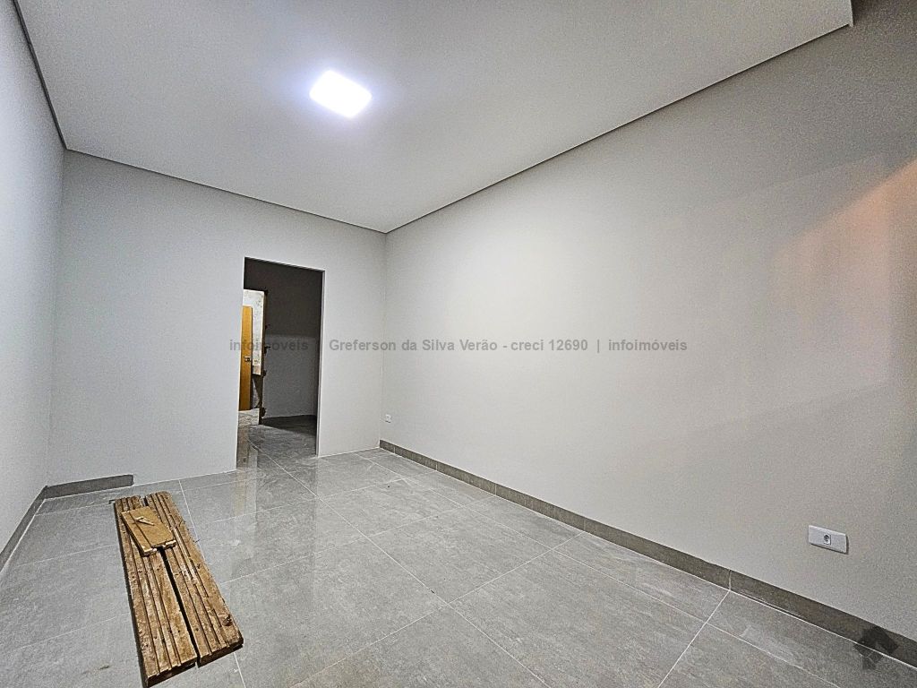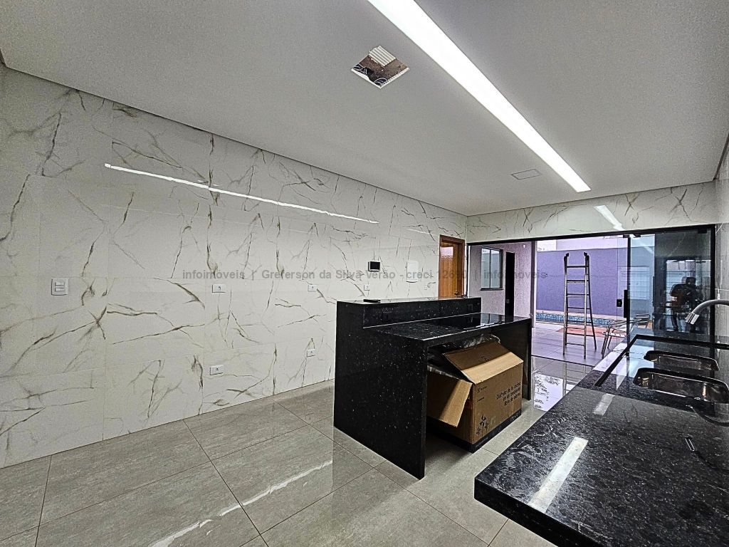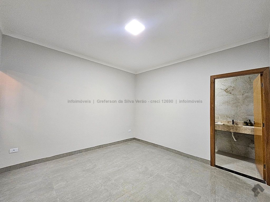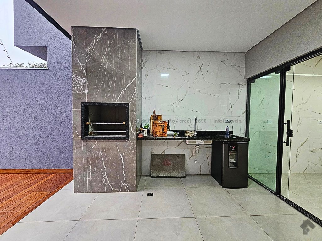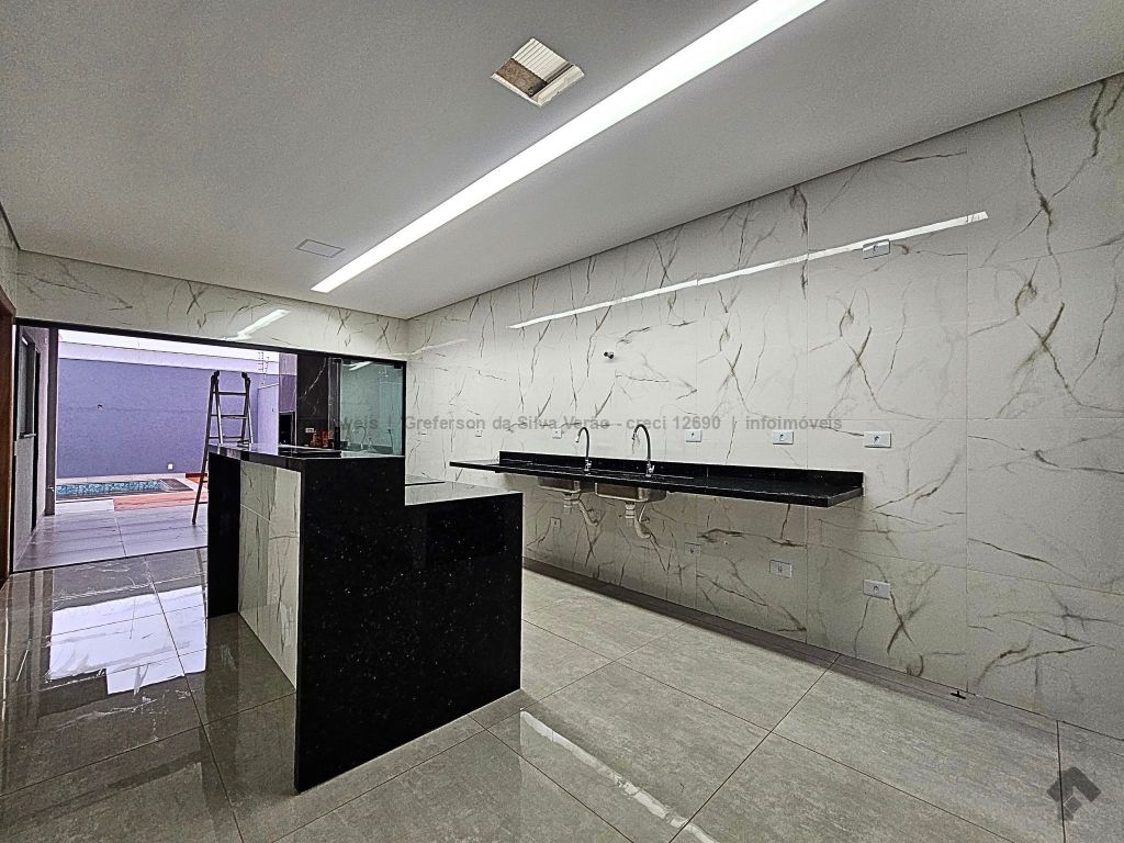 Casa térrea nova com 3 suítes. Imóvel entrando em fase de pintura, 225 m² de área total, 140 m² de área construída, 3 suítes, sendo 1 suíte com closet e duas cubas, banheiro social, até 4 vagas de garagem, corredor lateral, sala ampla com pé direito duplo e rebaixamento em gesso, jardim de inverno, cozinha fechada e toda azulejada, espaço gourmet amplo com pia e bancada em mármore, lavanderia coberta e isolada, sobra de quintal nos fundos para piscina.