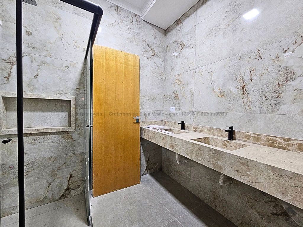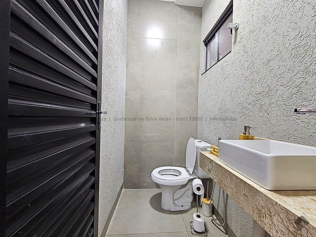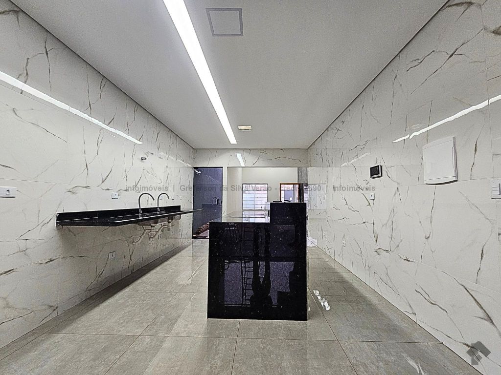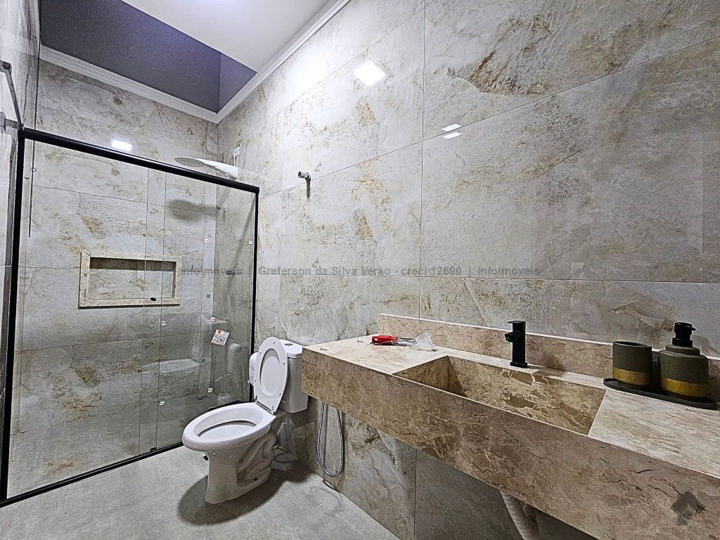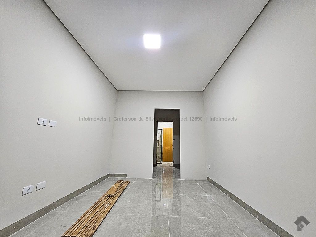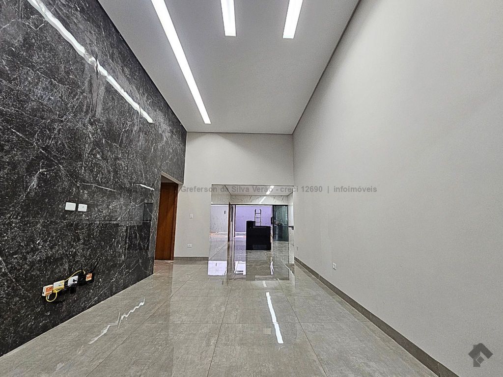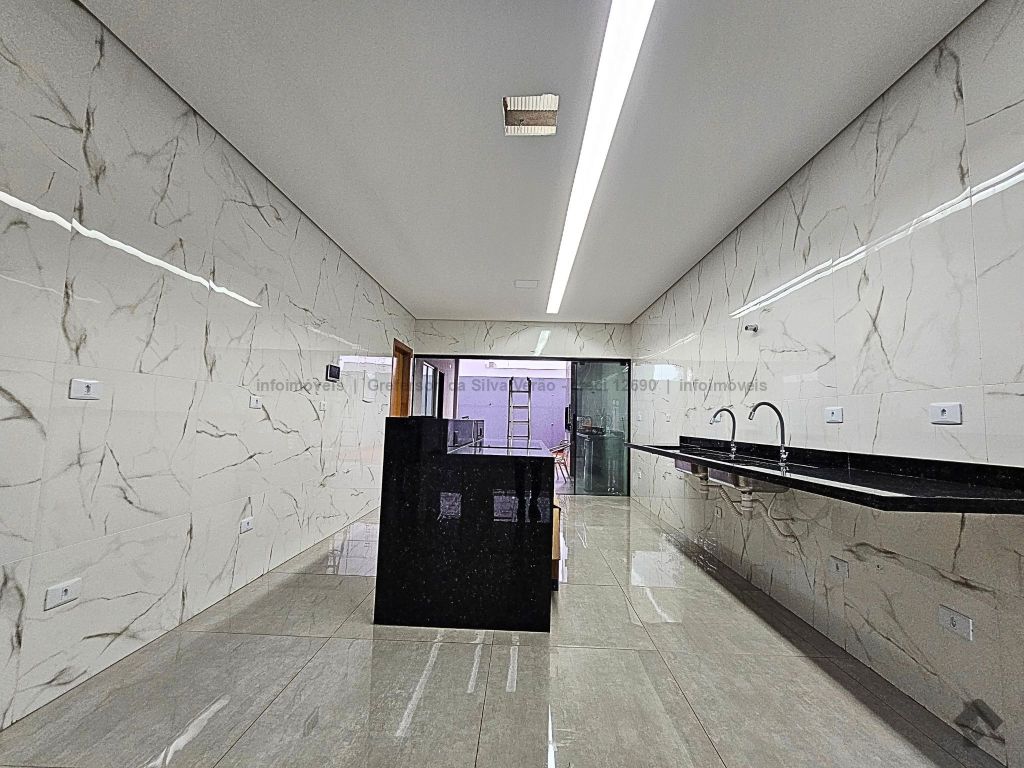 Casa térrea nova com 3 suítes. Imóvel entrando em fase de pintura, 225 m² de área total, 140 m² de área construída, 3 suítes, sendo 1 suíte com closet e duas cubas, banheiro social, até 4 vagas de garagem, corredor lateral, sala ampla com pé direito duplo e rebaixamento em gesso, jardim de inverno, cozinha fechada e toda azulejada, espaço gourmet amplo com pia e bancada em mármore, lavanderia coberta e isolada, sobra de quintal nos fundos para piscina.