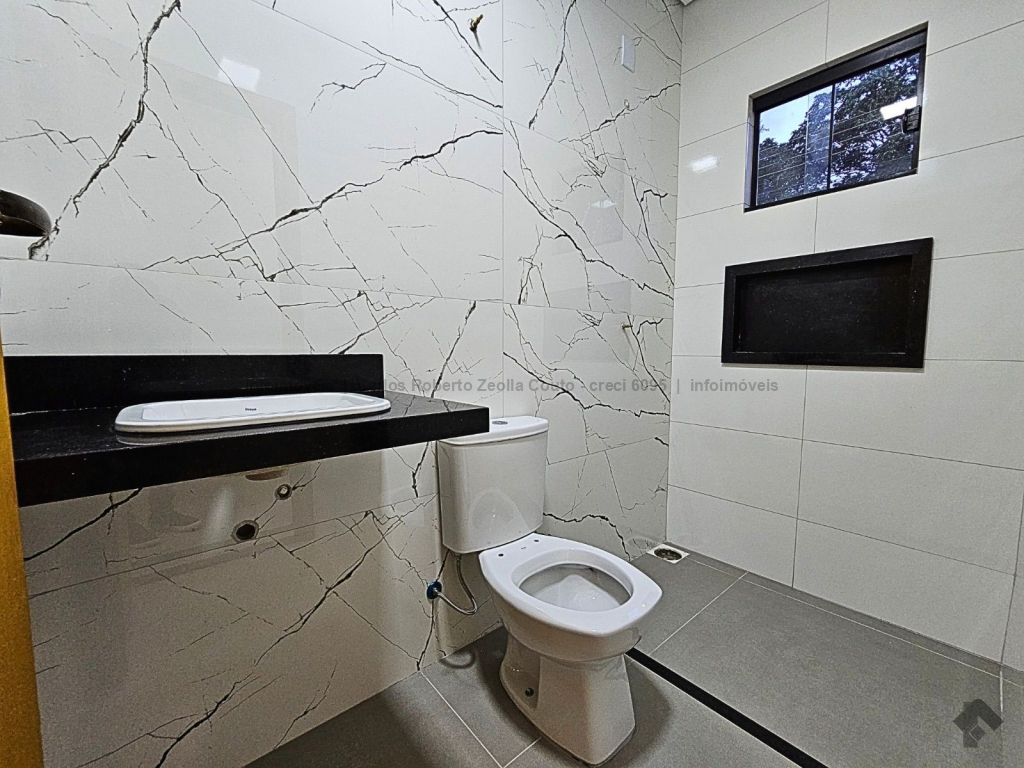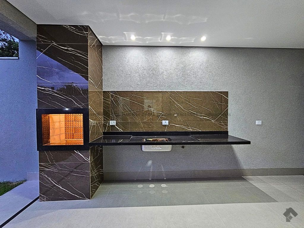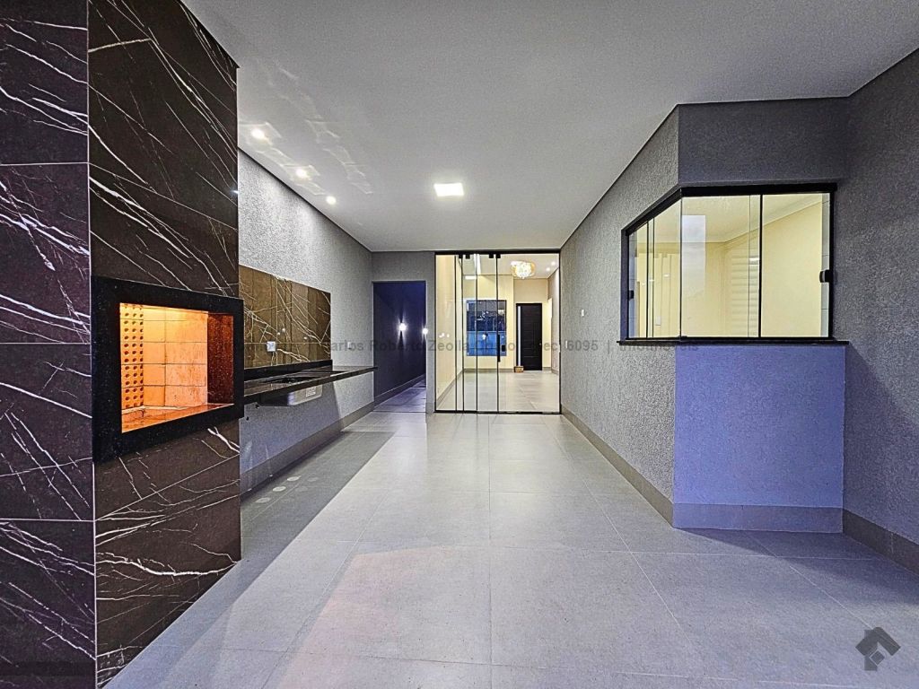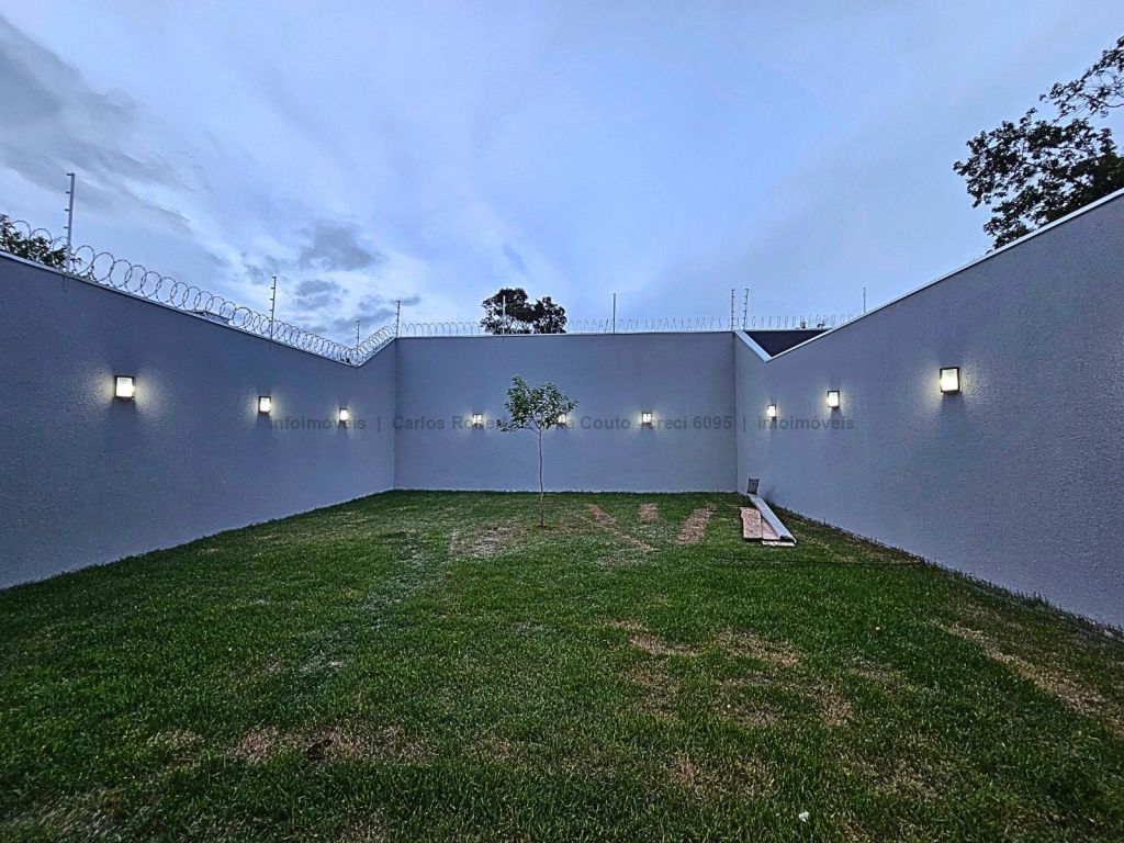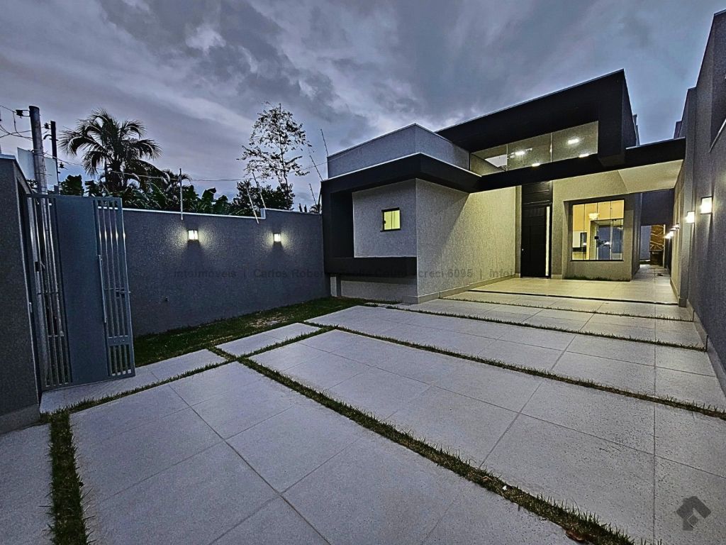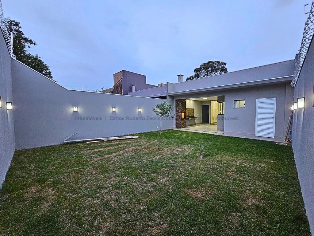 Fachada imponente e moderna 276 m² de área total 126 m² de área construída. Descritivo: 4 vagas de garagem, sala ampla 2 ambientes com pé direito alto, sanca e lustre, 3 quartos sendo 1 suíte com closet. Jardim de inverno, WC social, cozinha ampla separada, toda revestida com bancada em L, espaço gourmet completo com churrasqueira e bancada. Lavabo externo, lavanderia coberta separada e integrada ao estendal, corredor lateral.