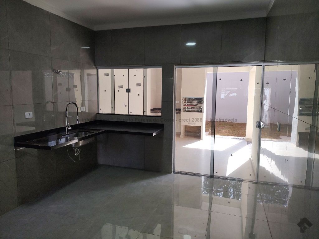 Garagem para 3 carros, 2 quartos e 1 suíte, 1 sala e cozinha grande, banheiro social, jardim de inverno, área gourmet com churrasqueira, espaço no fundo para piscina.