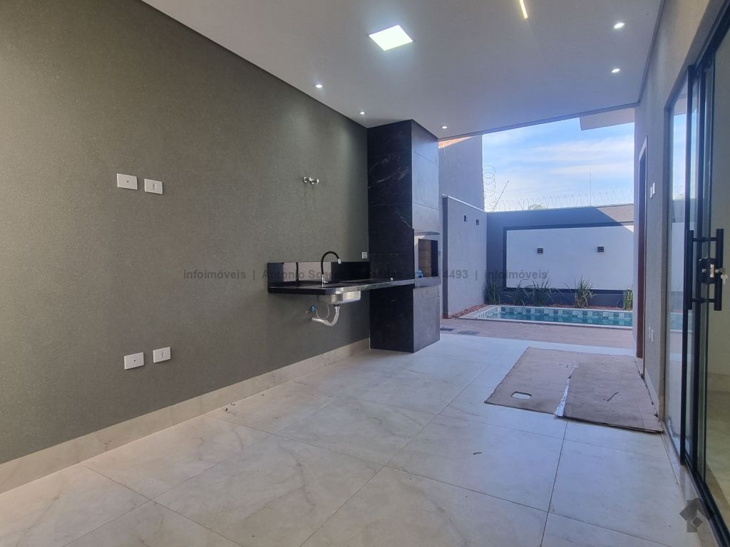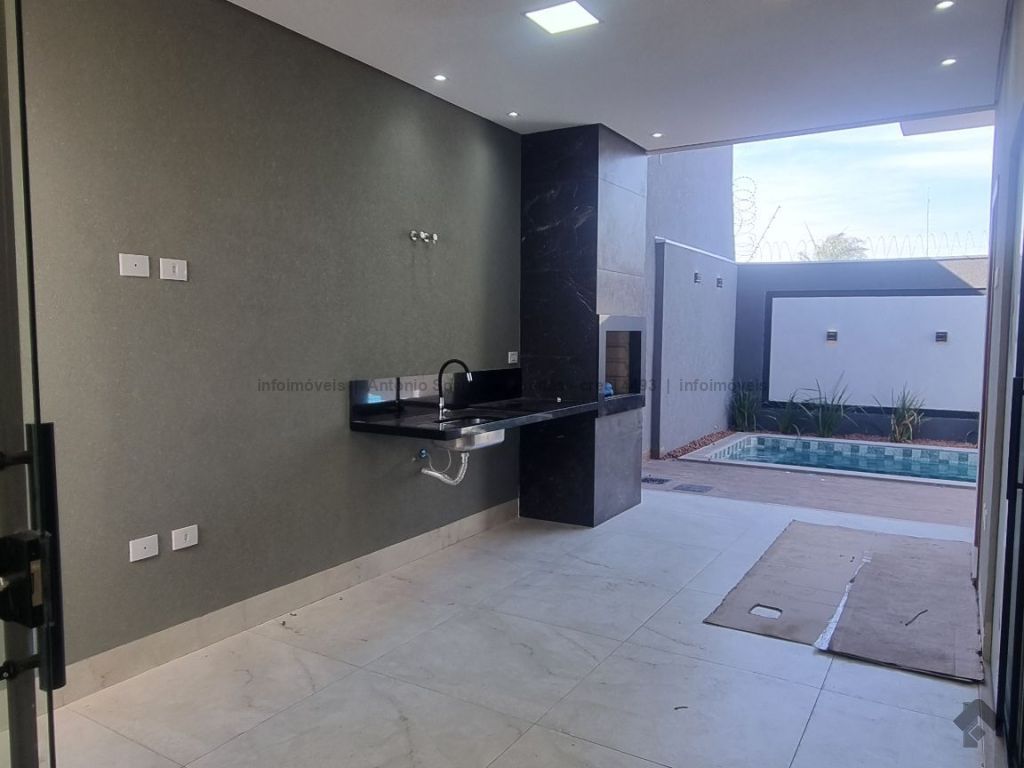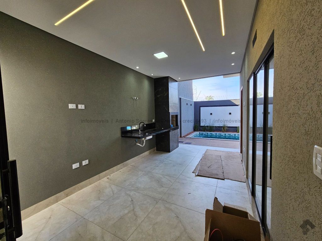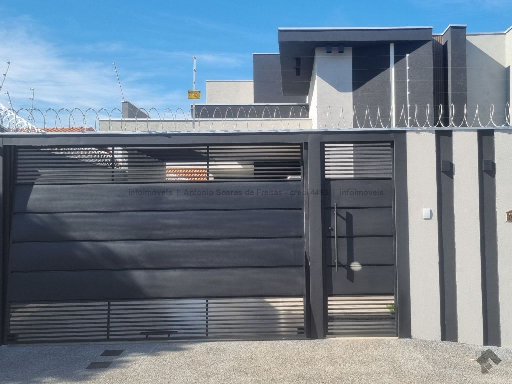 Fachada imponente e designer moderno. Possui cerca elétrica, concertina, porcelanato polido, rodapés embutidos, sanca, rebaixamento e molduras em gesso, projeto luminotécnico, jardim de inverno, pergolado, garagem coberta e descoberta, piscina, aquecedor, espaço gourmet e lavanderia. Composta de 3 suítes, banheiros azulejados com pia em mármore e nicho embutido, jardim de inverno, sala de estar e jantar com pé direito duplo alto, cozinha azulejada com pia e bancada em mármore e integrada com espaço gourmet com churrasqueira, pia e bancada em mármore, lavabo externo e piscina com jardim.