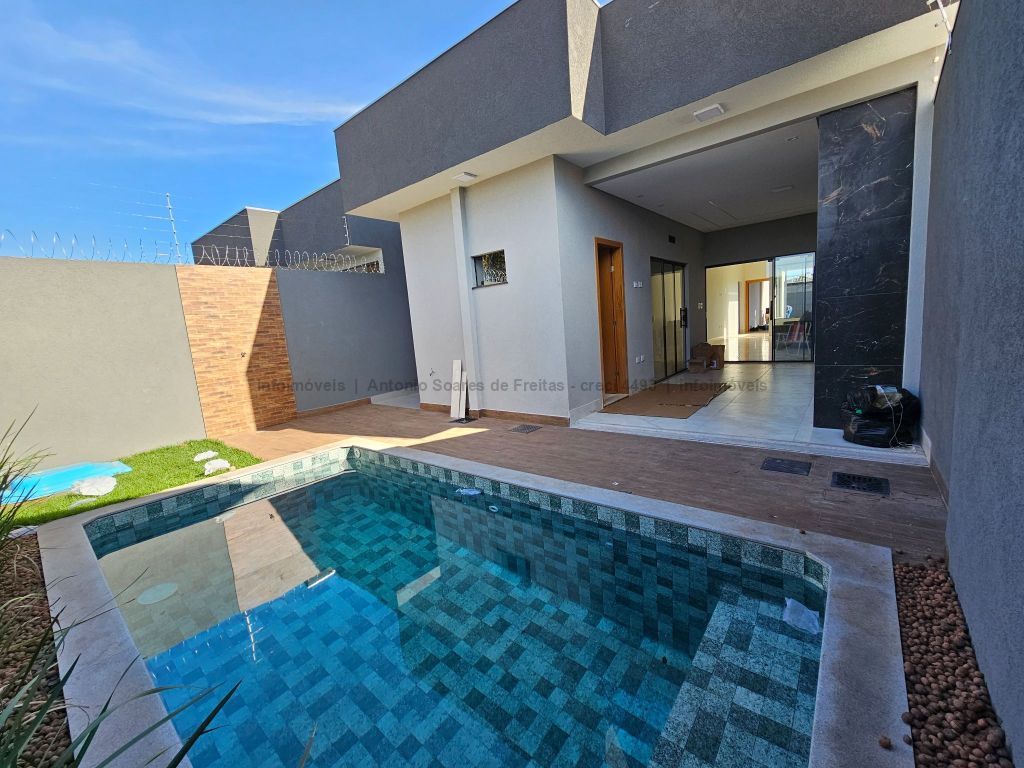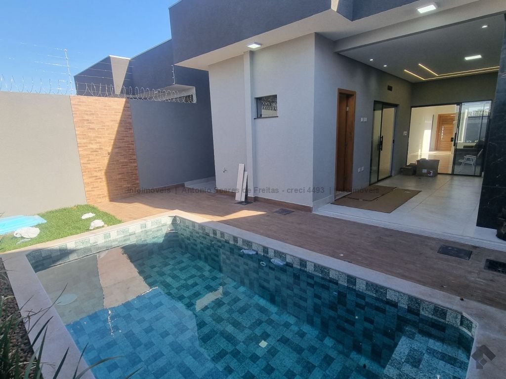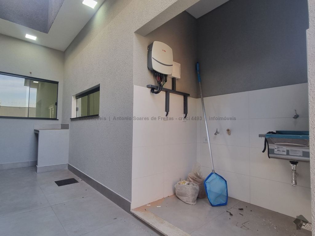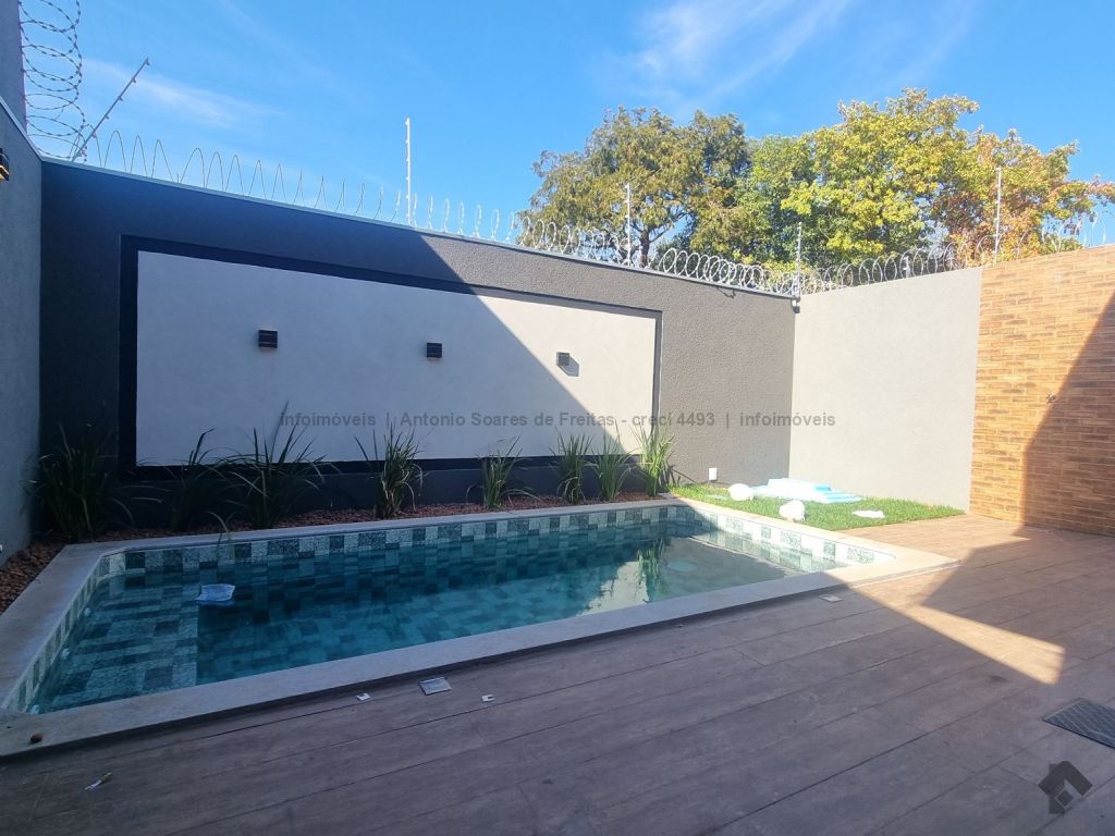 Fachada imponente e designer moderno. Possui cerca elétrica, concertina, porcelanato polido, rodapés embutidos, sanca, rebaixamento e molduras em gesso, projeto luminotécnico, jardim de inverno, pergolado, garagem coberta e descoberta, piscina, aquecedor, espaço gourmet e lavanderia. Composta de 3 suítes, banheiros azulejados com pia em mármore e nicho embutido, jardim de inverno, sala de estar e jantar com pé direito duplo alto, cozinha azulejada com pia e bancada em mármore e integrada com espaço gourmet com churrasqueira, pia e bancada em mármore, lavabo externo e piscina com jardim.