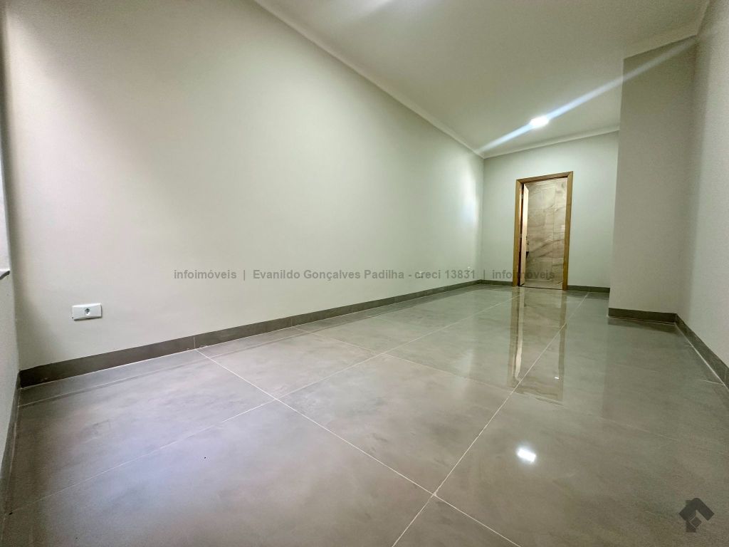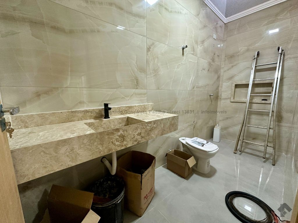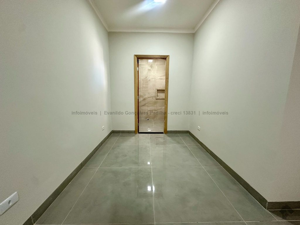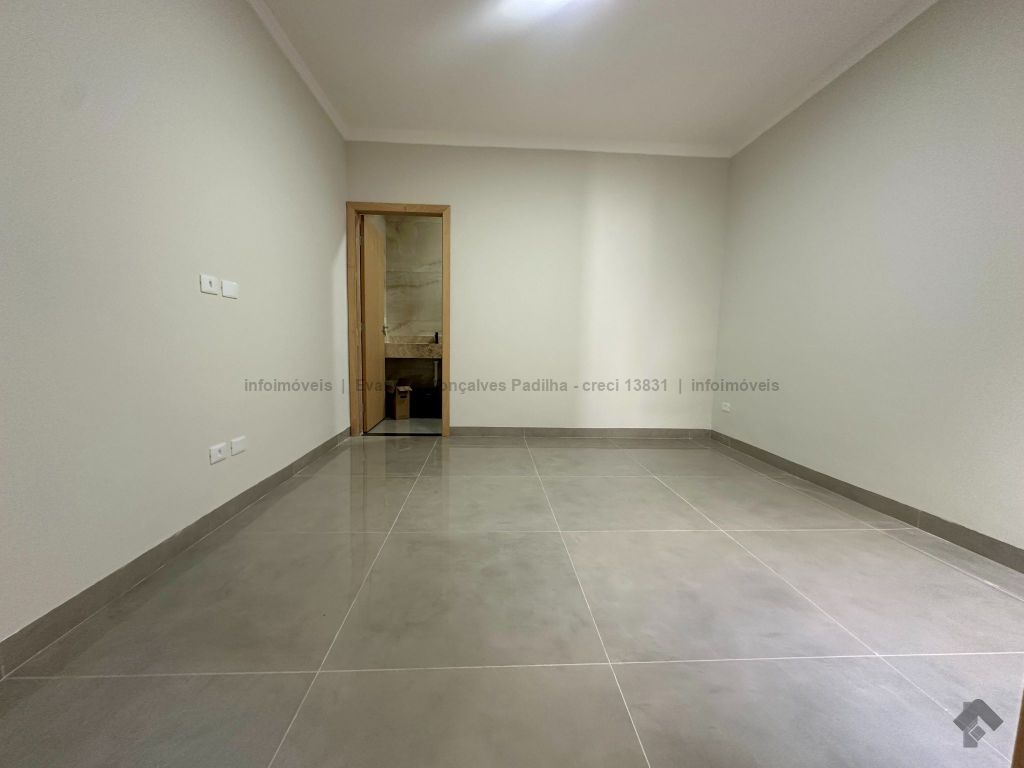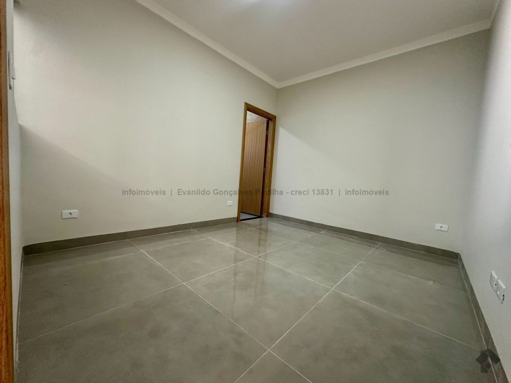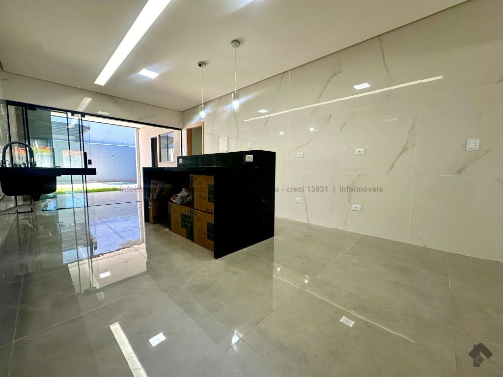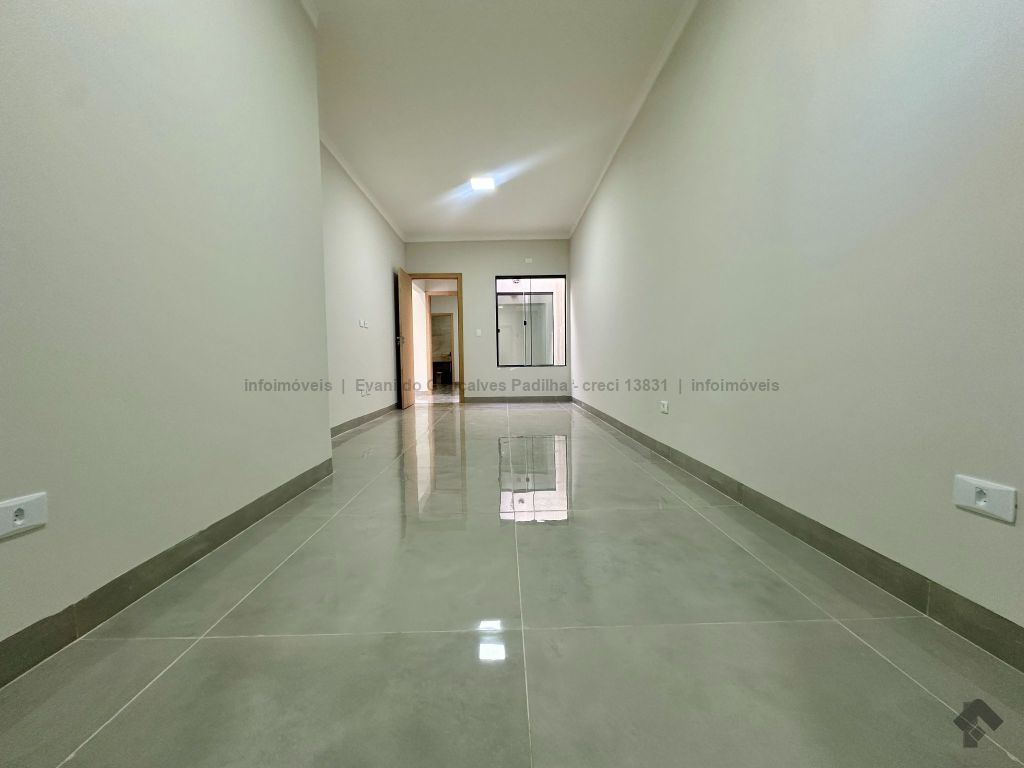 Belíssima casa térrea nova no bairro Rita Vieira 1. Com 3 suítes, 225 m² de área total e 140 m² de área construída. 3 suítes, sendo uma com closet e duas cubas, WC social, lavabo, até 4 vagas de garagem, corredor lateral, sala ampla com pé direito duplo e rebaixamento em gesso, jardim de inverno, cozinha fechada e toda azulejada, espaço gourmet amplo com pia e bancada em mármore e lavabo, lavanderia coberta e isolada, sobra de quintal nos fundos para piscina.