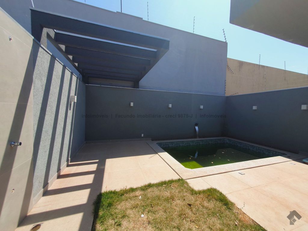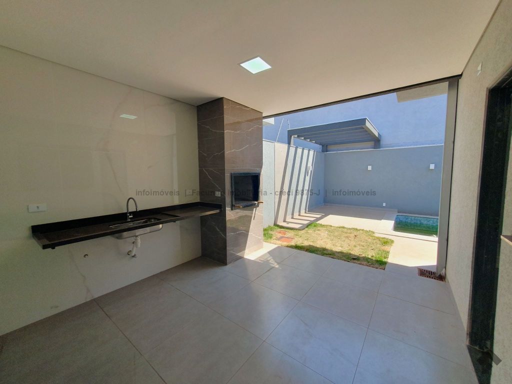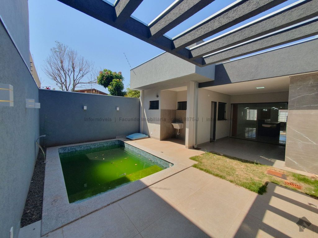 O imóvel conta com 3 suítes, sala para 2 ambientes com pé direito alto integrada com a cozinha, varanda com churrasqueira, banheiro externo, piscina e até 2 vagas de garagem.