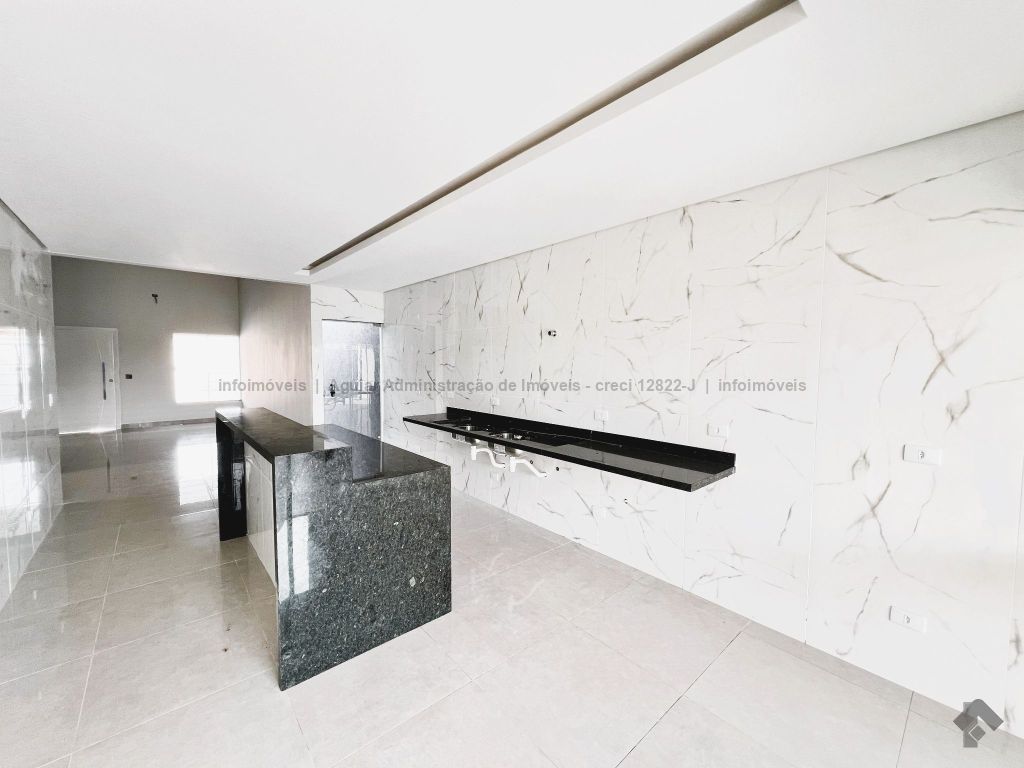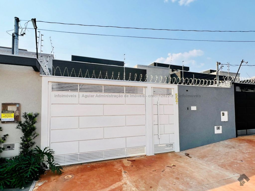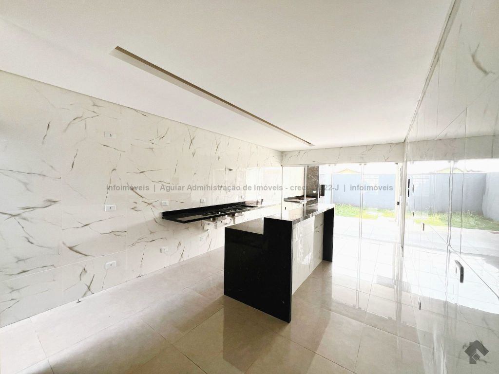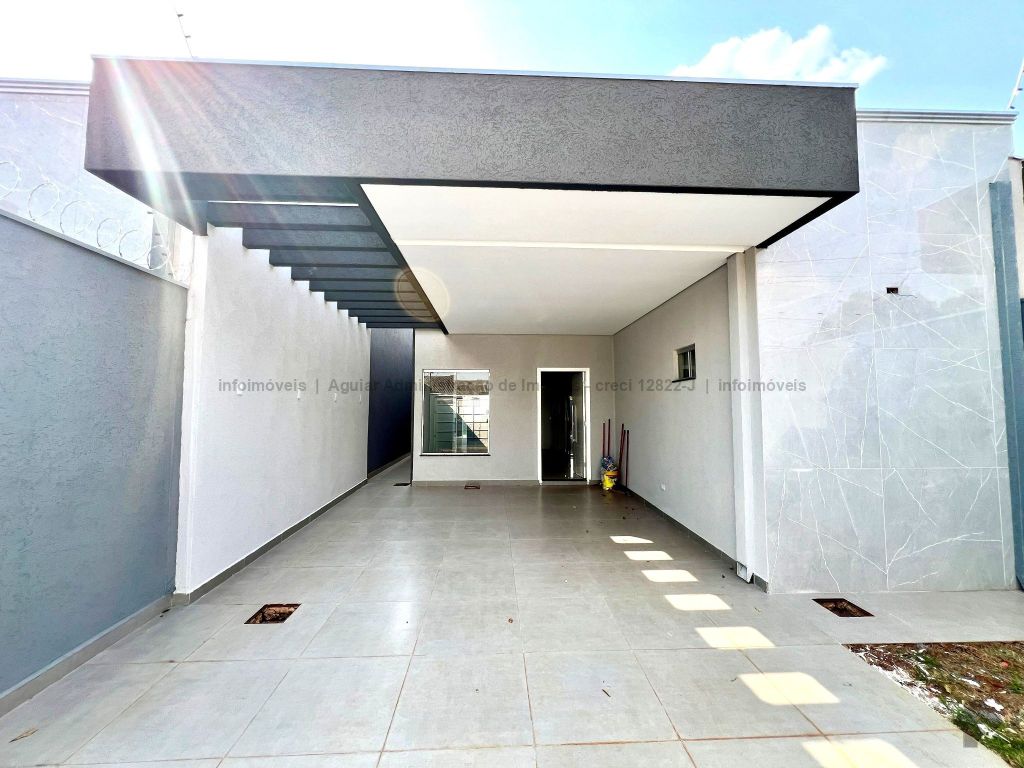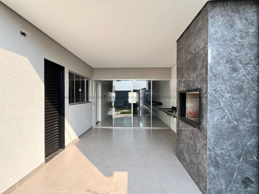 Casa térrea, construção nova no bairro Rita Vieira I, com três suítes, sala para dois ambientes, pé direito alto, cozinha com ilha e duas cubas, lavanderia coberta, churrasqueira e área gourmet, interfone, portão de elevação e quatro vagas de garagem, sendo duas cobertas, sem piscina.