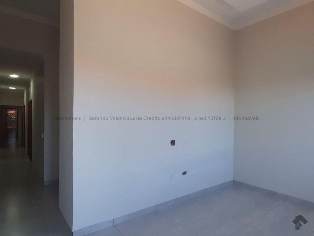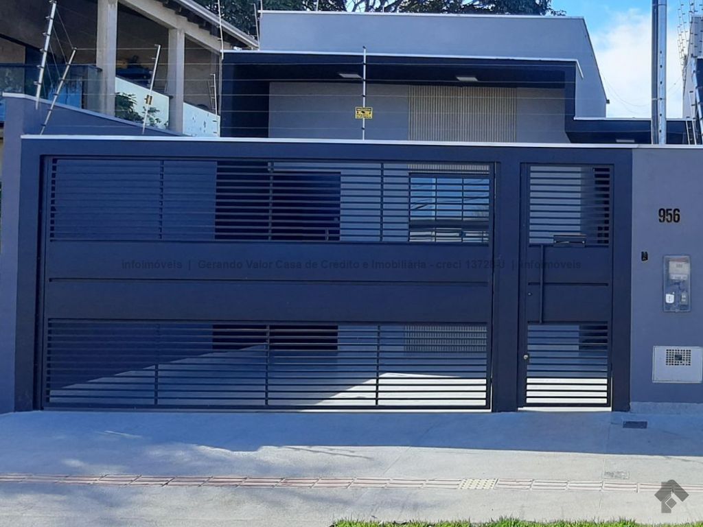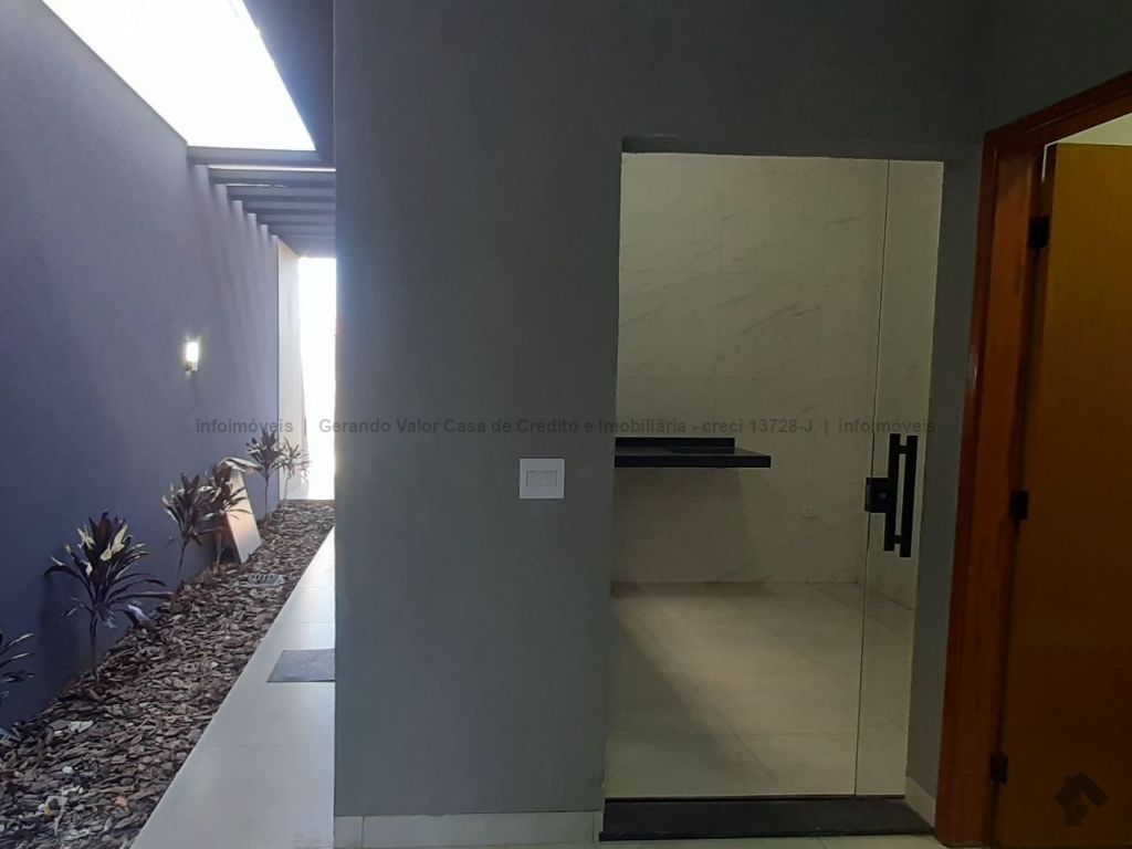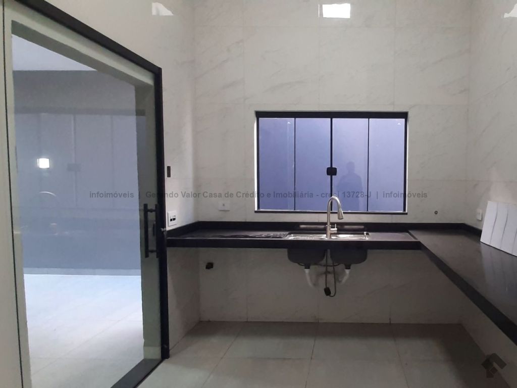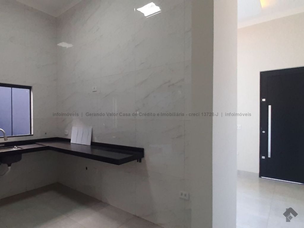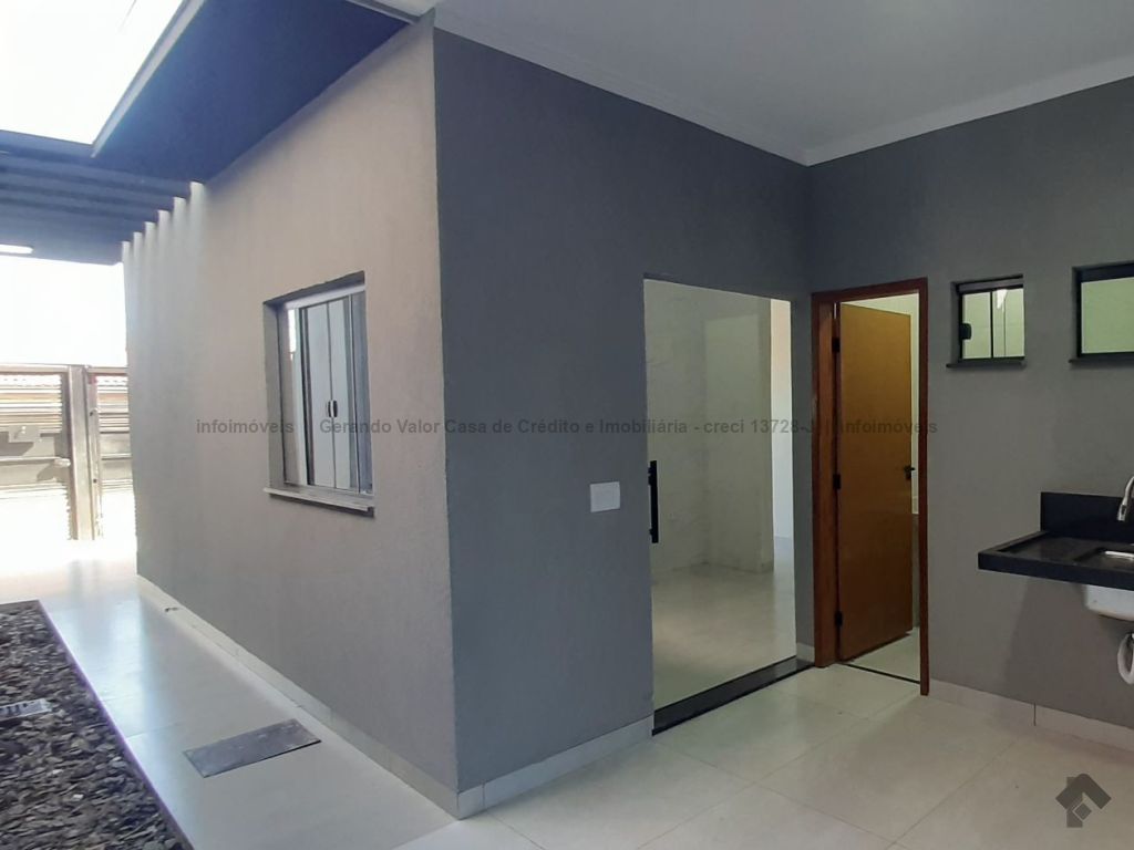 Casa pronta no bairro Rita Vieira. Área construída de 101 m², área total de 180 m², sala com pé direito alto, cozinha com pé direito alto, banheiro social, dois quartos, uma suíte, área gourmet com churrasqueira e pia, coberta, lavabo, área de serviço coberta, garagem para dois carros.