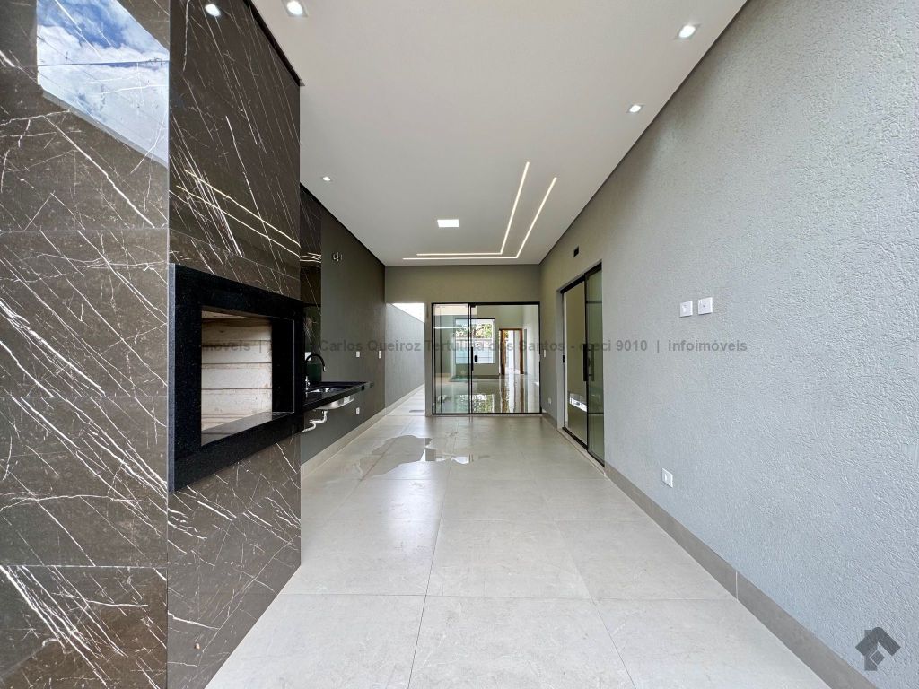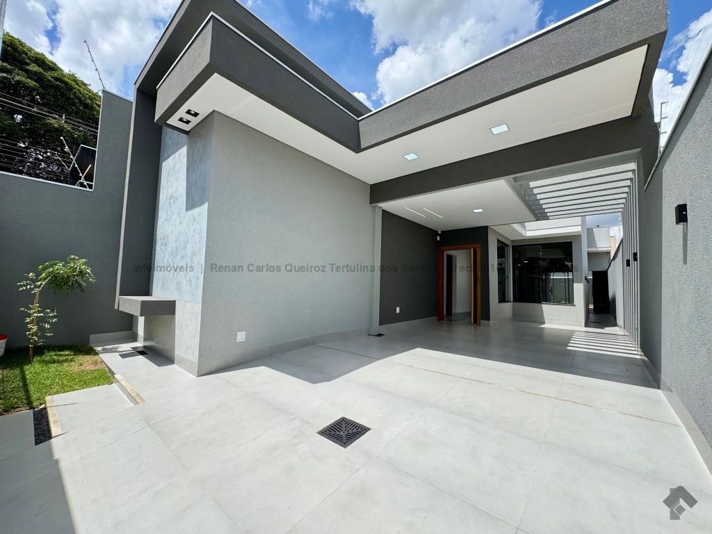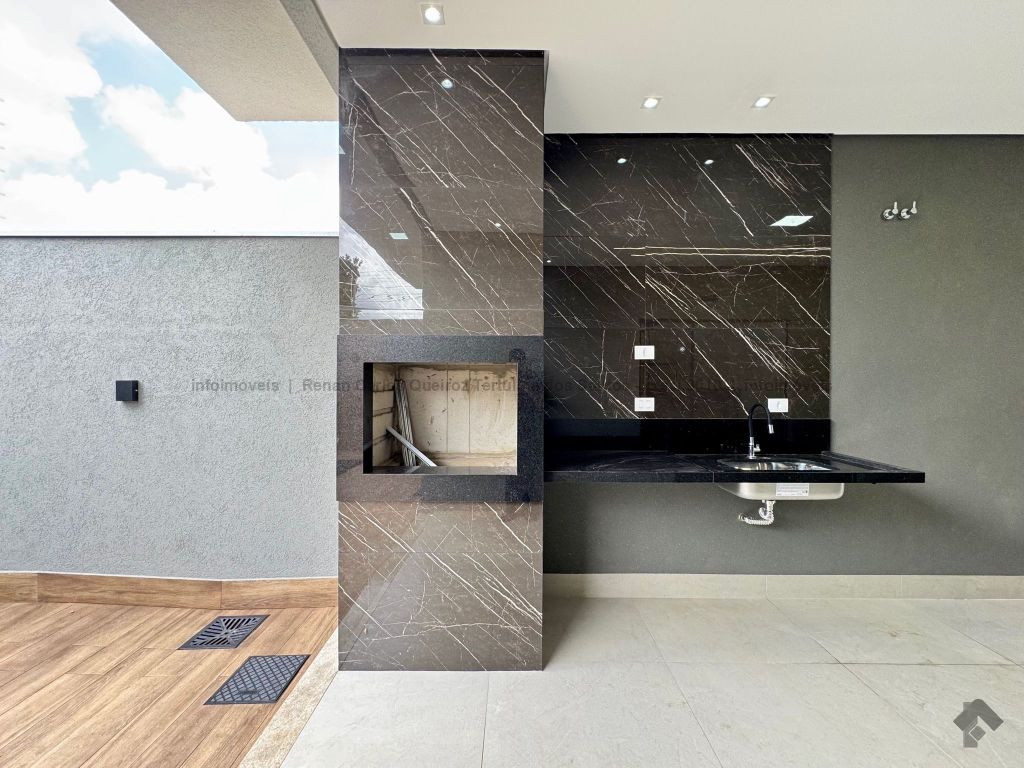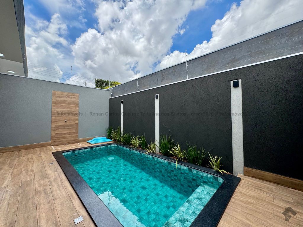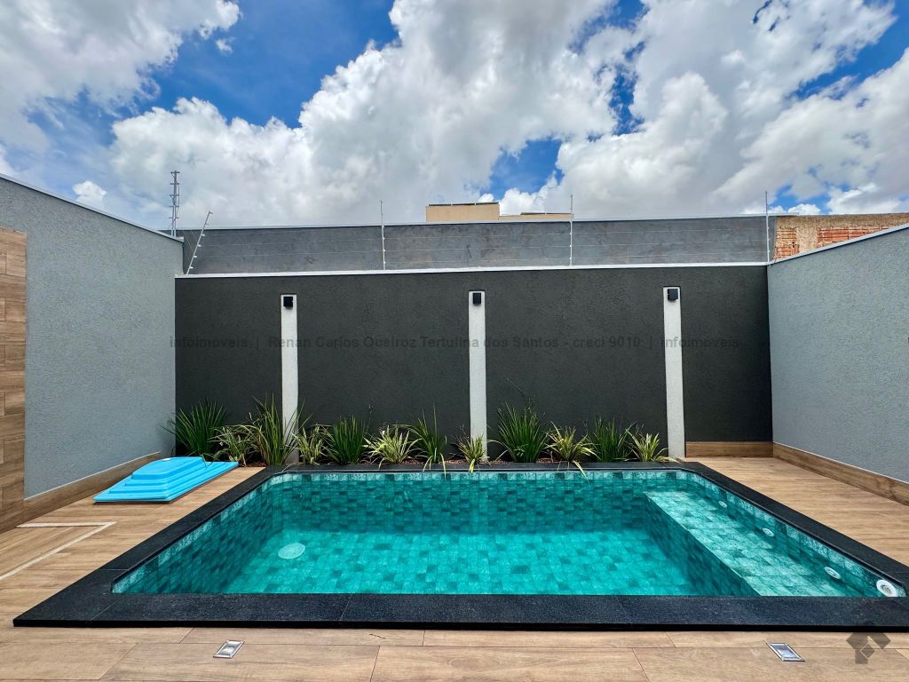 Casa moderna e sofisticada, fachada imponente com volumetria alta. Sala para dois ambientes com pé direito elevado, cozinha integrada com varanda gourmet, lavabo e área de serviço. Três suítes, uma com espaço para closet. Projeto de iluminação e paisagismo, piscina com prainha e hidromassagem. Garagem coberta.