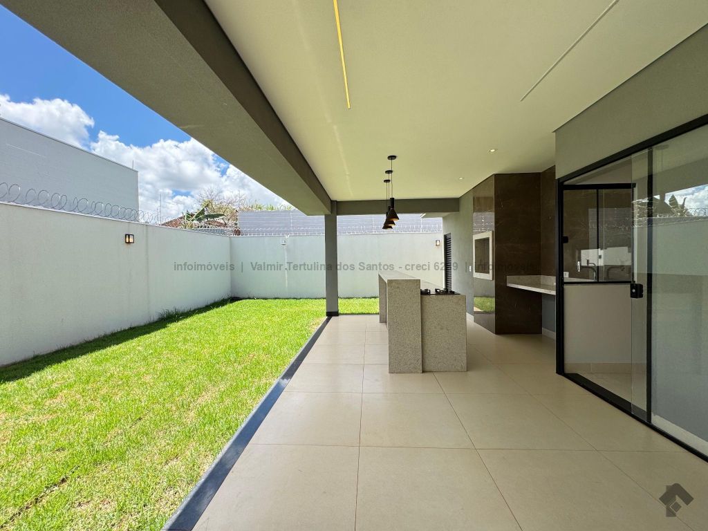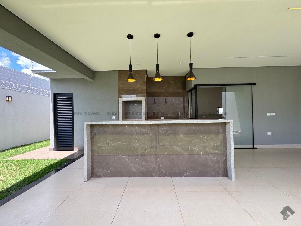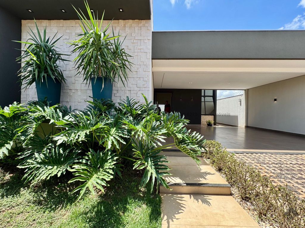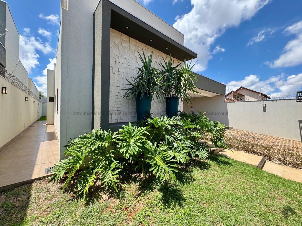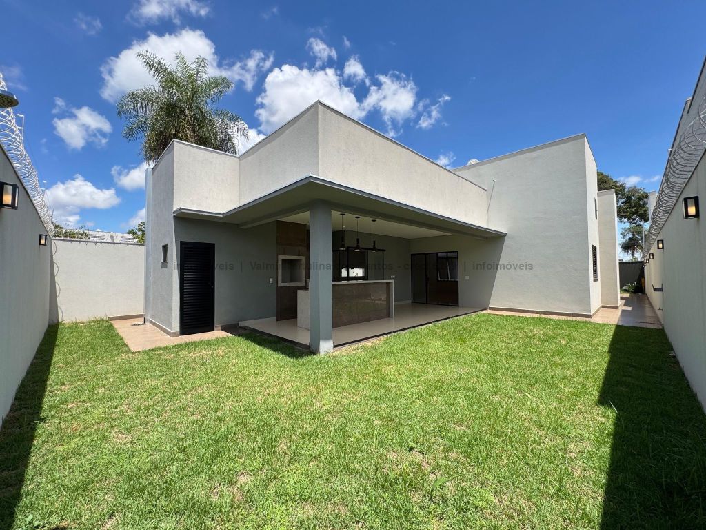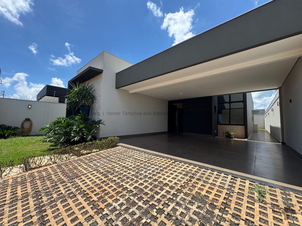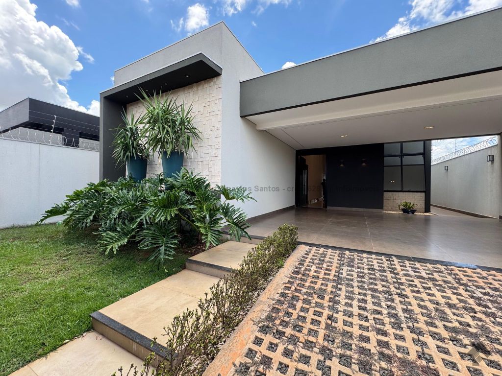 Casa no Rita Vieira. Área total de 360 m², área construída de 180 m². Casa moderna e sofisticada, fachada imponente com volumetria alta. Sala com dois ambientes e pé direito elevado, lavabo, cozinha com cooktop, varanda gourmet com banheiro, área de serviço, lavanderia. Uma suíte com closet, dois quartos, um banheiro. Projeto de iluminação e paisagismo. Quintal amplo, garagem grande.