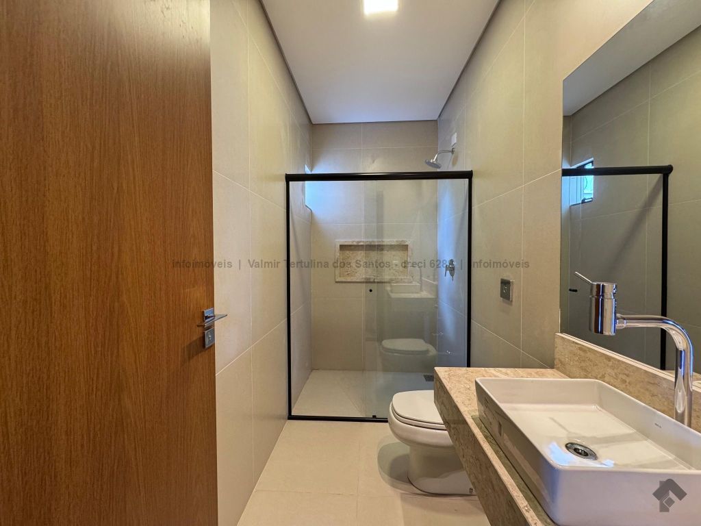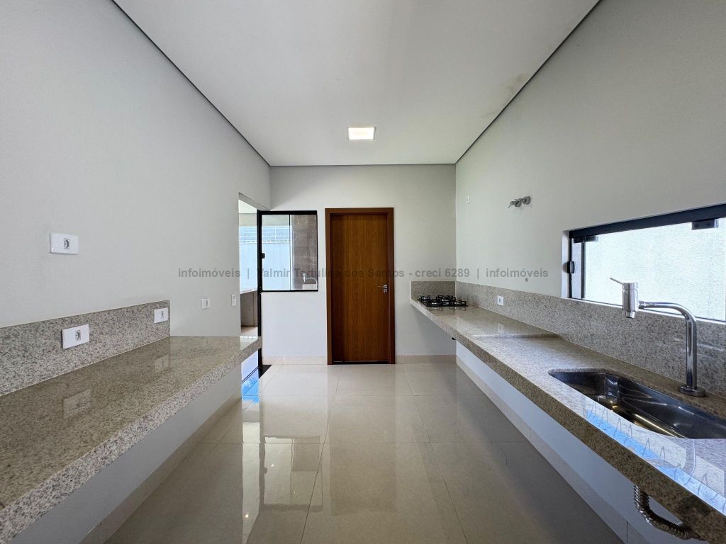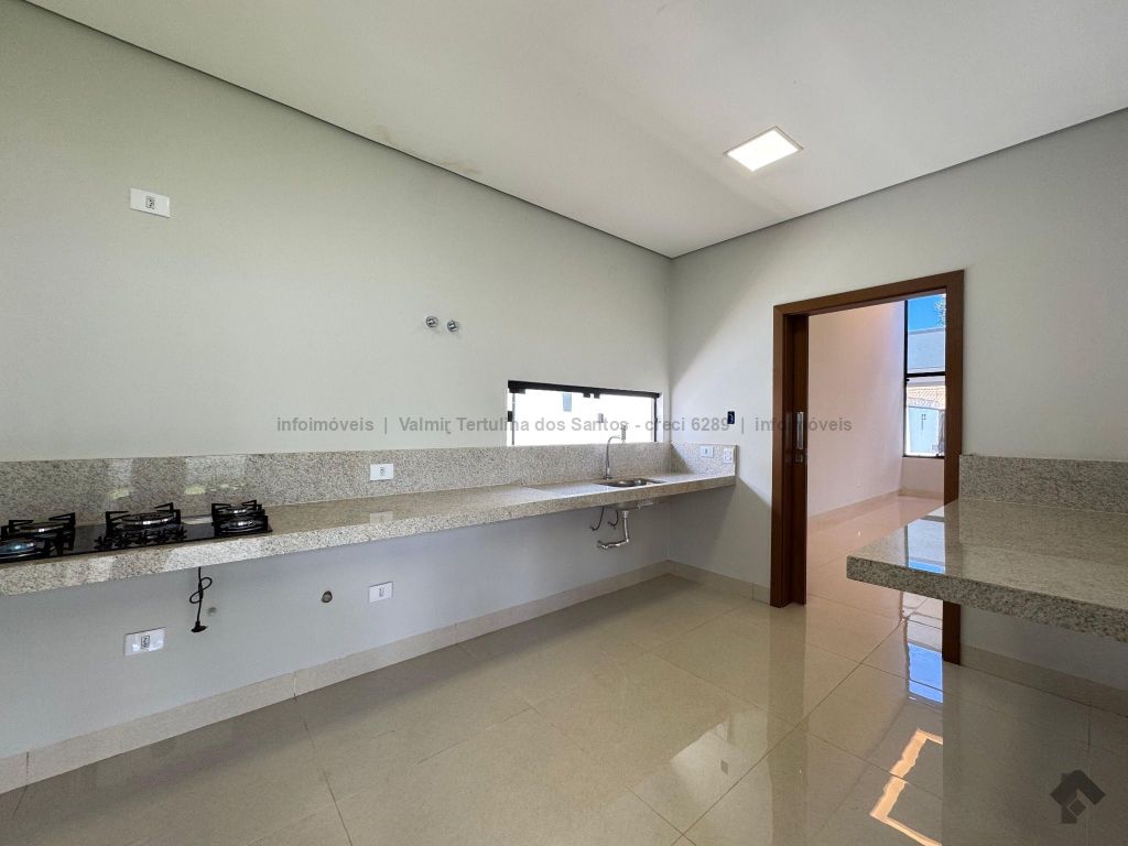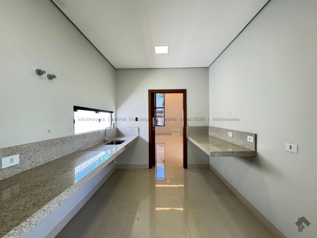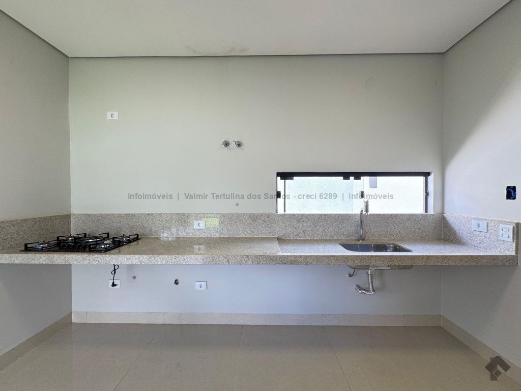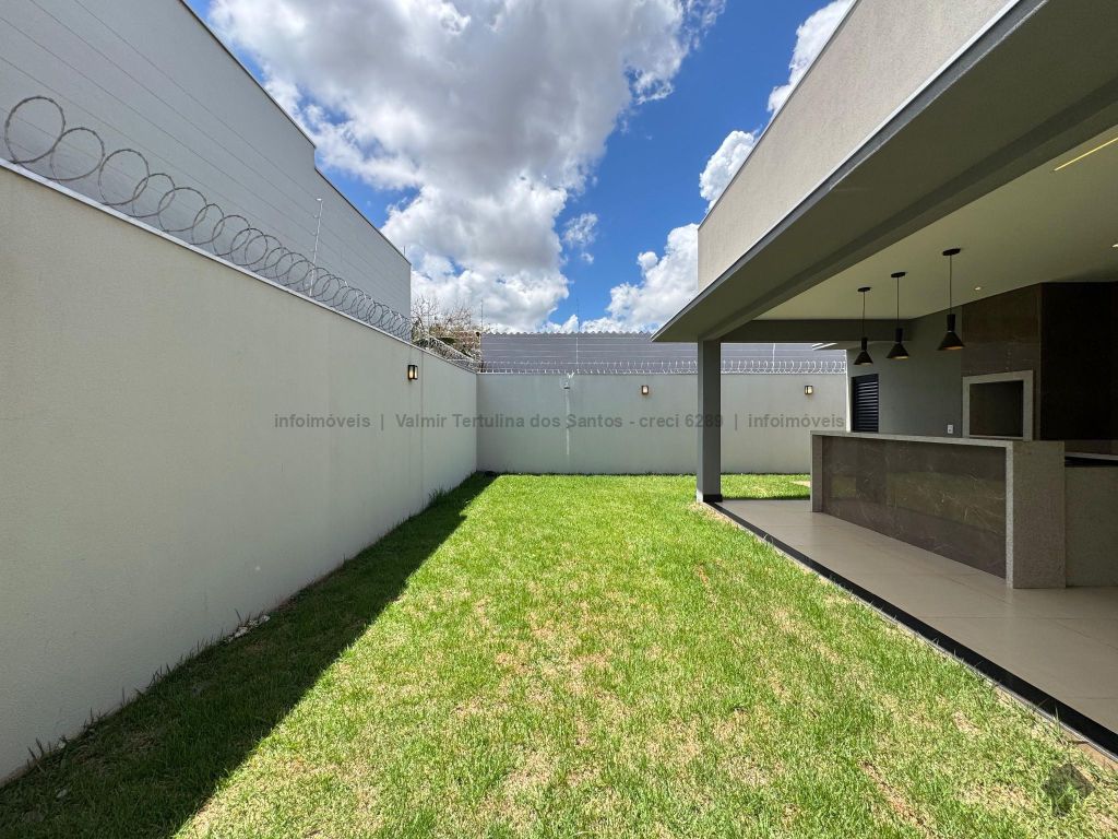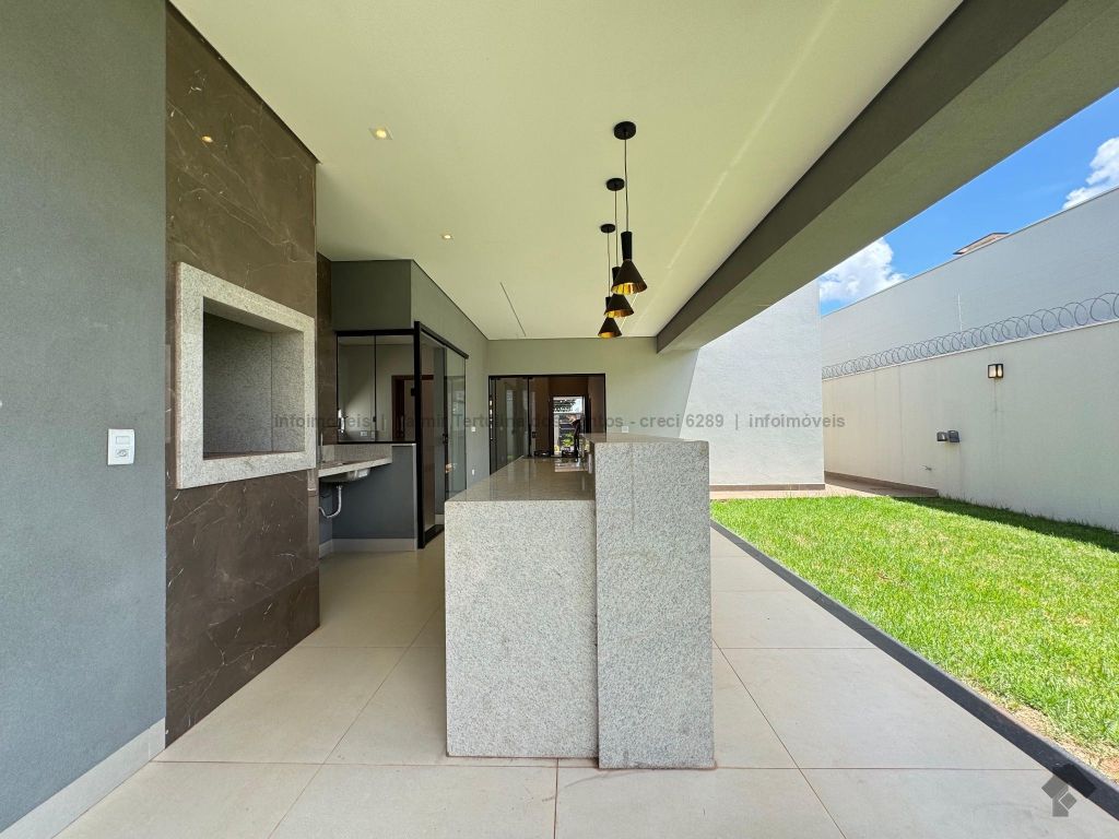 Casa no Rita Vieira. Área total de 360 m², área construída de 180 m². Casa moderna e sofisticada, fachada imponente com volumetria alta. Sala com dois ambientes e pé direito elevado, lavabo, cozinha com cooktop, varanda gourmet com banheiro, área de serviço, lavanderia. Uma suíte com closet, dois quartos, um banheiro. Projeto de iluminação e paisagismo. Quintal amplo, garagem grande.