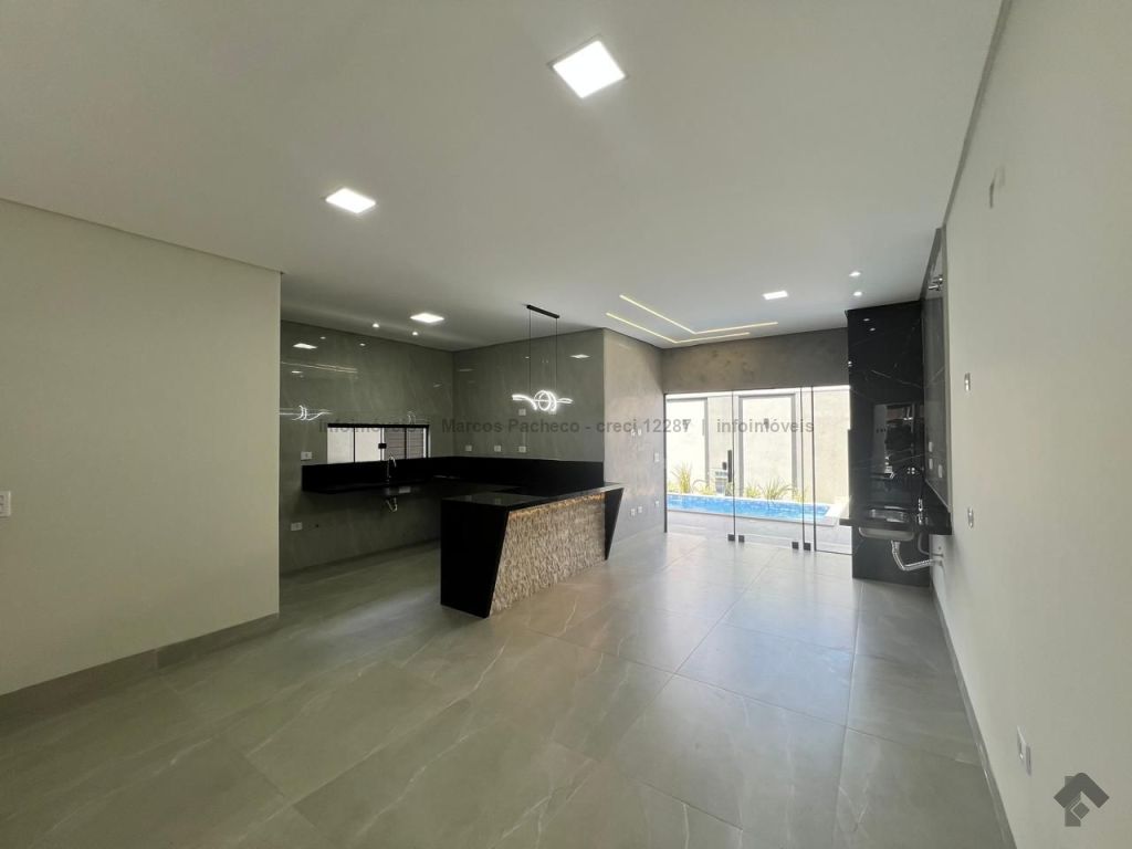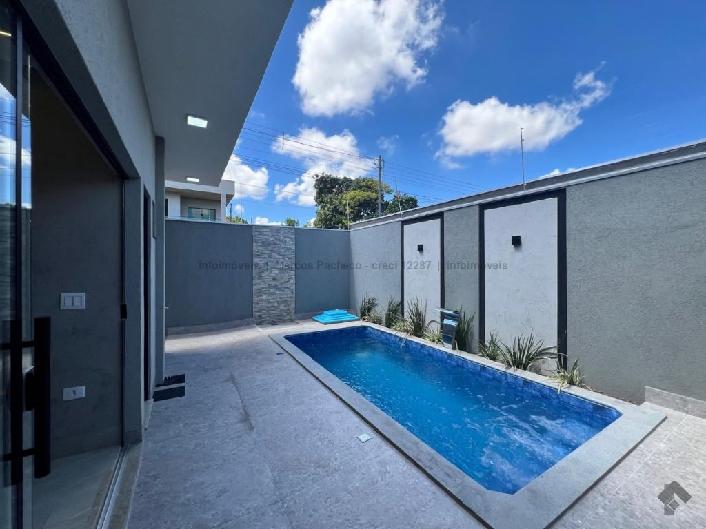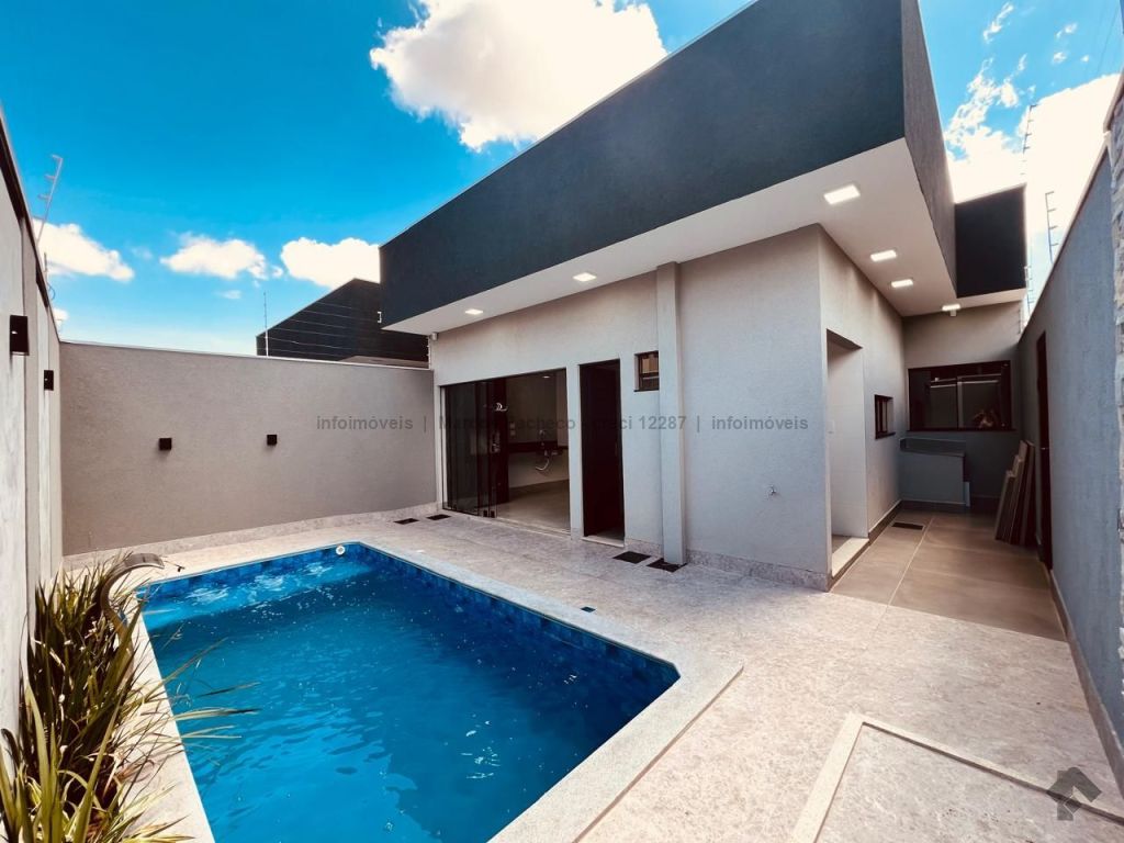 Exclusividade e elegância no Rita Vieira. Residência térrea de esquina em localização privilegiada, com fachada imponente e acabamentos de primeira linha. Arquitetura distinta, fachada deslumbrante com janelas amplas e iluminação em LED. Segurança com fechadura eletrônica. Três suítes confortáveis, jardim de inverno, sala ampla com pé direito duplo integrada à cozinha gourmet com churrasqueira. Banheiro na área de lazer, piscina com cascata. Área de serviço, garagem espaçosa. Casa fresca e iluminada naturalmente pelo sol da manhã.